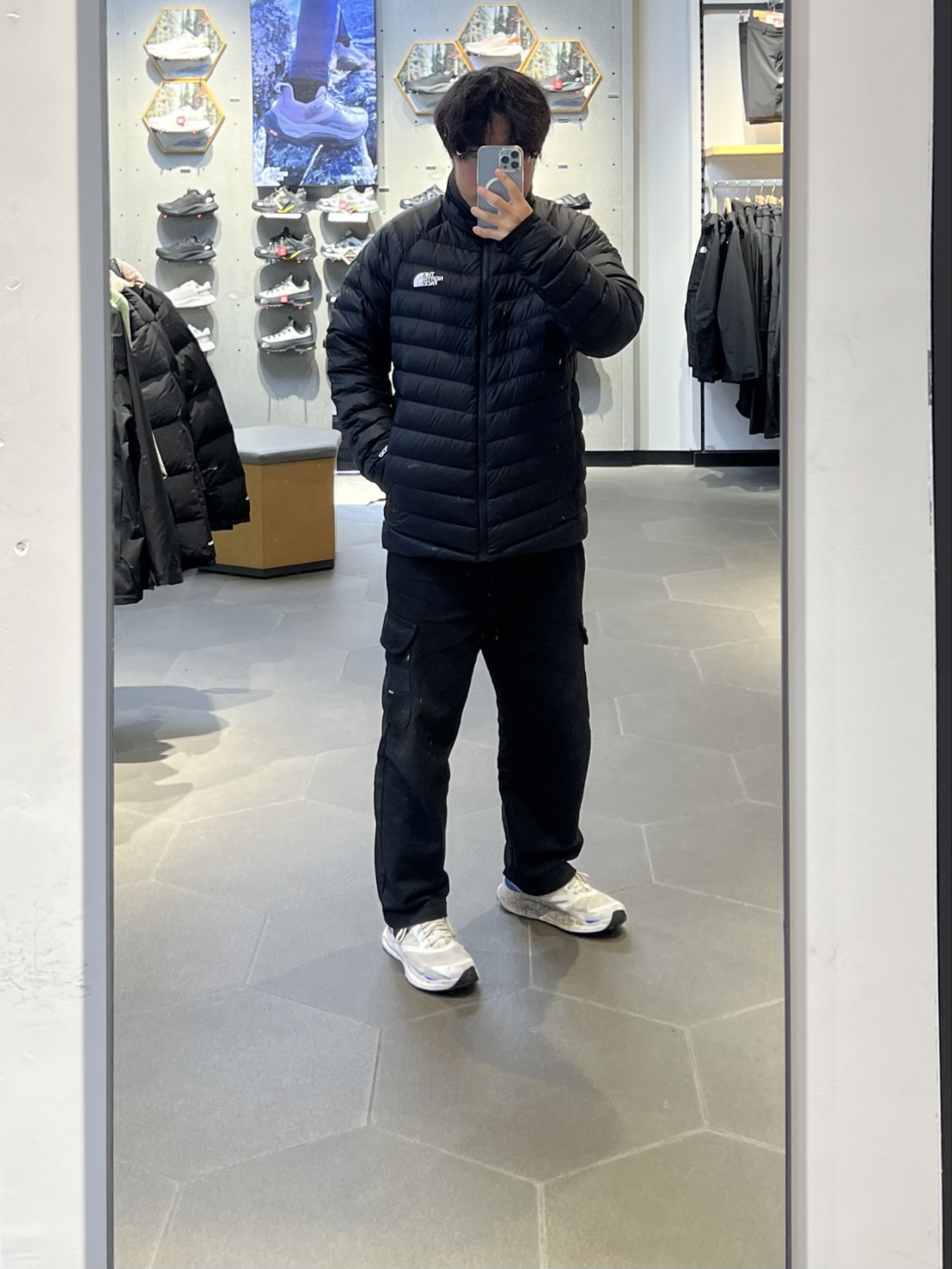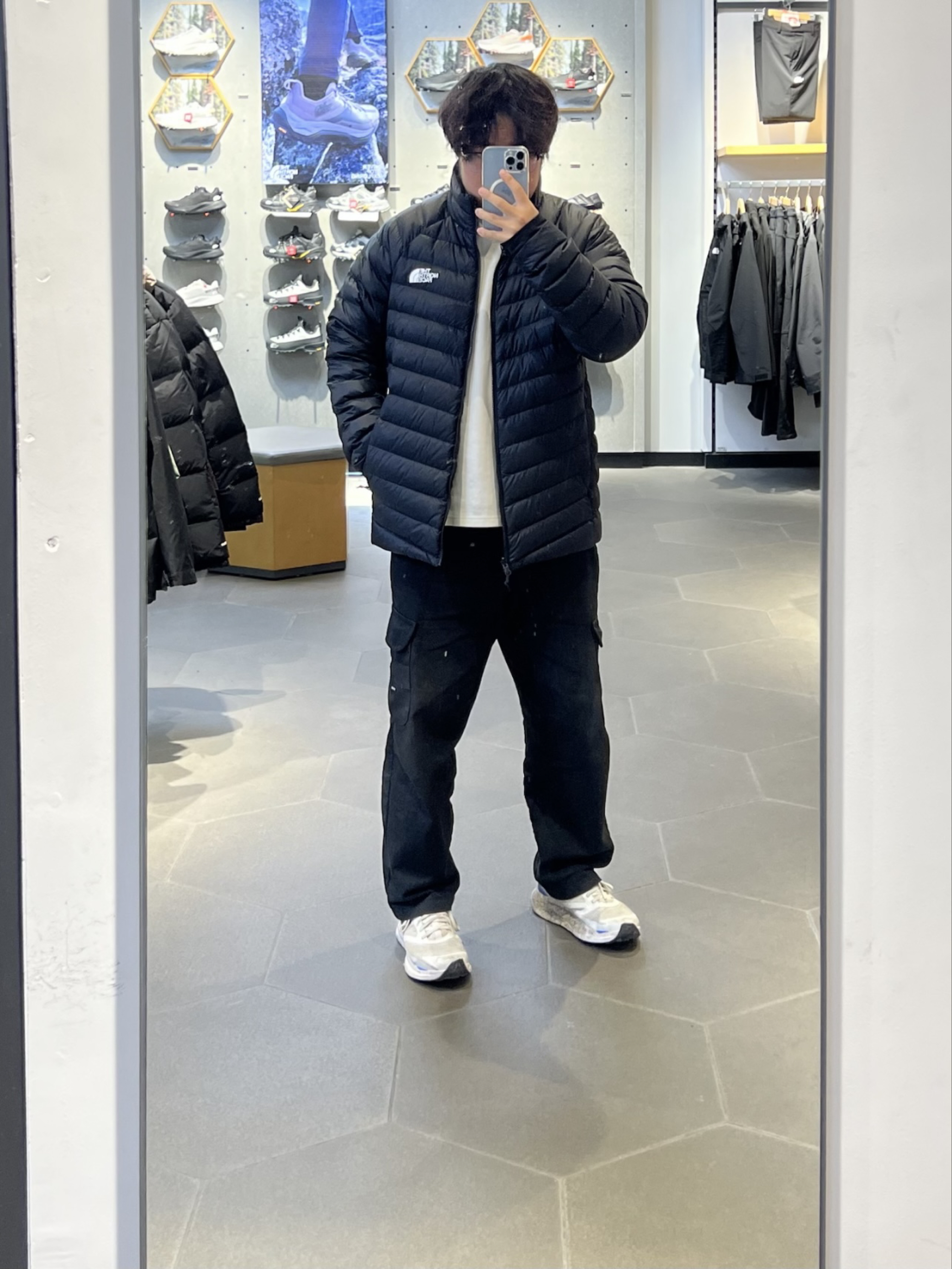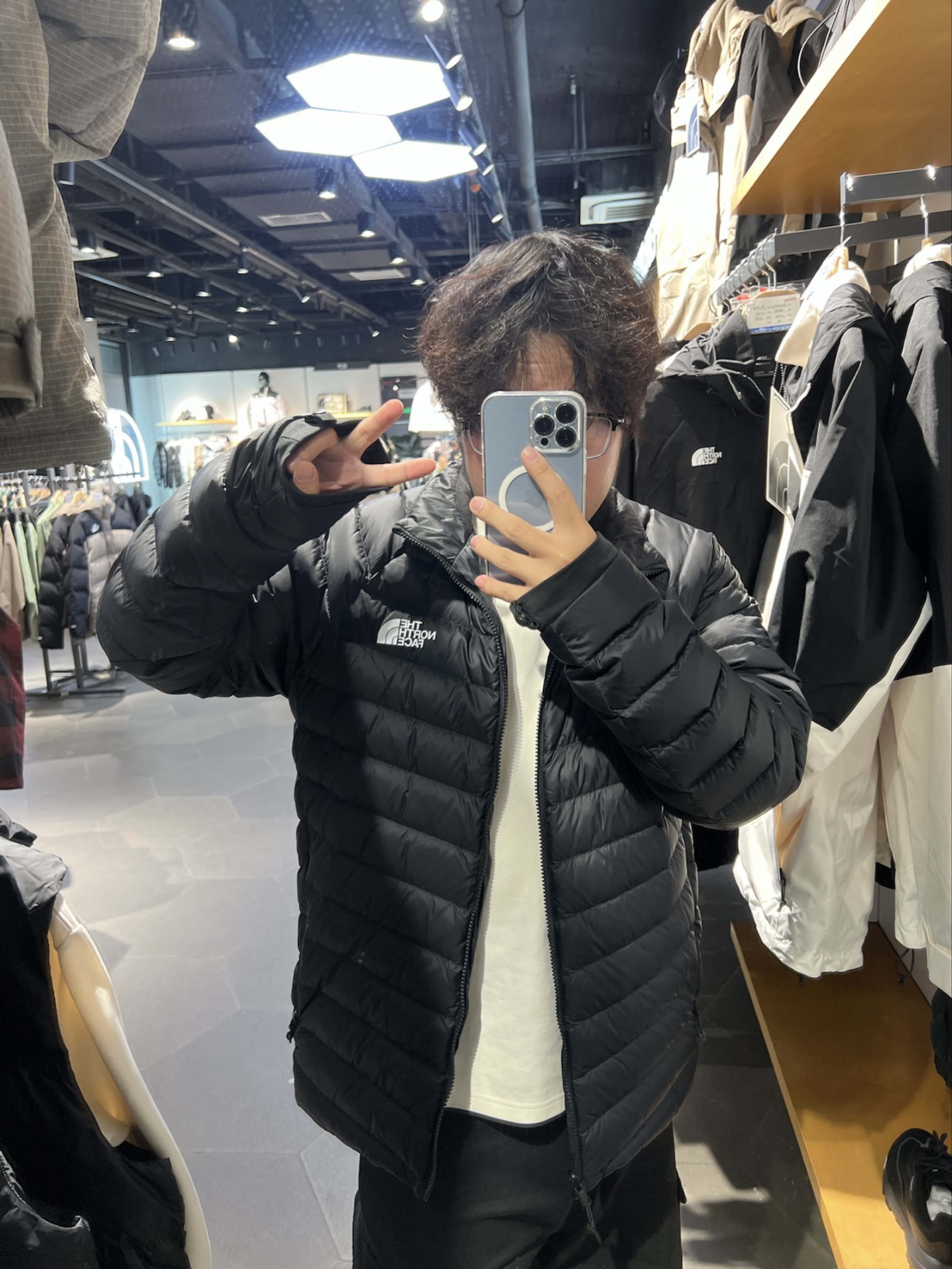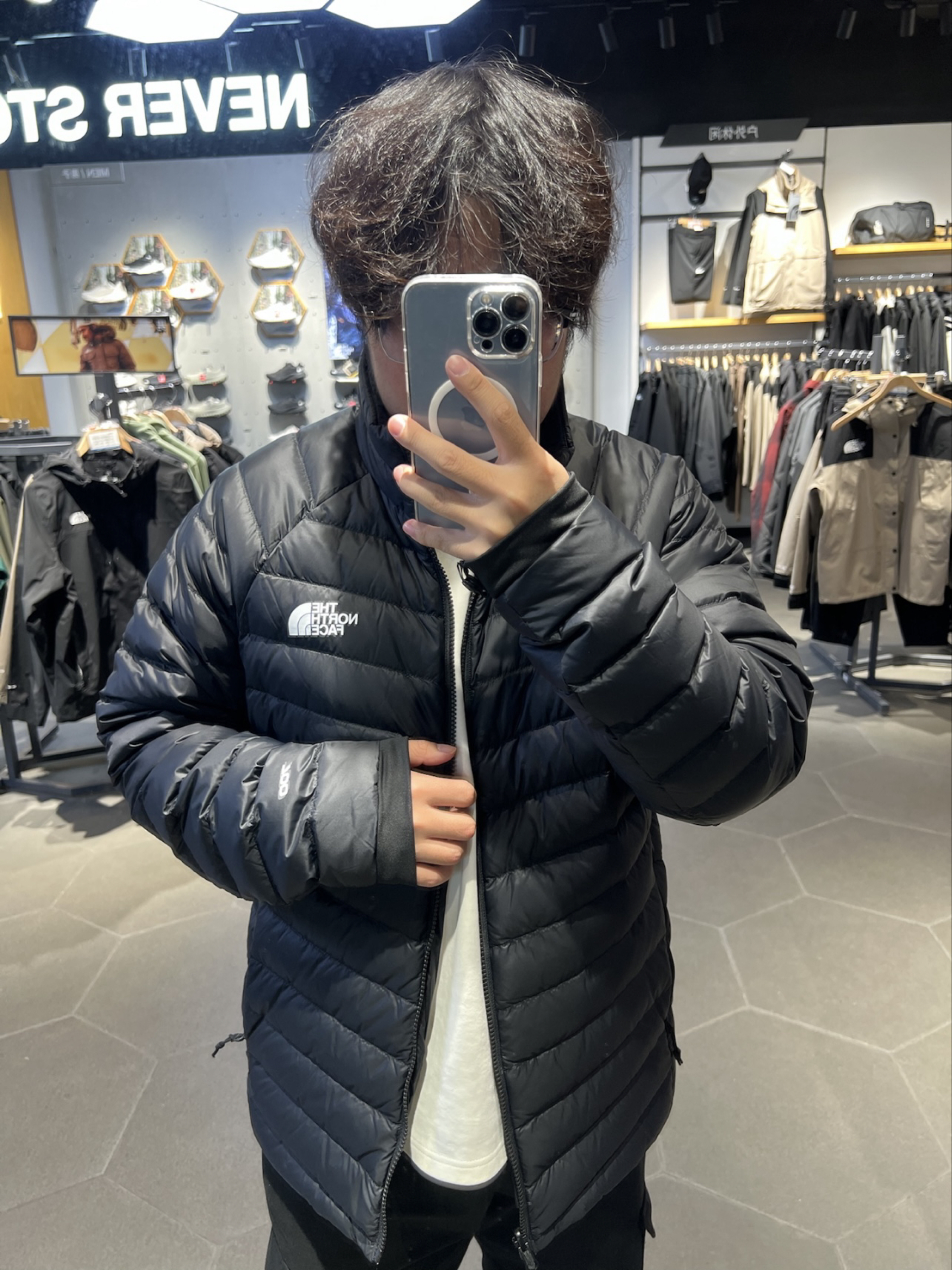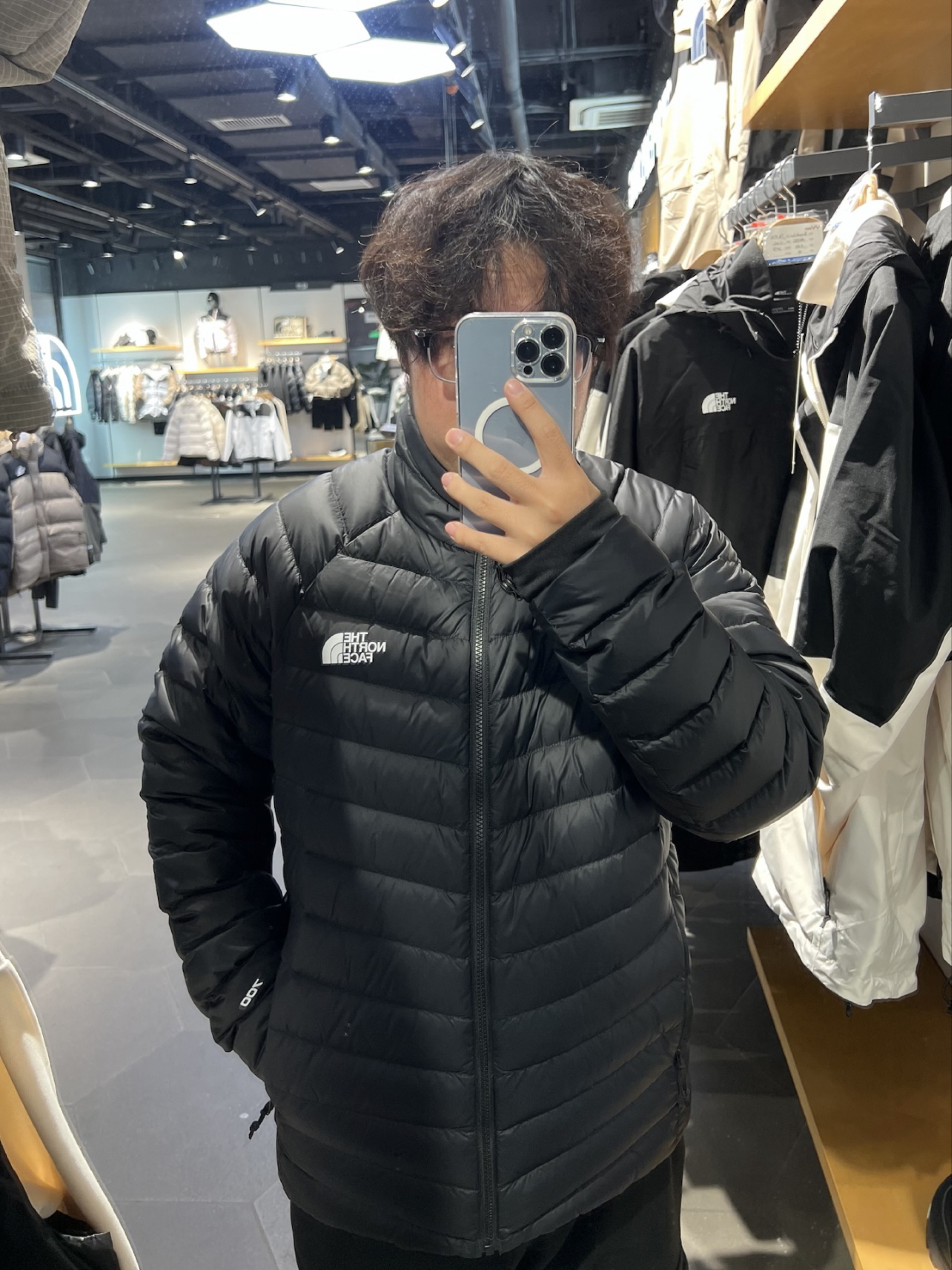 我今天也是去试穿衣服的一天 咱们直奔北面排骨鹅绒服✌️ 这款除了黑色还有个灰色我比较钟意黑色 黑色简单百搭也最显瘦显白🉑️ 我身高170cm体重65kg穿的是L码 L码的话充绒量有111g鹅绒很轻很保暖 我现在外穿再冷一点准备当内搭穿✌️ 如果只考虑当内搭可选小一码更服帖保暖 我的美式穿搭思路: 基础排骨服便复古年代感永不过时 核心出装美式随性风 👔 170/65kg L @识货穿搭君