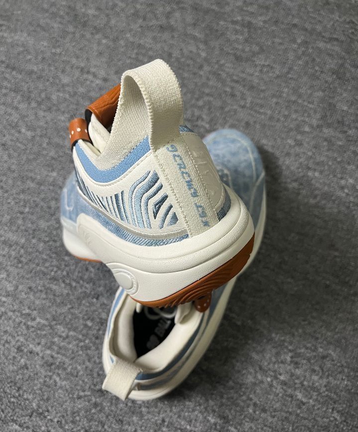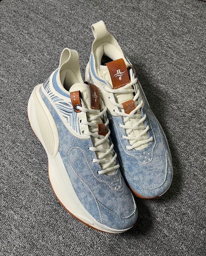 今天我带来的是 #特步 的林书豪6代,这是一个Sample配色,鞋面是一些带刺绣的牛仔材质,还挺有细节和质感的,然后后侧tpu是带一点磨砂的颗粒感觉,再就是生胶底,这个搭配牛仔还意外的好看,整体就是一个休闲感十足的配色,大家喜欢的可以试试看。