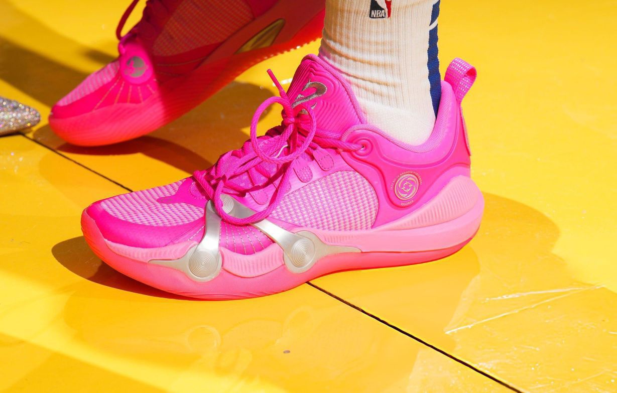 在赛场上,粉色不仅是色彩,更是宣言。这双球鞋以大胆的荧光粉为主调,搭配金属银饰件,在球场上形成强烈的视觉冲击,让你在每一次启动、急停、变向中都成为焦点。 它的设计不仅追求美感,更注重实战性能。网状鞋面保证透气,缓震中底提供稳定支撑,特殊的鞋带系统让你在激烈对抗中也能保持完美贴合。 无论是日常训练还是重要比赛,这双鞋都能让你在场上自信满满。因为真正的强大,从不害怕展现自我。