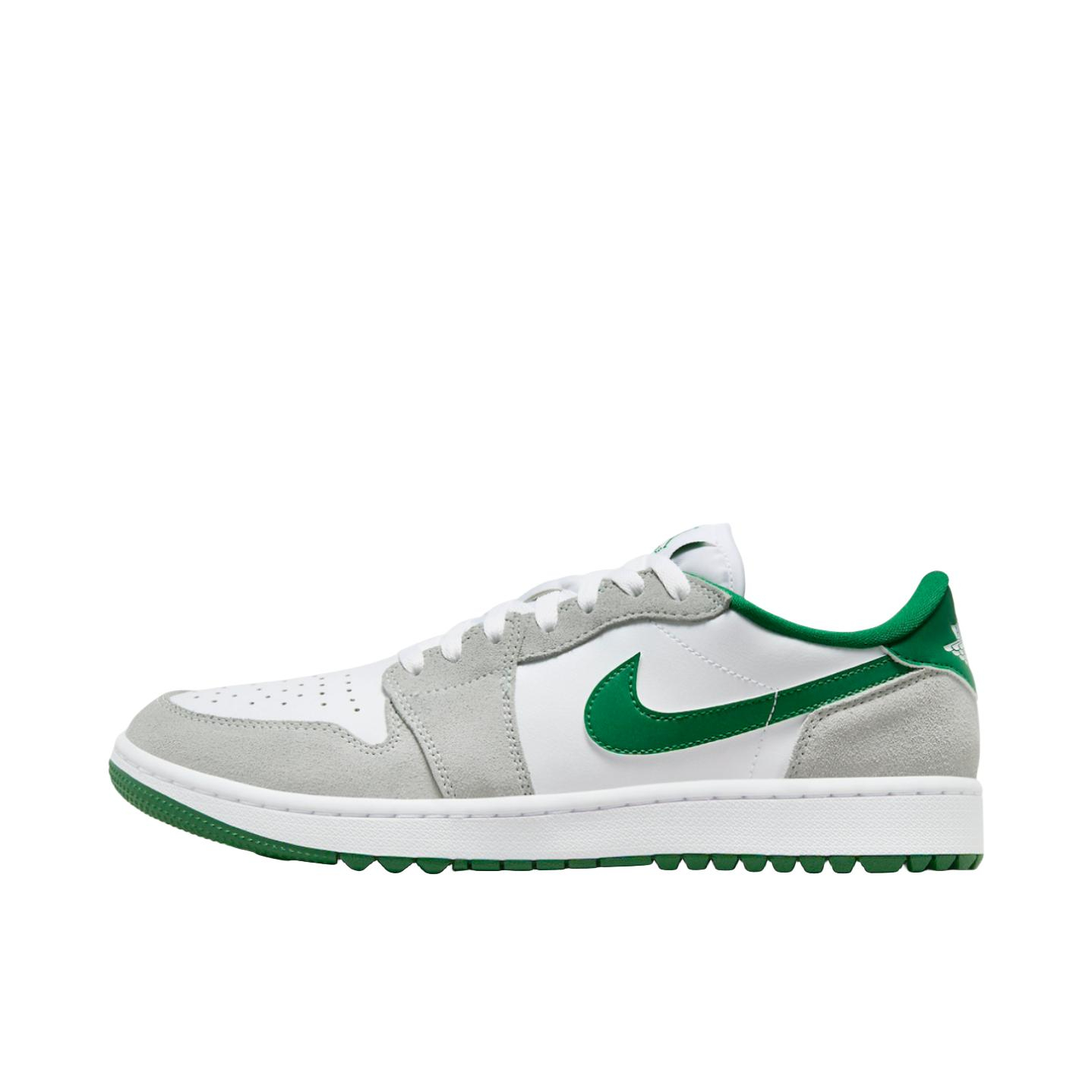 - 配色高级:白+浅灰的基础色调干净清爽,搭配墨绿点缀,既保留了AJ的经典运动感,又多了几分精致的复古腔调; - 材质有层次:皮革+麂皮的拼接让鞋面质感很丰富,透气孔设计也兼顾了实用性; - 细节用心:鞋舌的“GOLF”标识和飞人logo,延续了AJ的品牌辨识度。 整体是那种“日常穿搭也能驾驭的运动轻奢款”,不管是下场打球还是日常出街都很有格调。
