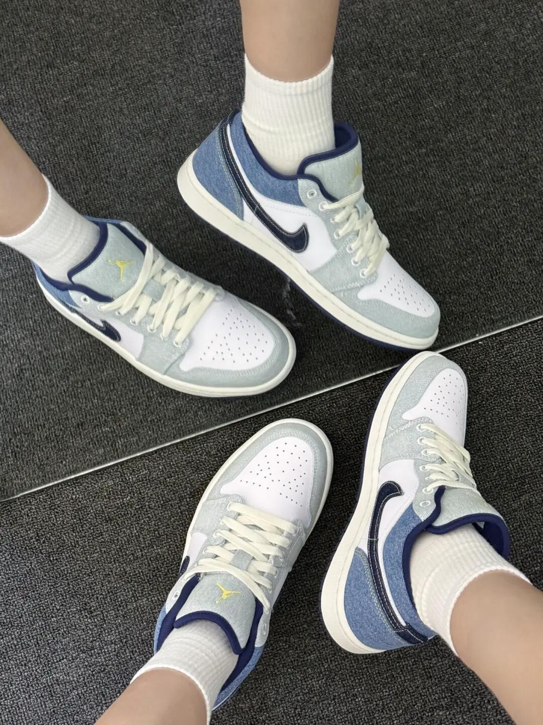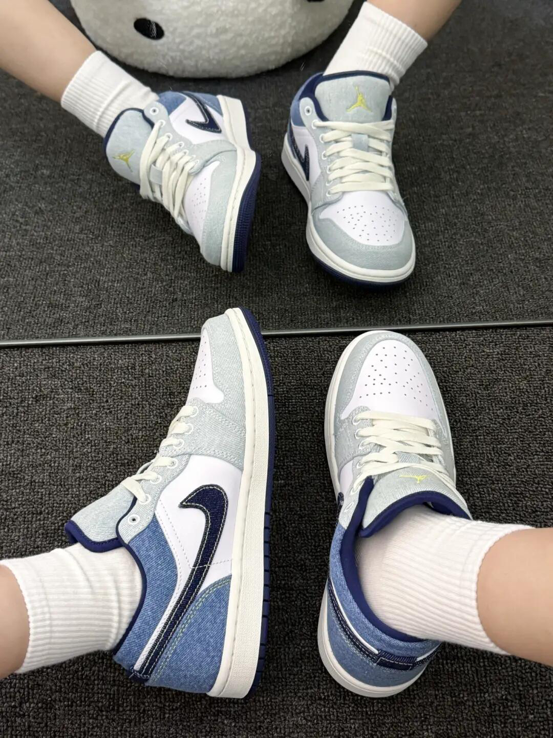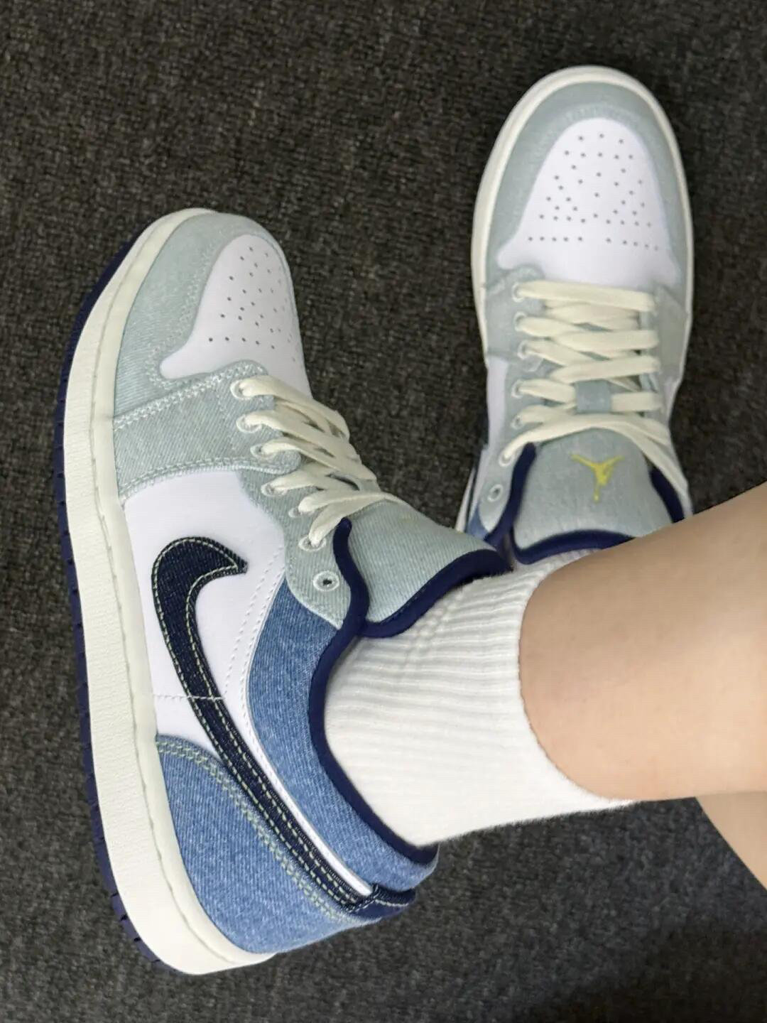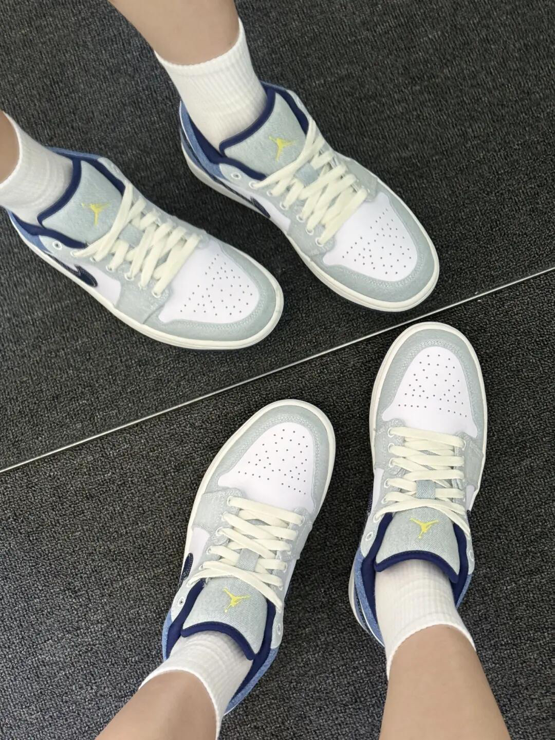 谁懂啊!看到这双鞋的瞬间直接被戳中——浅牛仔灰+奶白的拼接,像把刚洗好的海盐味牛仔布裁成了球鞋,清爽又自带“随便穿穿都好看”的慵懒感,是那种踩去便利店、逛公园都不违和的日常款✨ 🔍 为啥能戳中“穿搭懒癌”?这几点太懂日常了 • 「软到踩云的舒适感」:打破“AJ板鞋硬到磨脚”的痛点!鞋身是做旧牛仔布+软皮革拼接,摸起来软乎乎的不硌脚;鞋头透气孔+低帮版型,夏天穿也不闷脚,暴走一下午都不累,终于不...