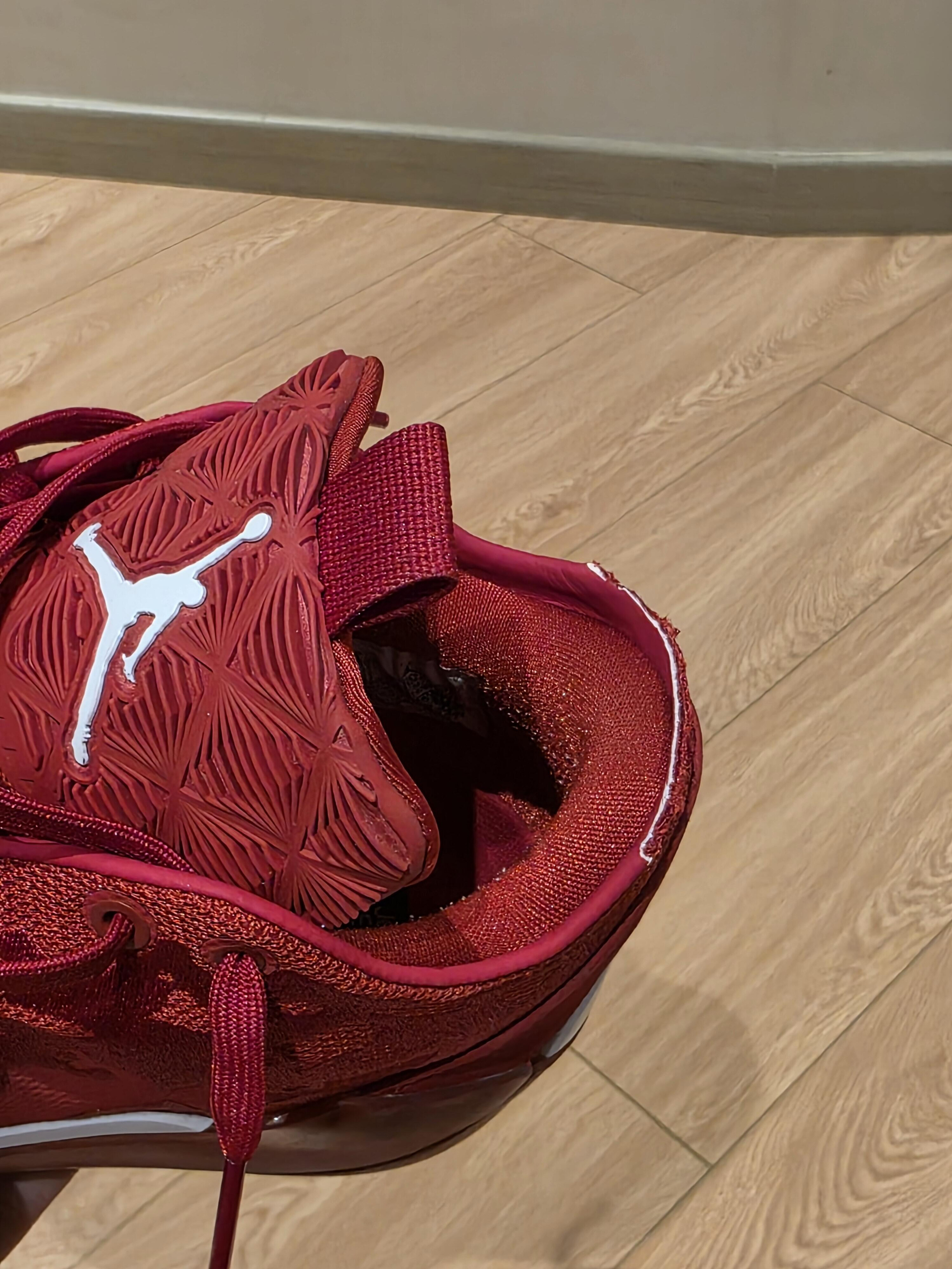 谁懂啊!开箱这双鞋的瞬间,直接被满溢的赤焰红戳中——像把赛场上的热烈火焰裹在了鞋上,暗纹肌理+纯白飞人标,又野又有质感,是那种“踩去球场够炸,穿去逛街够吸睛”的双面款🔥 🔍 为啥能戳中“运动潮人”?这几点太懂需求了 • 「赛场级的脚感」:打破“潮鞋软塌/实战鞋笨重”的痛点!鞋身是透气针织+支撑皮革拼接,包裹感刚好不压脚;中底软弹又带韧性,急停变向时能稳稳吃住力,打球不拖沓,日常走一万步也不累。...