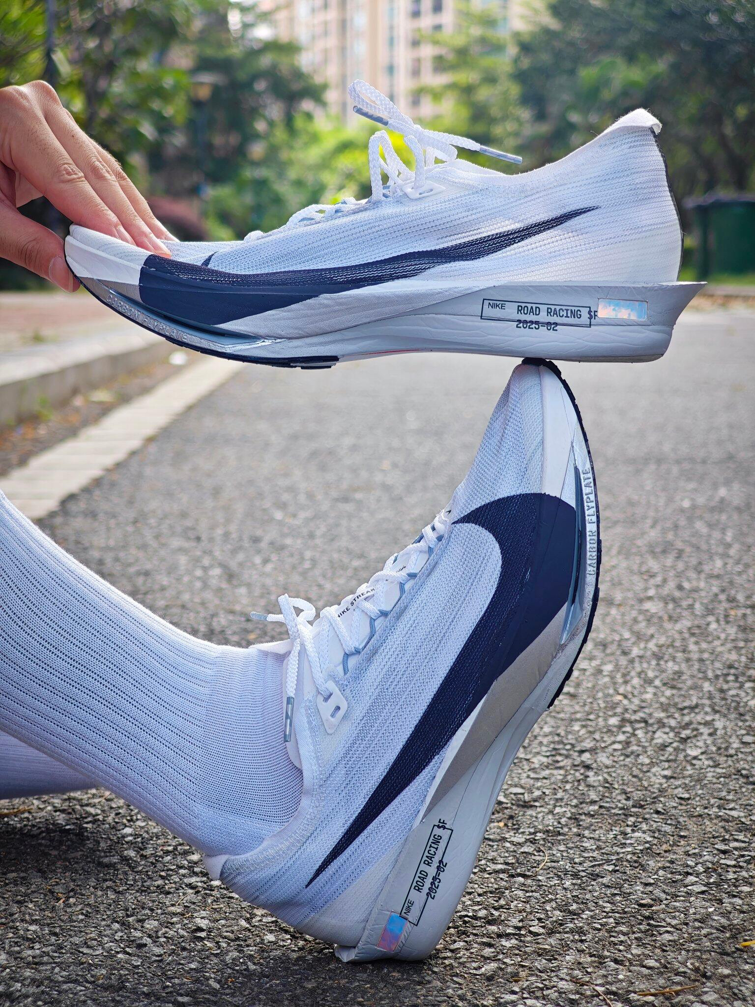上脚这双鞋的瞬间直接被戳中——像把晨雾裹进了鞋里,云白针织衬着藏蓝线条,脚感轻得像踩在风上,是那种“跑10公里够省力,穿去买早餐够清爽”的鲜活款🌬️ 🔍 为啥能戳中“运动打工人”?这几点太懂需求 • 「踩风级的轻弹脚感」:打破“竞速鞋硬邦邦/日常鞋软塌”的痛点!全针织鞋面透气到能透风,30℃晨跑也不闷脚;碳板中底又轻又韧,落地时像被软云接住,跑完全程脚不酸,下班挤地铁、逛超市都能“踩得轻松”。...
