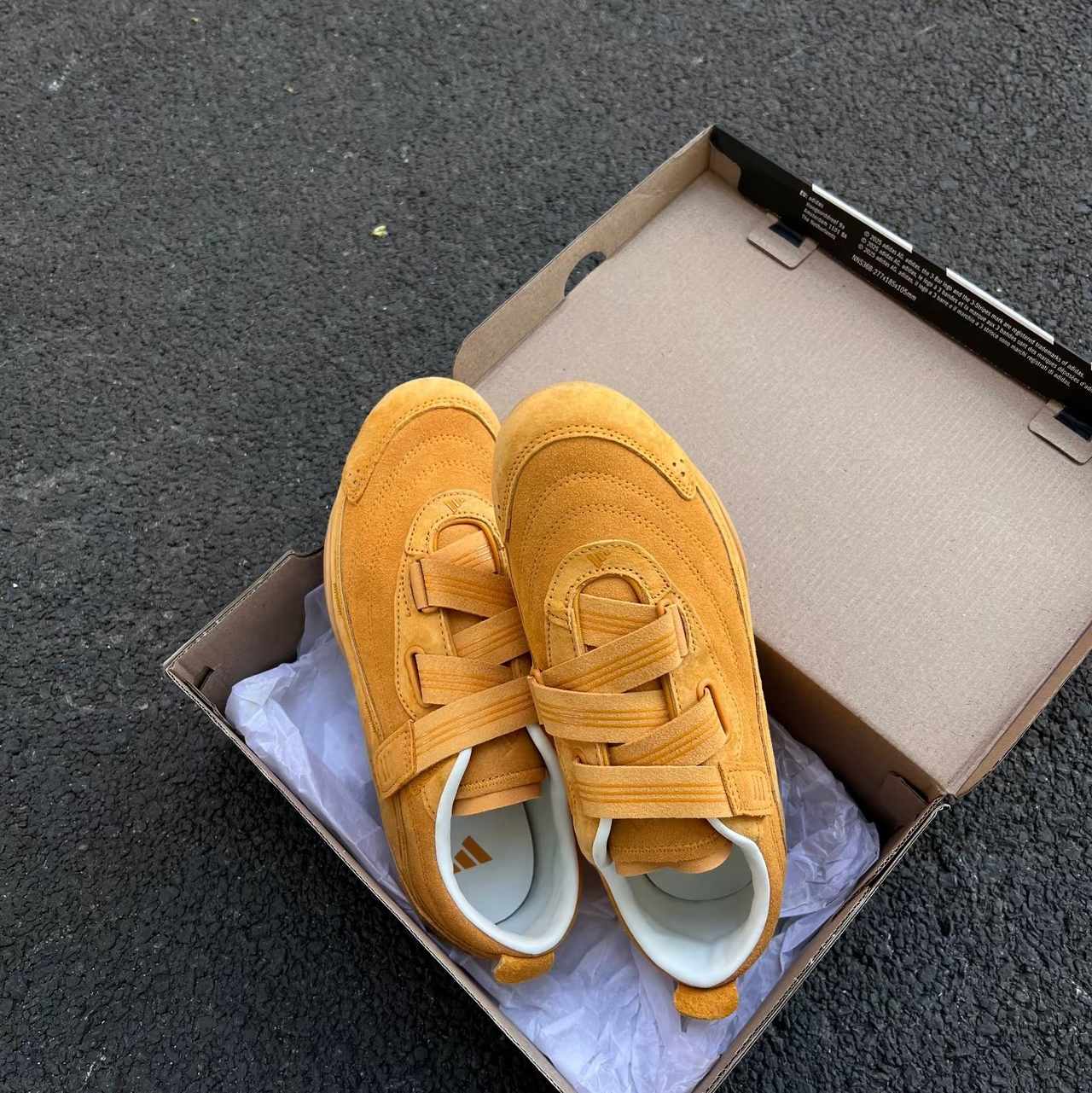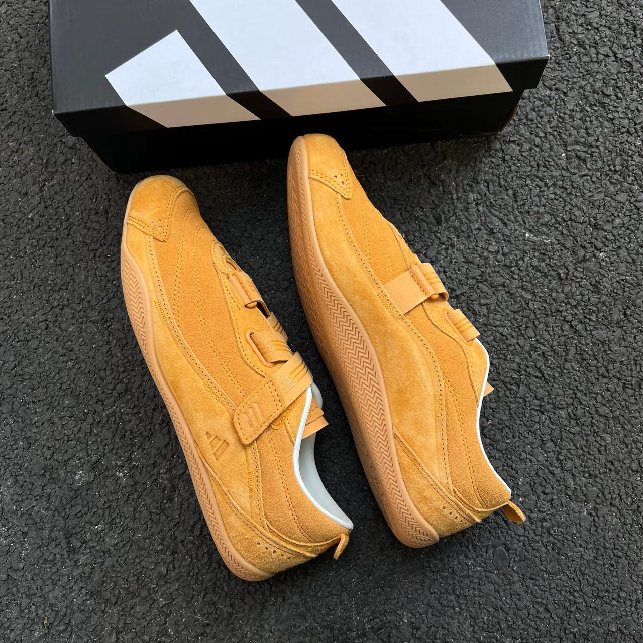 这双鞋到手有段时间啦,浅聊下我的感受~👟 外观上,黄色还挺亮眼的,搭配衣服也比较好搭。不过鞋面材质是那种有点绒绒的,不太耐脏,稍微蹭一下就很明显,得经常打理。 穿起来的话,脚感还算可以,走路时间不长的话,不会觉得累。但鞋码我感觉有点偏,我平时穿别的鞋是这个码数,这双就感觉有点紧,得选大一码才舒服。而且那个魔术贴,用了几次后,粘合力好像有点下降,没有刚拿到时那么紧实了。 整体来说,日常随便穿穿...