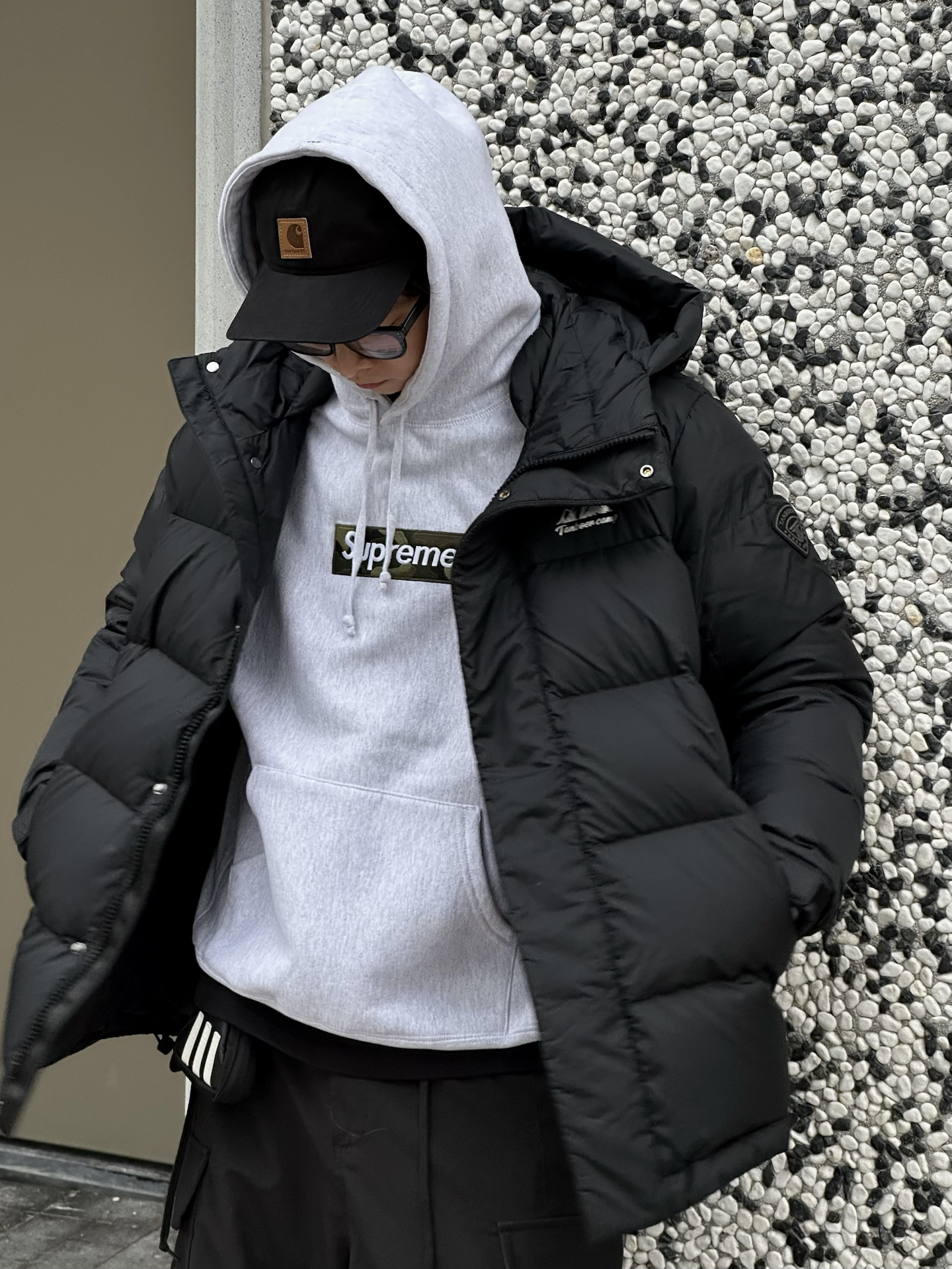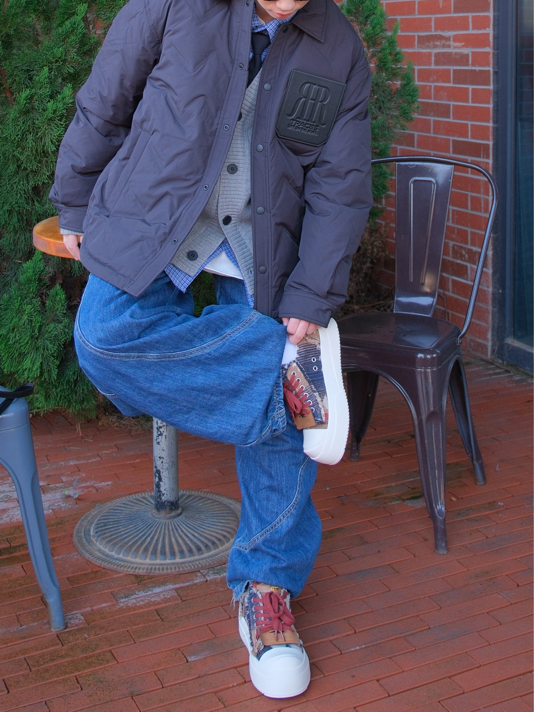 一件黑羽绒服,走遍冬天都不怕 今天来一套适合通勤风的look 衬衫领口的设计 里面叠穿件格纹衬衫➕灰色开衫 既休闲又能hold一些职场风格 700+高充绒量,保暖的同时也很轻 胸口的魔术贴设计,一衣多穿 下面搭配深蓝色弯刀牛仔裤 再来一双时装周同款的小香风闪电德比鞋 微翘鞋头产生自然的堆叠感非常松弛 厚底鞋型增高5cm左右,脚感Q弹 尺码参考:163cm/48kg 上身M码