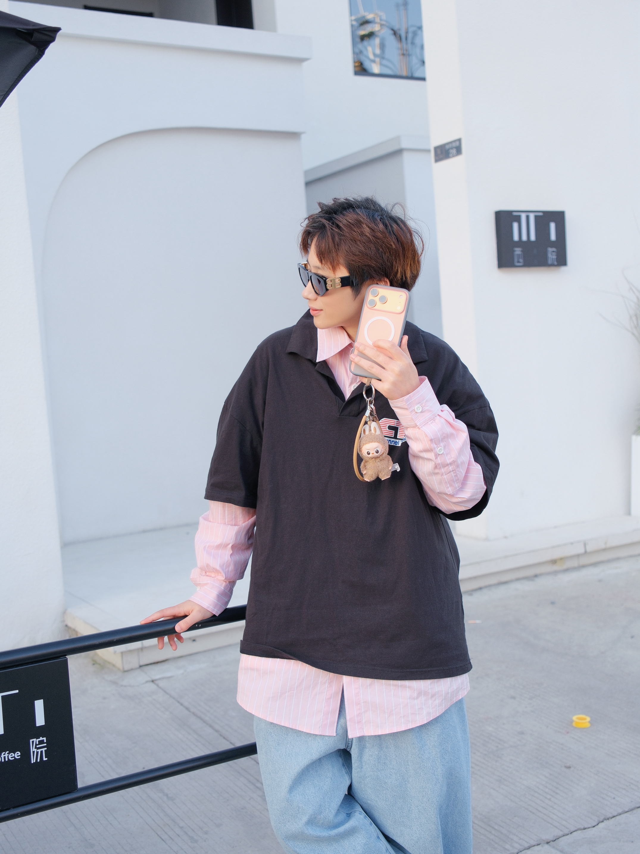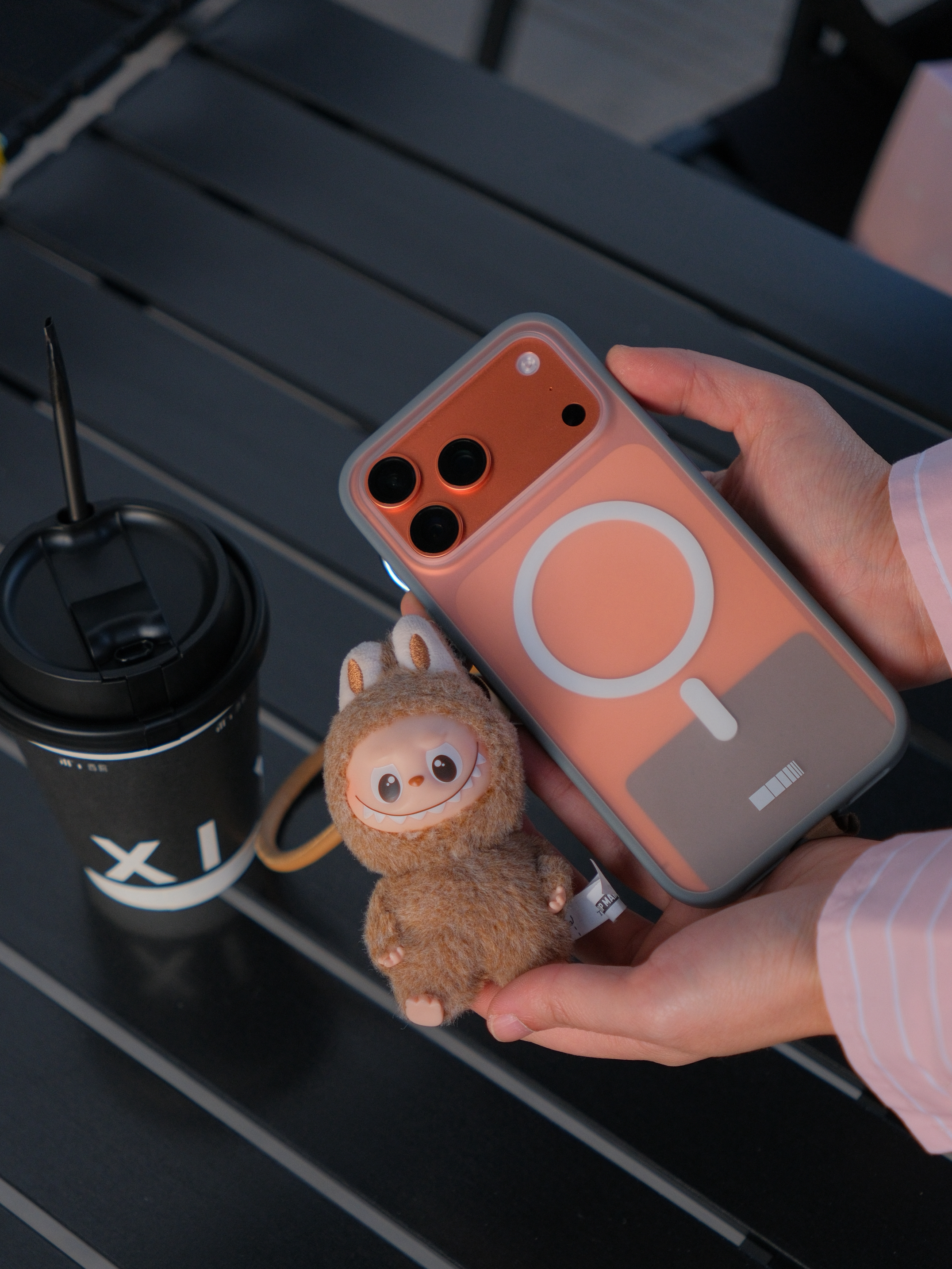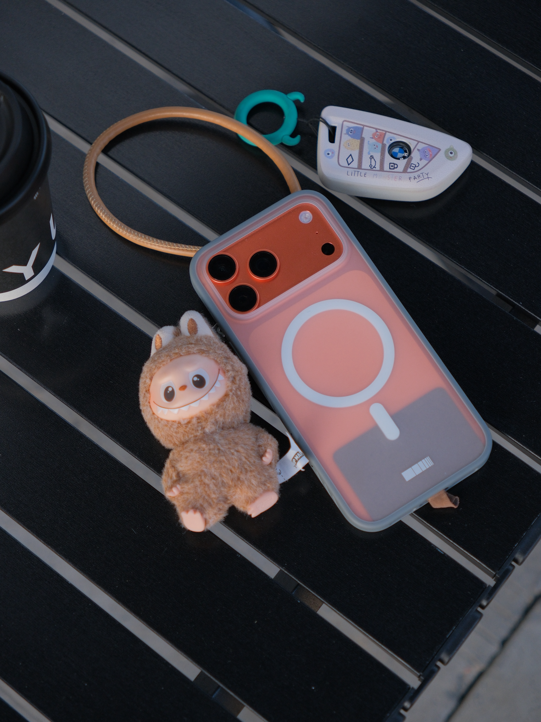 没有抢到橙色款的拉布布也不影响 棕色的&也很配 加了个垫片秒变手机挂绳 mini版的也不会很累赘 这次iPhone的铝合金比较脆 所以手机壳就选了磨砂材质的软壳 手感不错