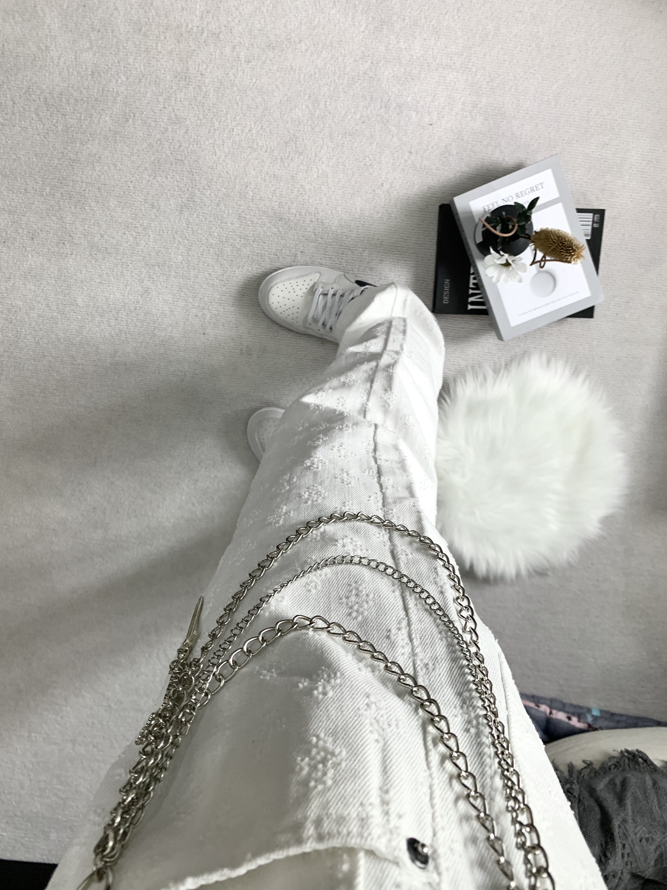 确实不错的一条白牛仔,上身修身还有堆积感,这个设计也是让人心动的,很干净的一套