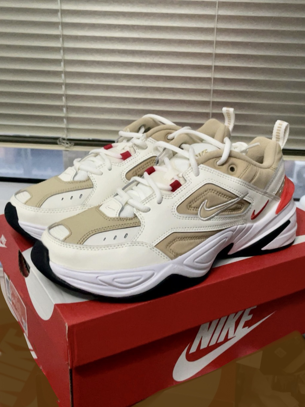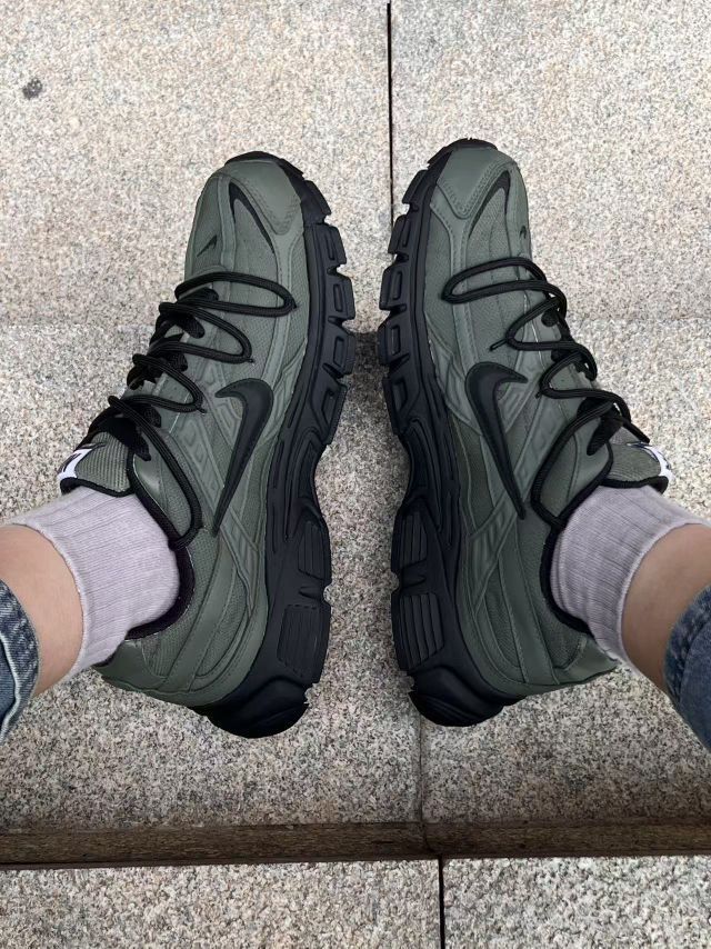 这双军绿配黑的老爹鞋颜值绝绝子!网面加皮革的材质,透气又有质感,复古老爹鞋版型很显脚小~ 上脚软乎乎的,走路逛街一整天都不累。日常搭牛仔裤、运动裤都很潮,citywalk或者上学通勤穿它都超合适👍 就是刚穿的时候有点重,习惯了就还好。总之,这双Nike男鞋我已经穿了好一阵,真心推荐给喜欢复古风的兄弟~
