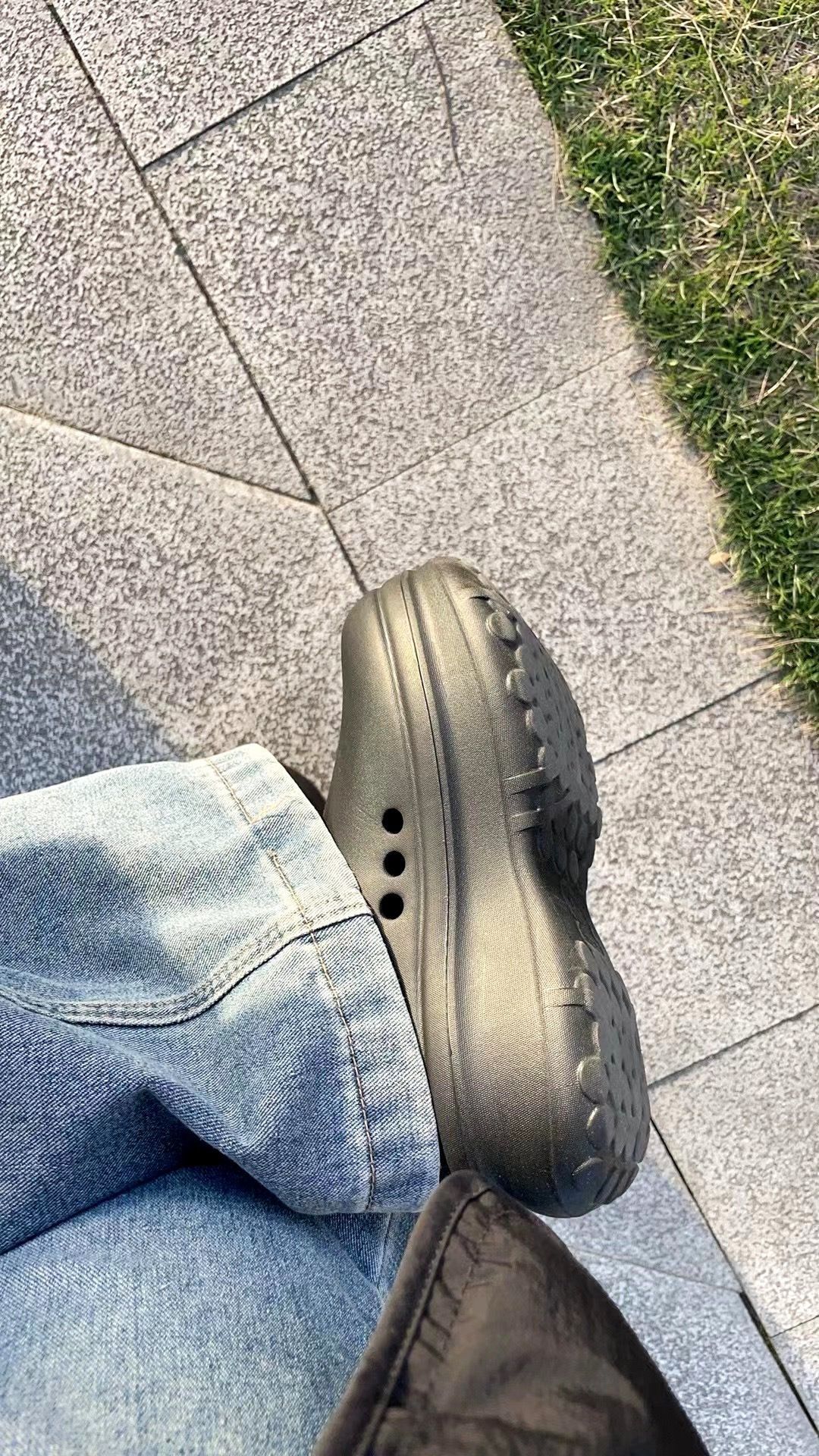 这鞋也太“软萌圆滚滚”了吧!像两只黑溜溜的小面包,圆乎乎的鞋头看着就奶fufu的~穿在脚上松松软软的,配阔腿牛仔裤还透着点随性的可爱劲儿,踩上去像裹了层云朵似的,又乖又好搭,日常穿出门就是“舒服又讨喜”的感觉!