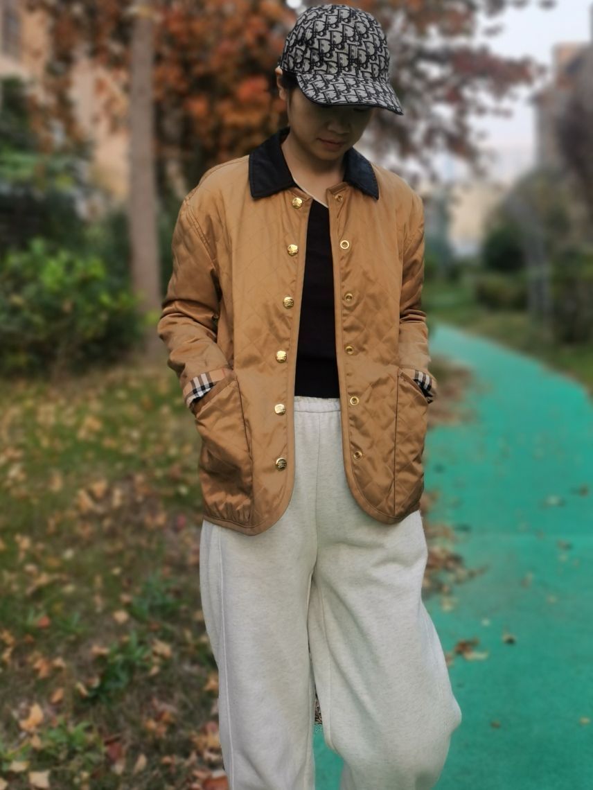 Burberry博柏利 拼接翻领宽松单排扣长袖夹克外套 ,秋冬棉服保暖也太配秋天了。袖口的格纹藏着小细节,复古有休闲。休闲帽一戴,出门就是时尚简约的崽。