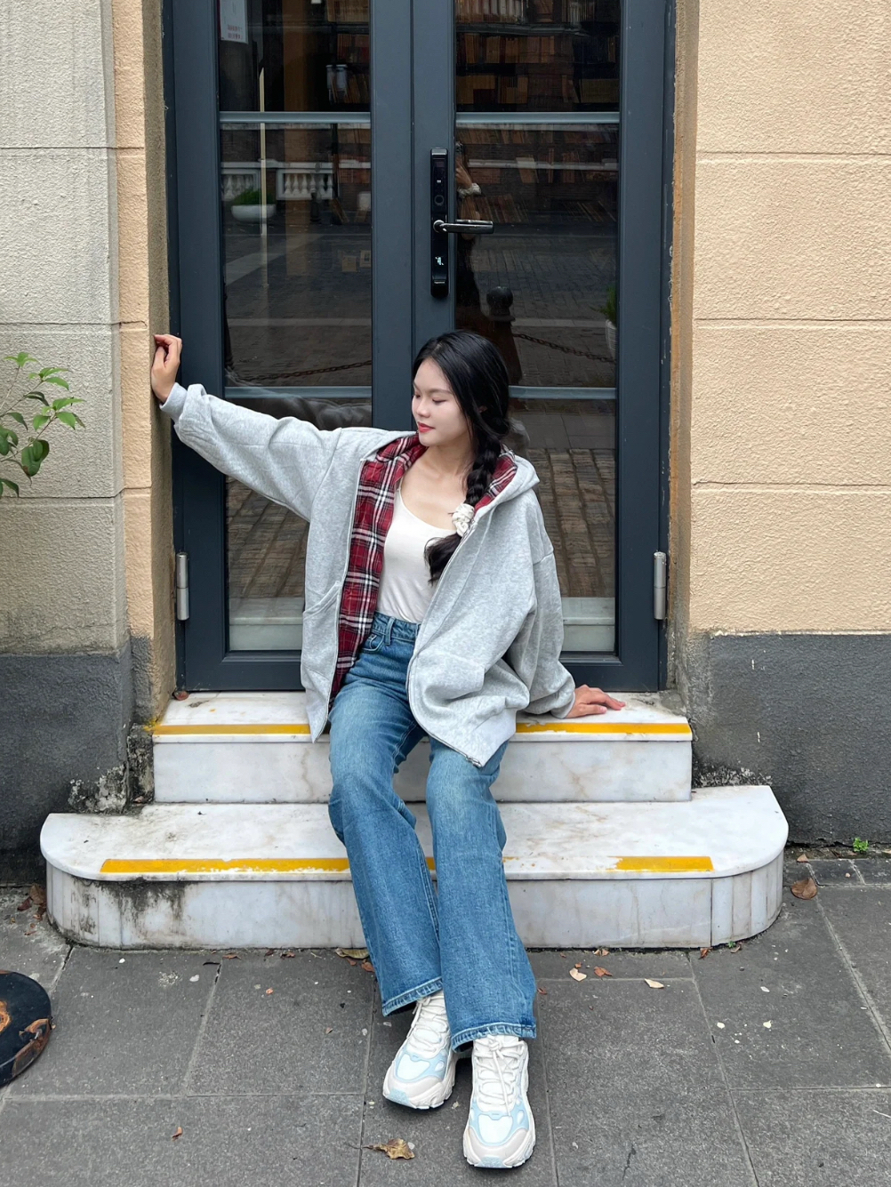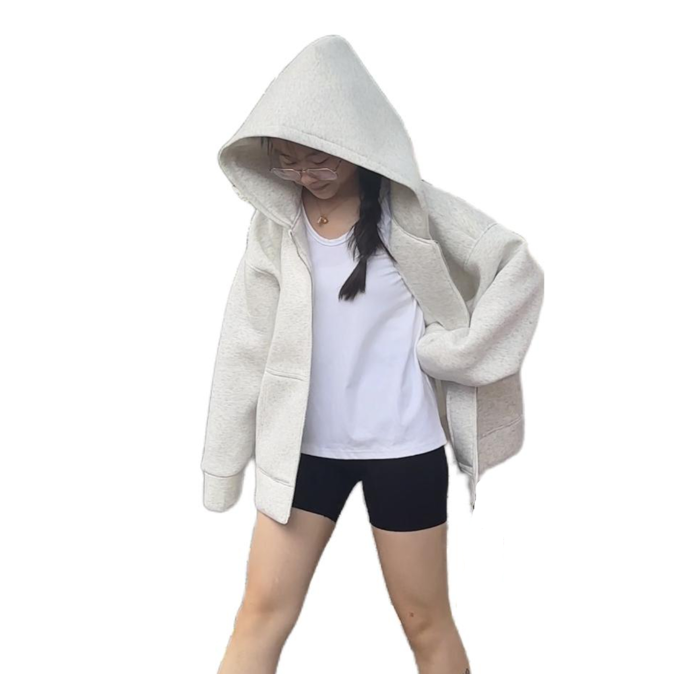 傍晚巷子里的松弛感,是这件浅灰开衫给的。拉链款穿脱自在,浅灰调自带低饱和氛围感,宽松版型裹在身上软乎乎,内搭黑T露边刚好戳中细节控。 400g重磅棉挺括不软塌,连帽一戴既能遮风又能藏住素颜,配卡其裤+背包逛夜街,舒服到不想换衣服,是能穿满整个季节的百搭款。
