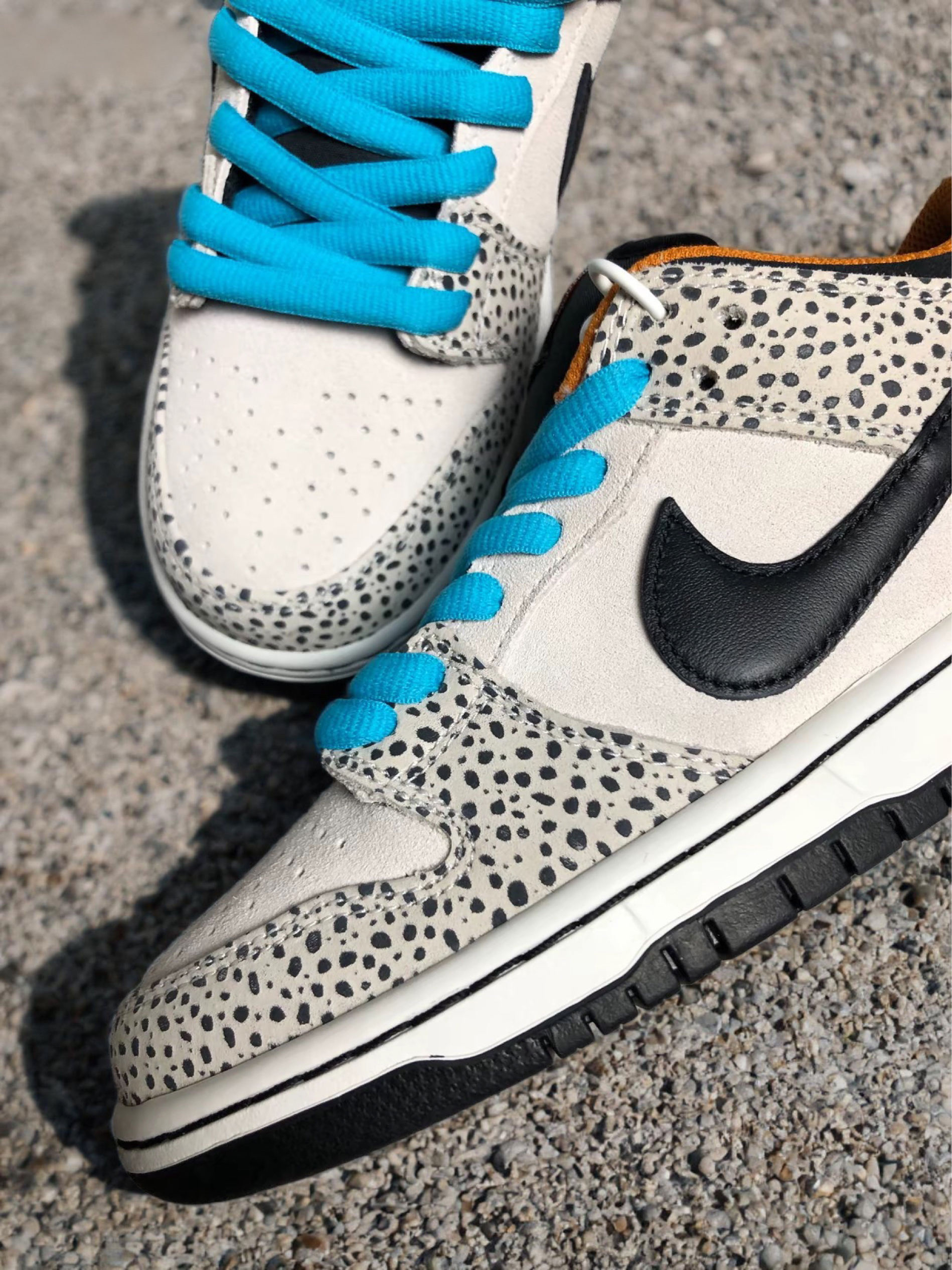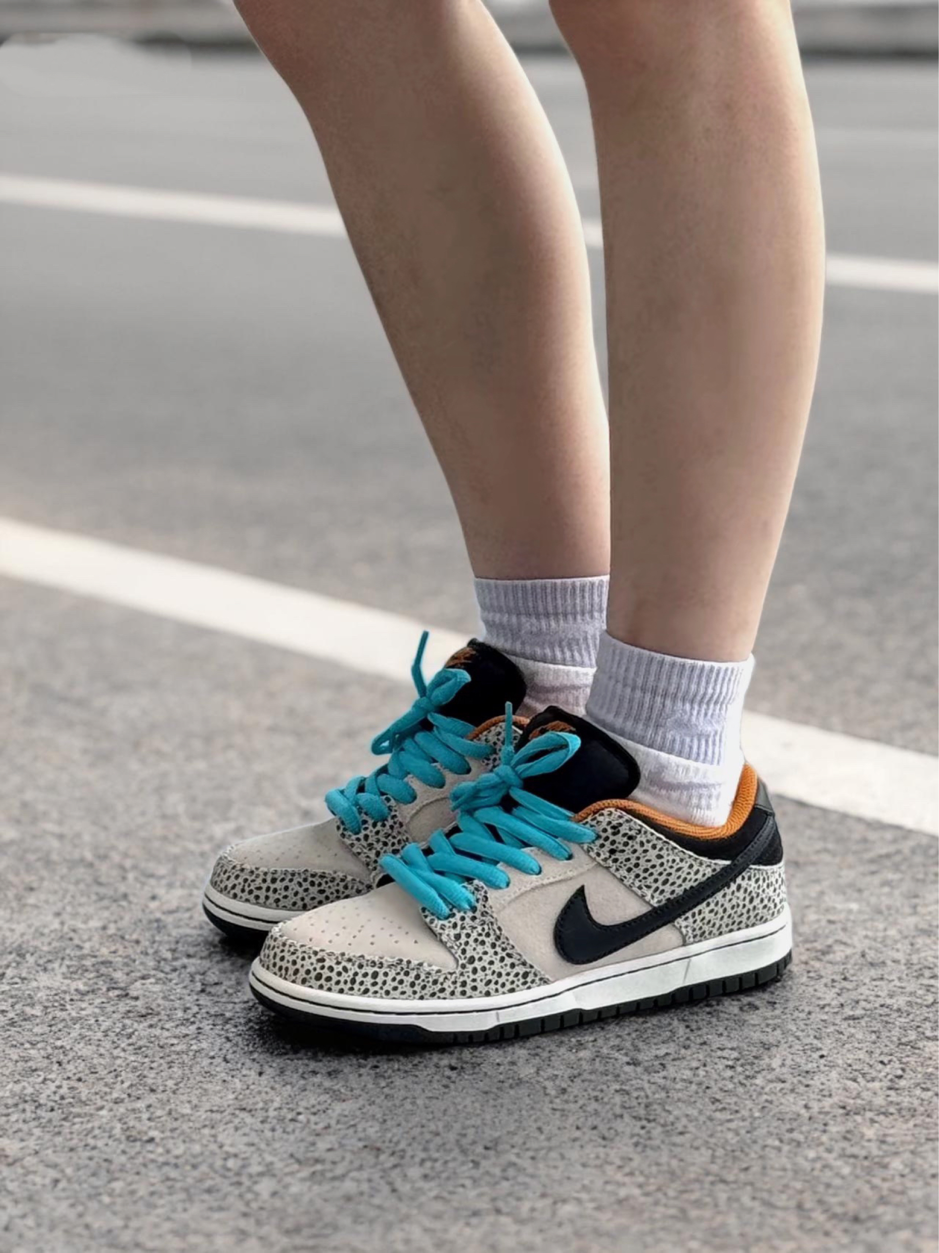 得物入手的Nike Dunk SB Low Safari "Olympics"棕黑款,上脚一个多月彻底沦陷!麂皮+皮革拼接质感拉满,经典Safari石斑鱼纹路低调耐看,棕黑配色秋冬搭牛仔裤、工装裤都不踩雷。后跟Zoom Air气垫真的加分,通勤暴走几小时也不累脚,生胶外底抓地力在线,走路稳得很。鞋型不挤脚,标准码闭眼冲,麂皮耐脏还百搭,穿了这么久没明显磨损。颜值和实用性双在线,街头党和通勤党都能h...
