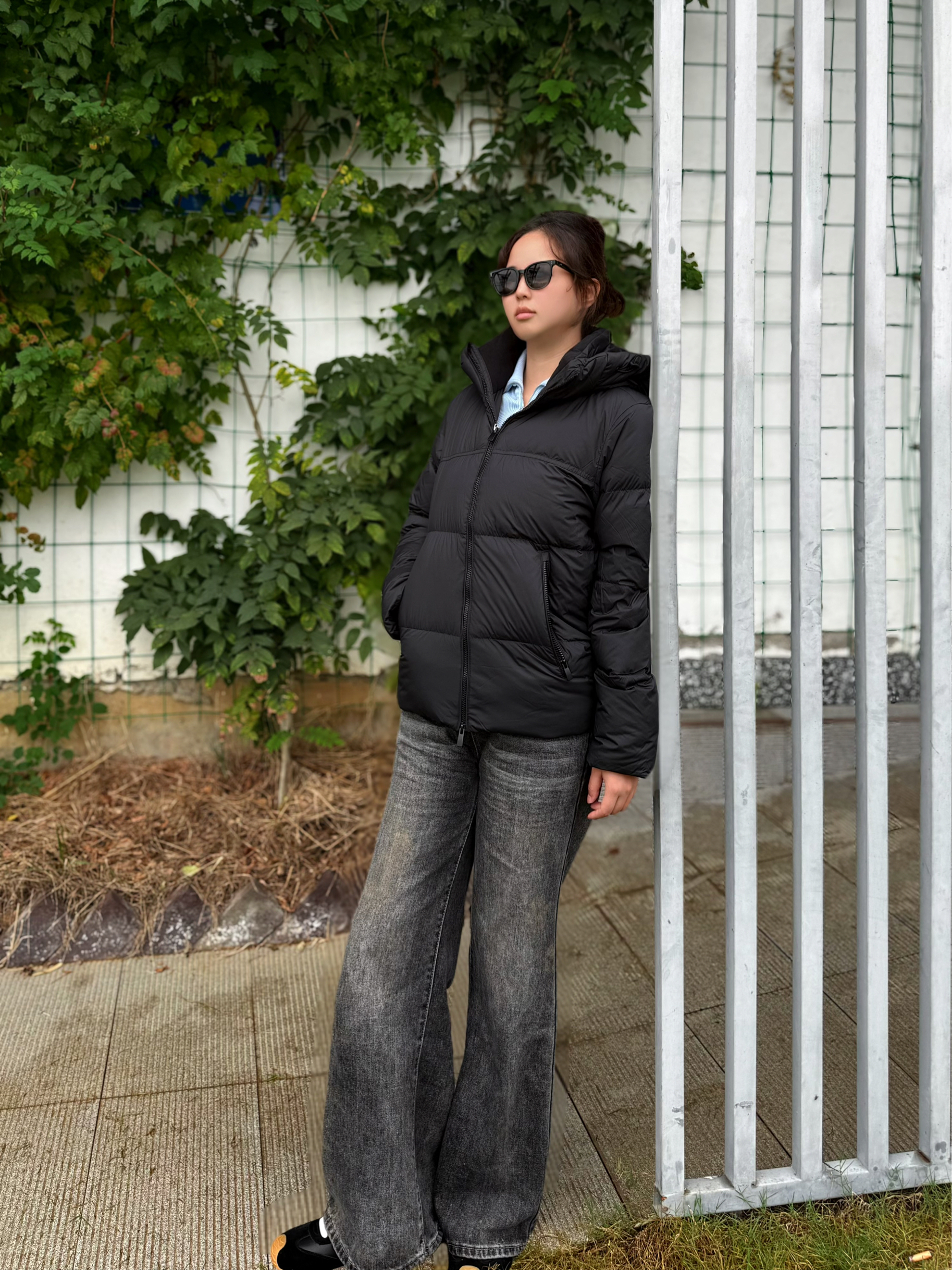 我168/110穿 M 码正合适,连帽设计会显脸小,短款版型对小个子超友好,不会压身高~ 三防面料溅到水渍直接擦,抗静电冬天穿毛衣不粘毛太香了!😎 性价比高,适合学生和实用党📍📍