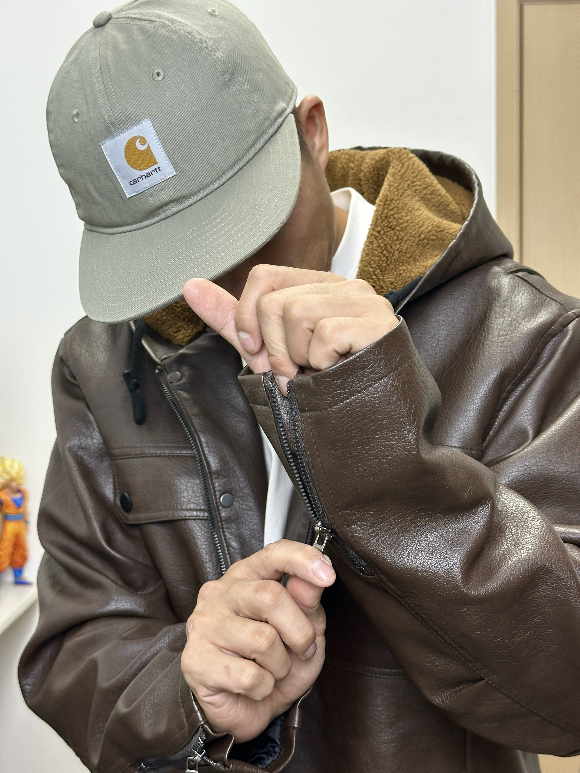 这件荔枝纹皮衣真的绝! 粗犷皮面自带美式硬朗气质,穿上就是「狠角色」登场 加厚内里保暖感直接拉满,通勤户外都不虚 宽松版型叠穿实力在线,随便搭就很出片📸 男生冬季衣柜必入的一件:保暖,也要酷到发光✨