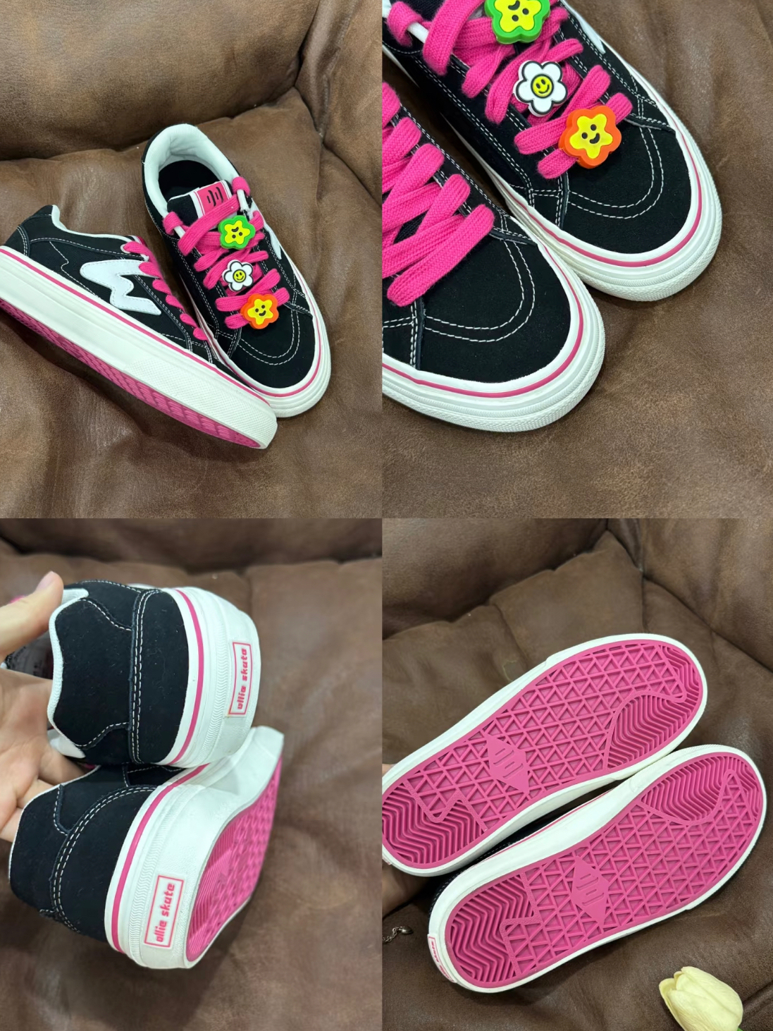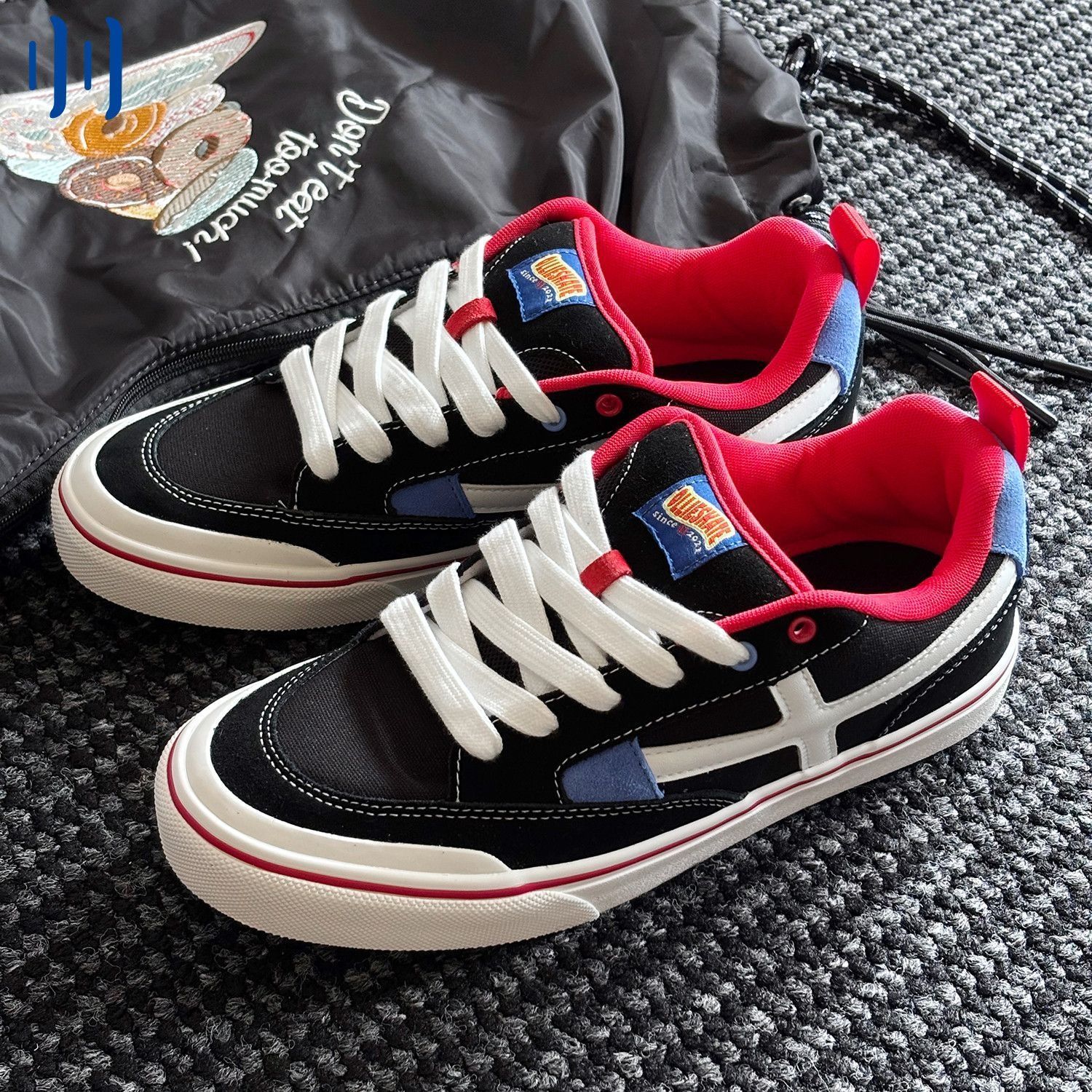 风帆布与质感面料拼接,融入赛车鞋动感车缝线+精致刺绣,经典黑白、亮眼番茄红等多配色,适配学生校园、街头潮搭、情侣出街