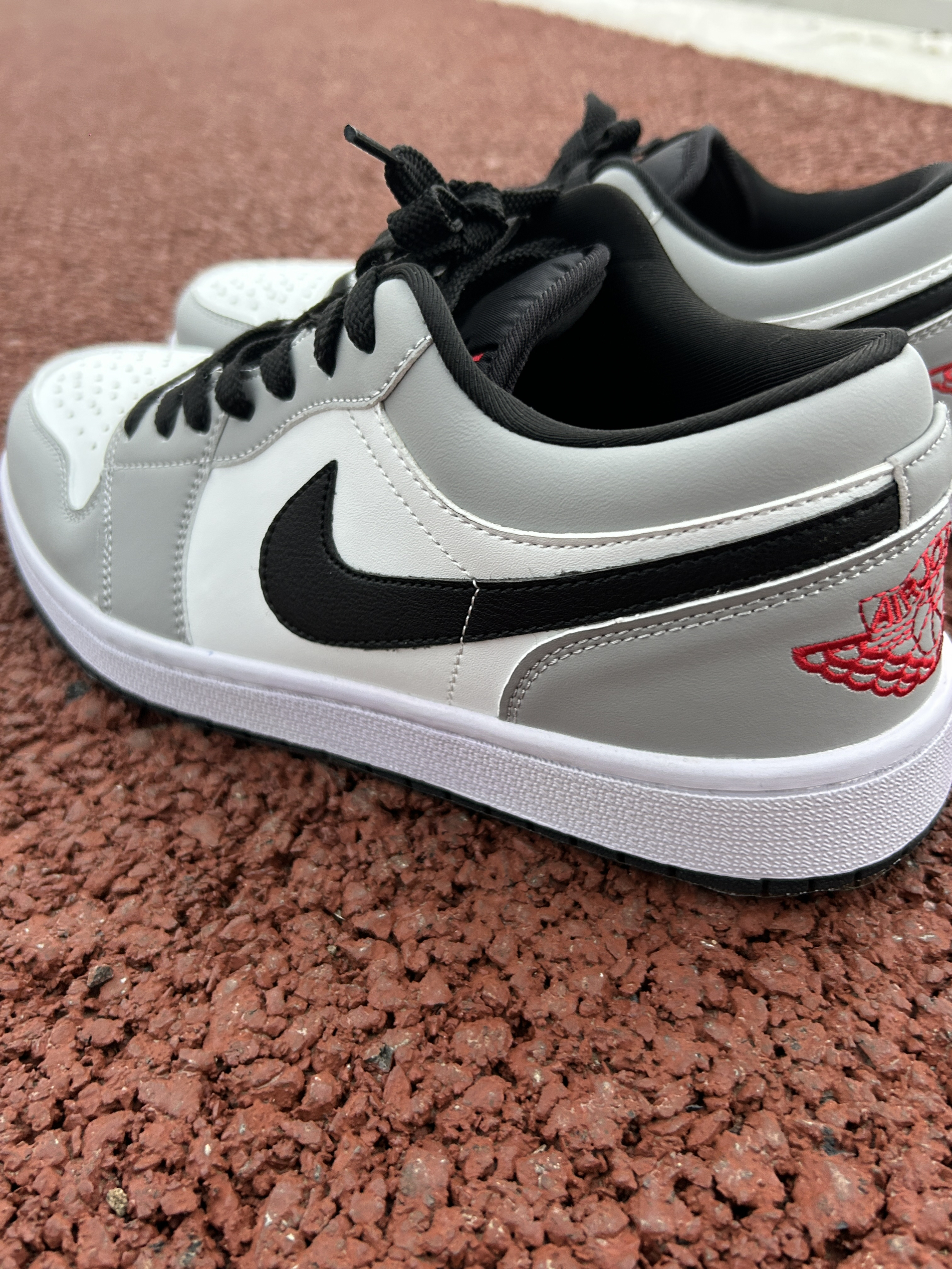 周末穿它逛了下公园,脚感比想象中软和,走一下午也不磨脚。灰白黑配红色飞翼标,简约又有细节,搭牛仔裤、运动裤都好看。你们觉得这种低帮AJ日常穿,是选亮色还是这种低调配色?