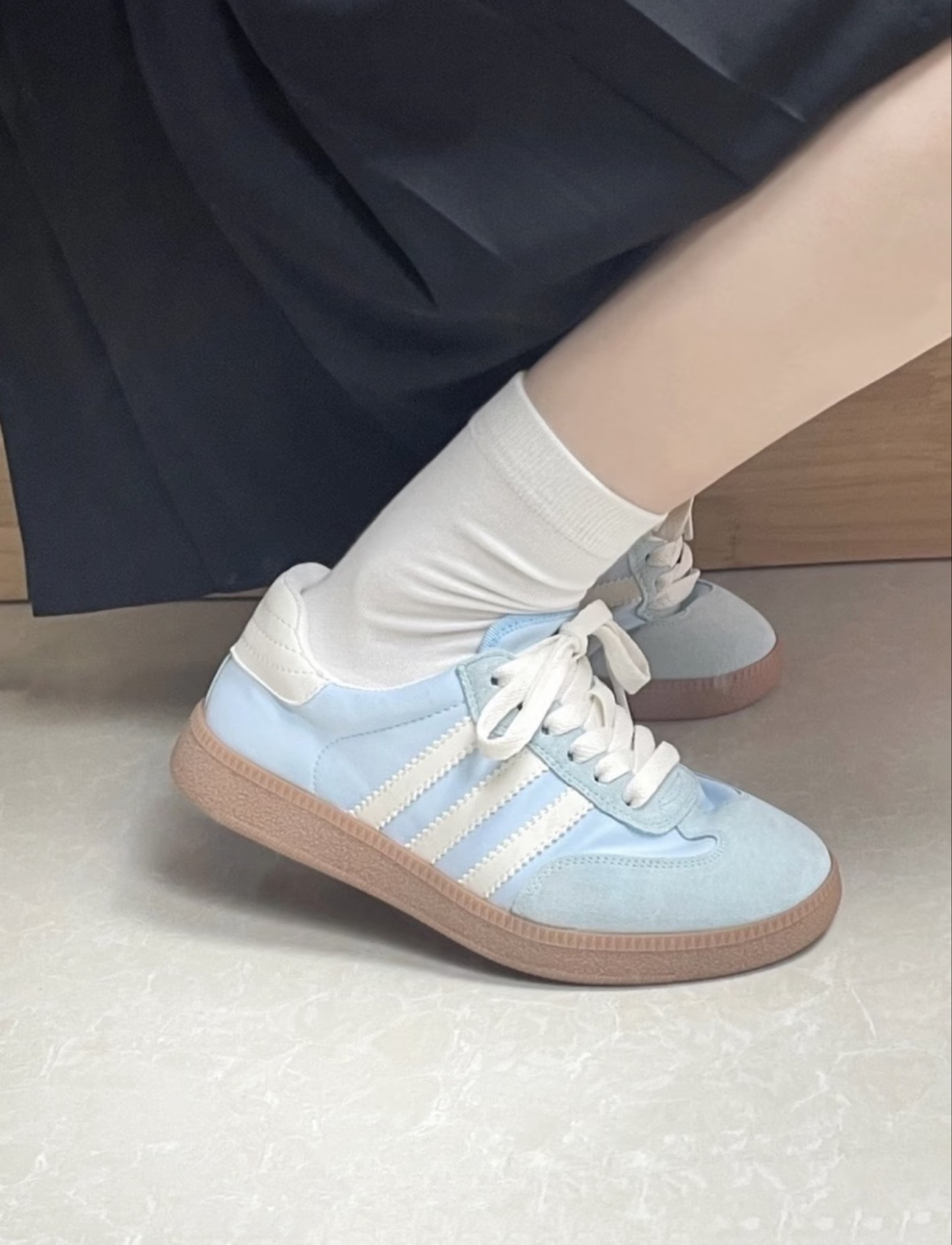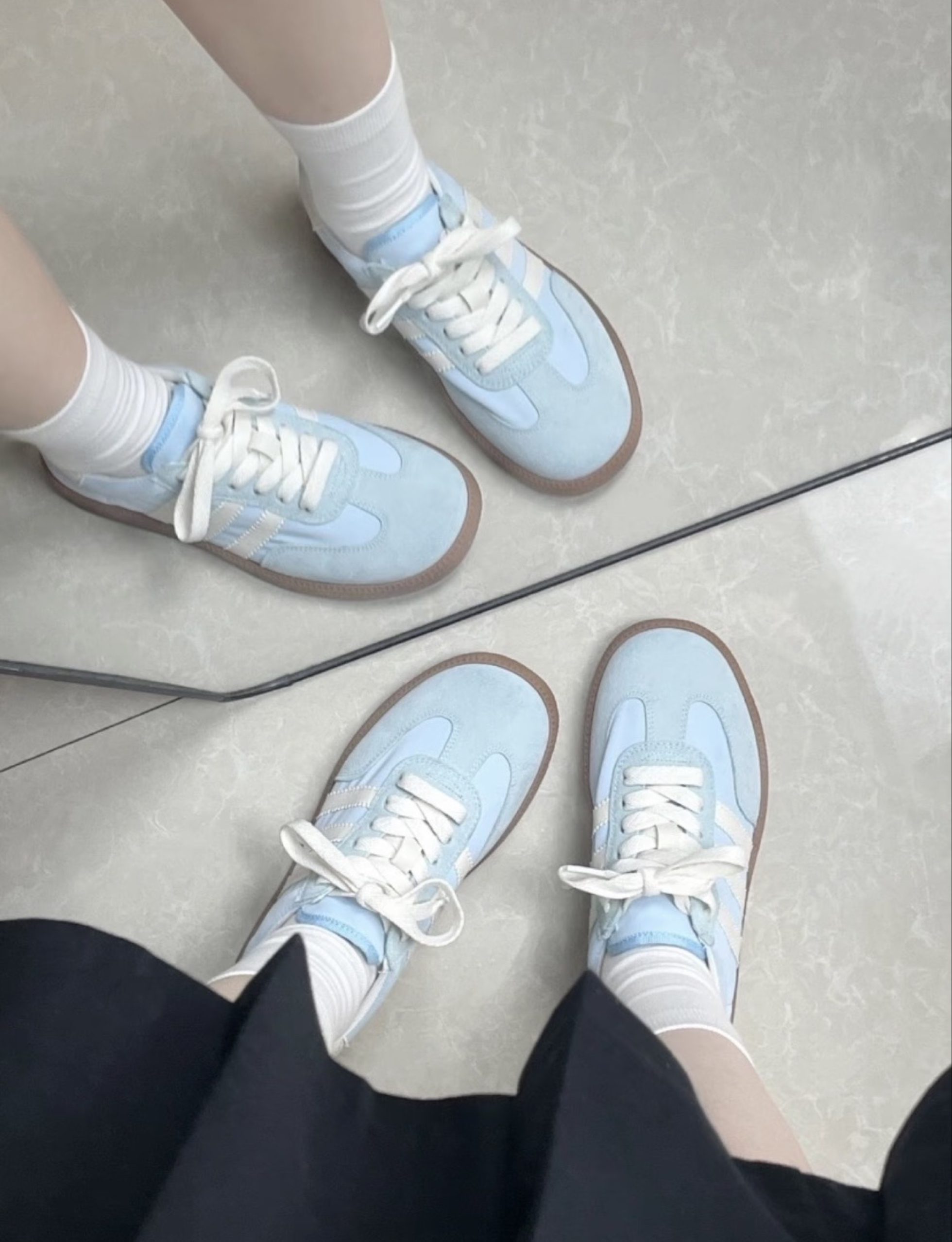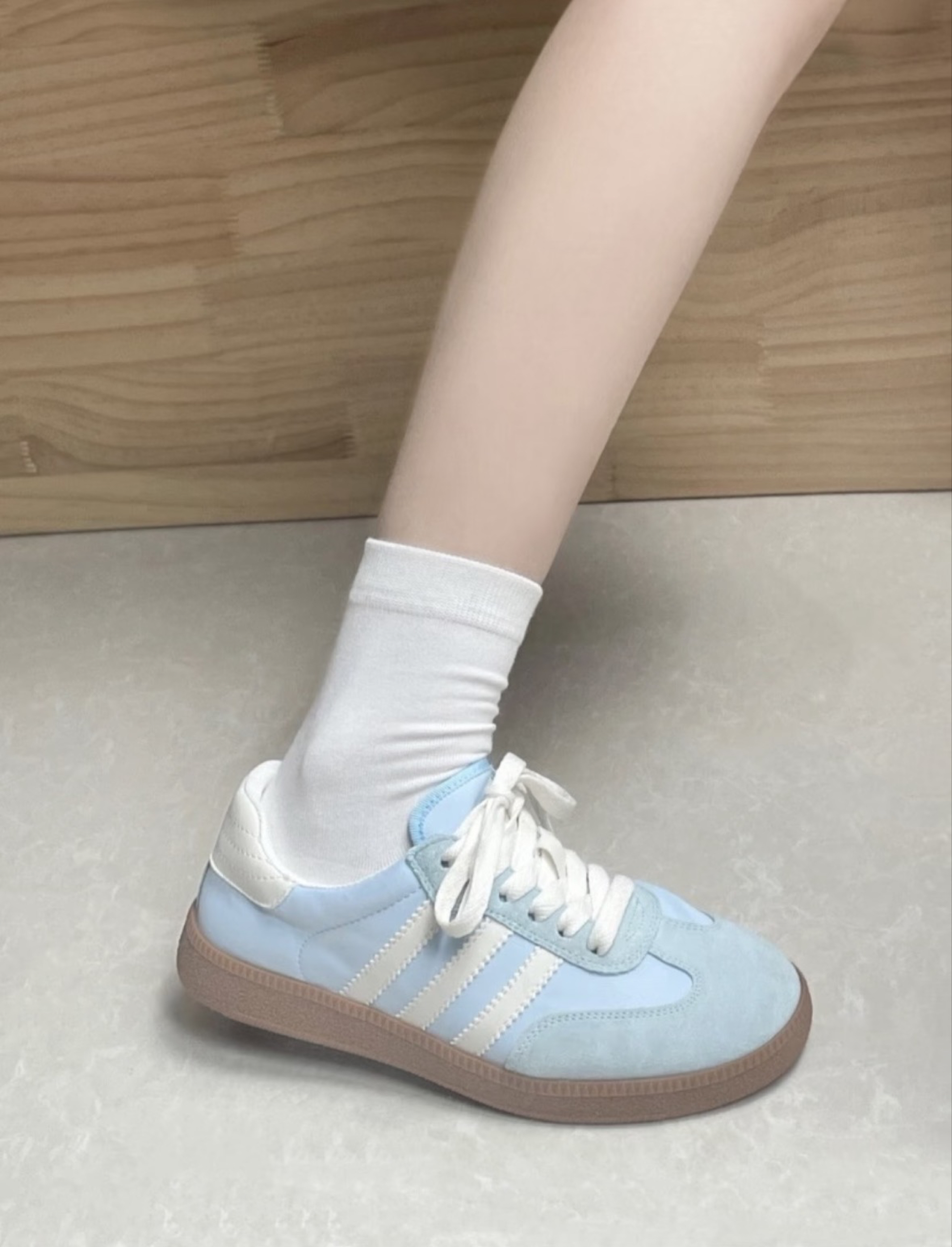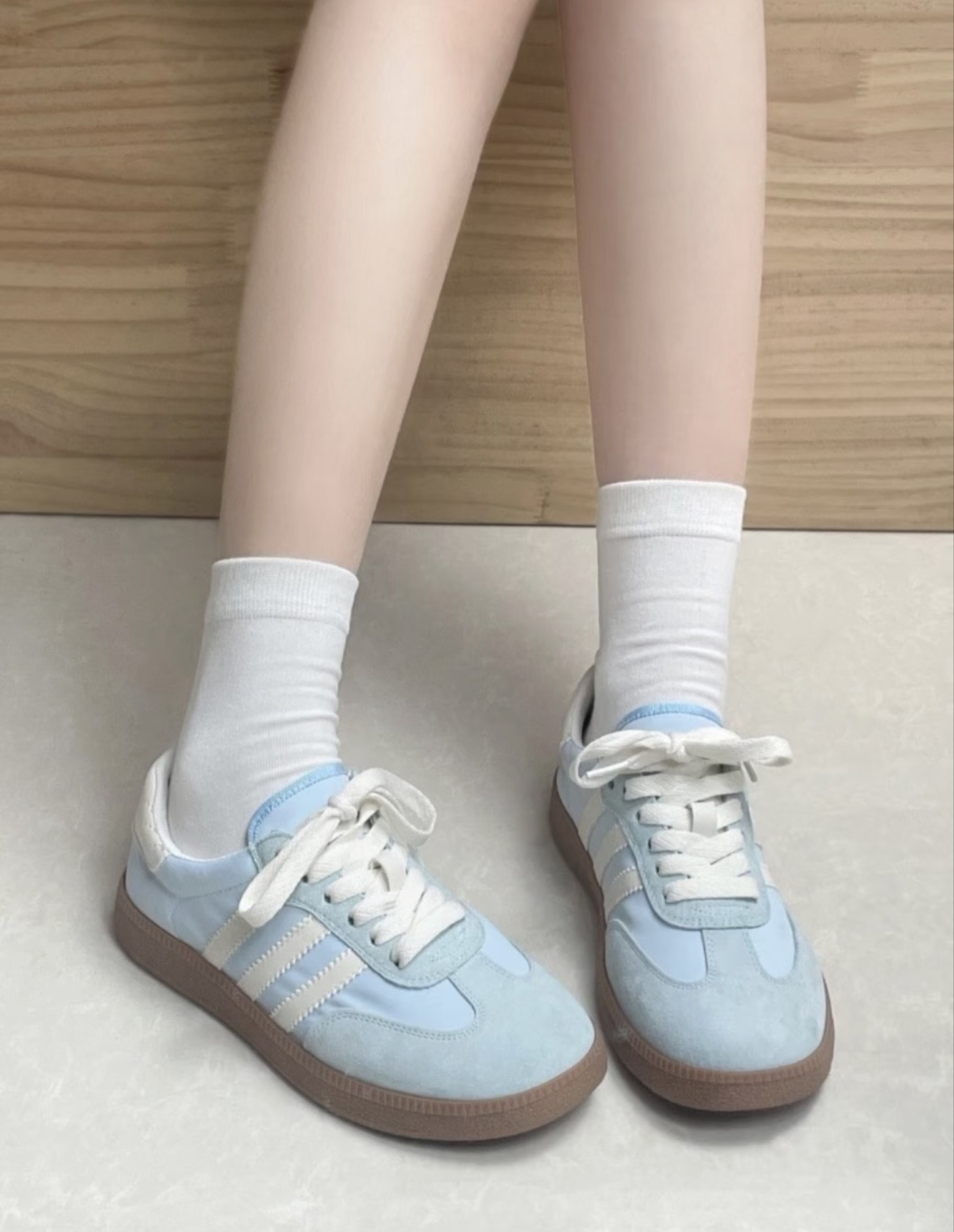 介双25年新品三叶草德训鞋实在是太夏天啦🌊 奶白配色 真的好温柔都不舍得穿出去弄脏 淡淡的baby蓝像是把巴厘岛的风吹到了脚上 搭配白色袜子或者白色裤子都超级青春活力~