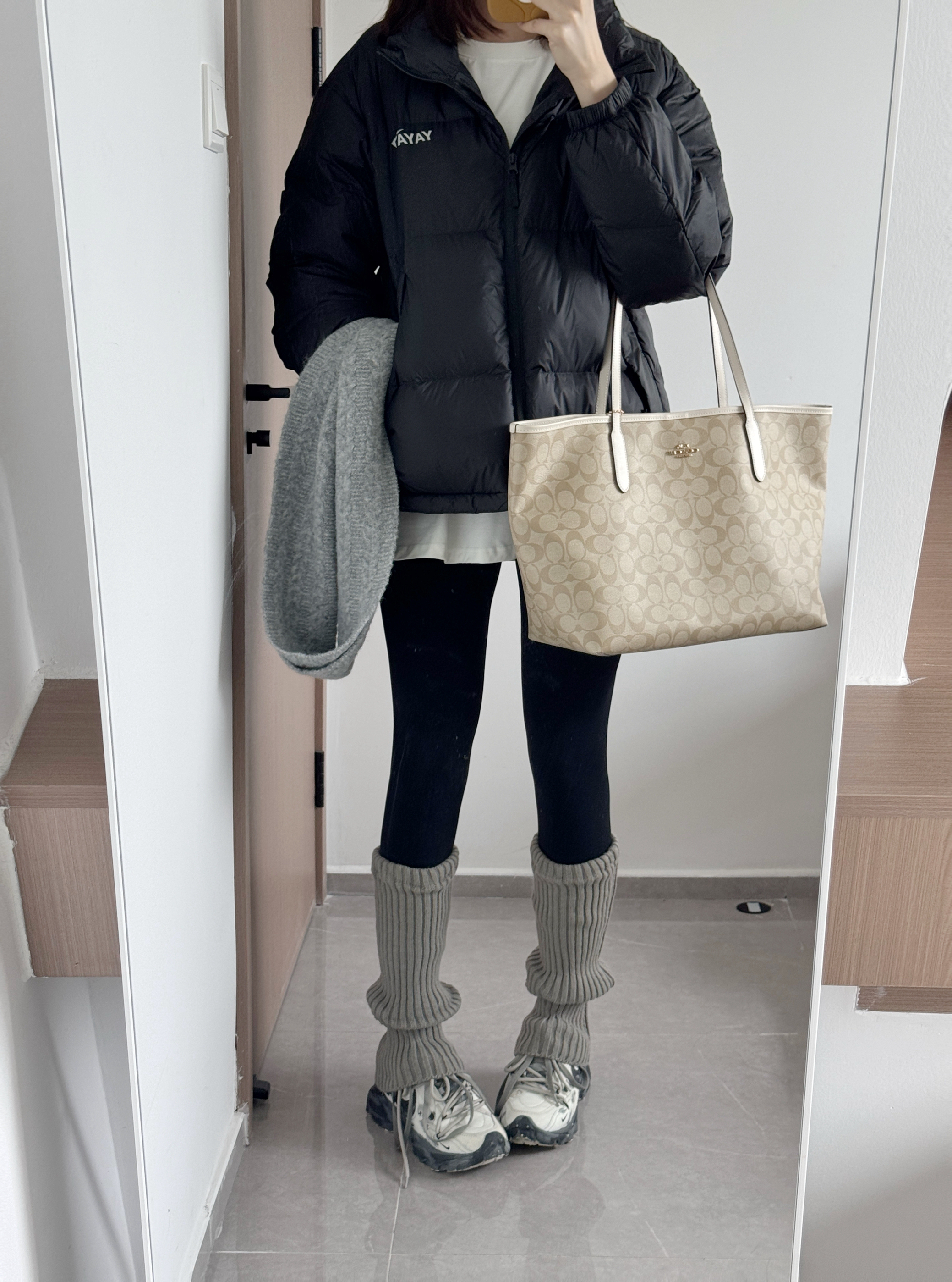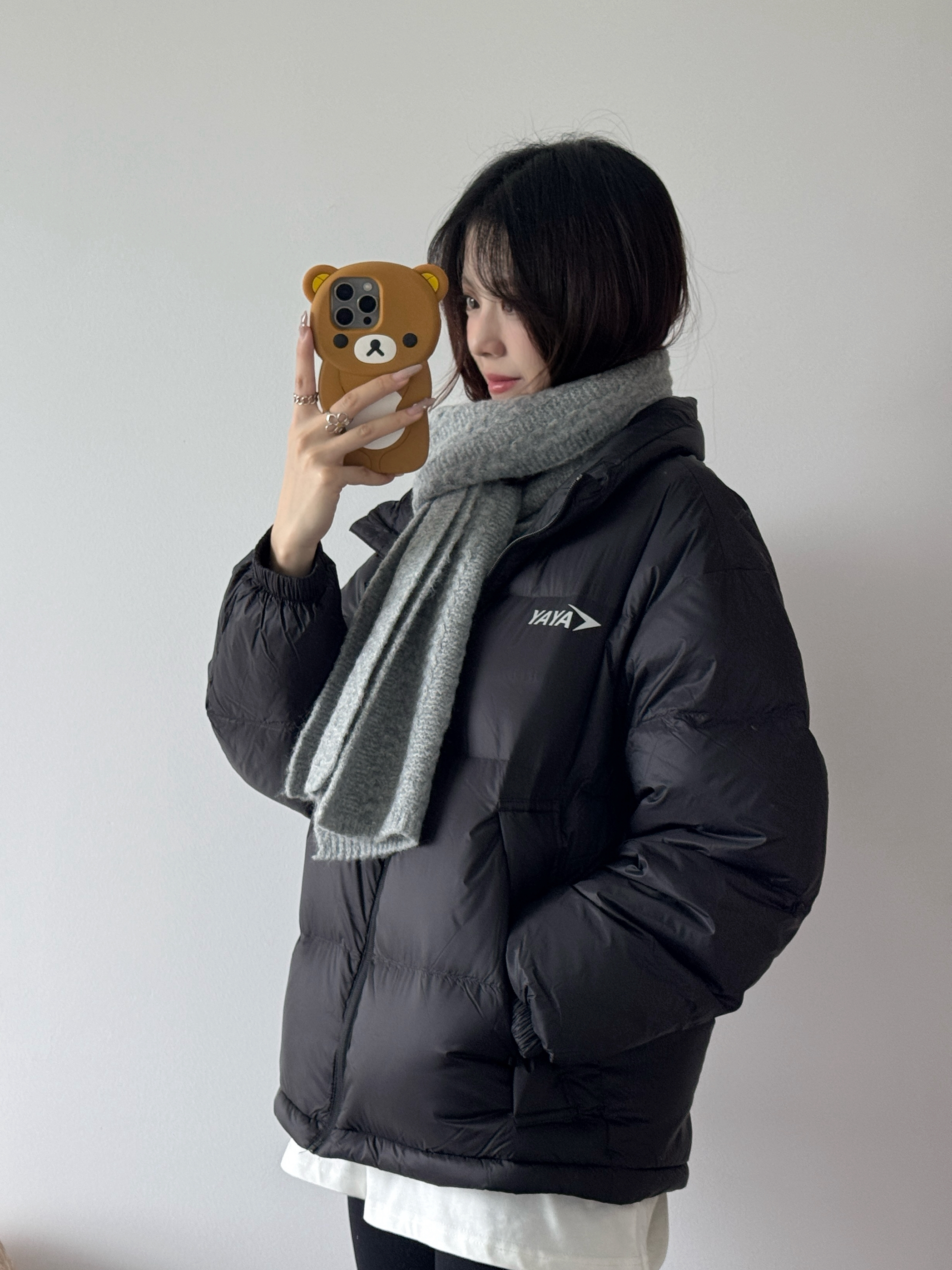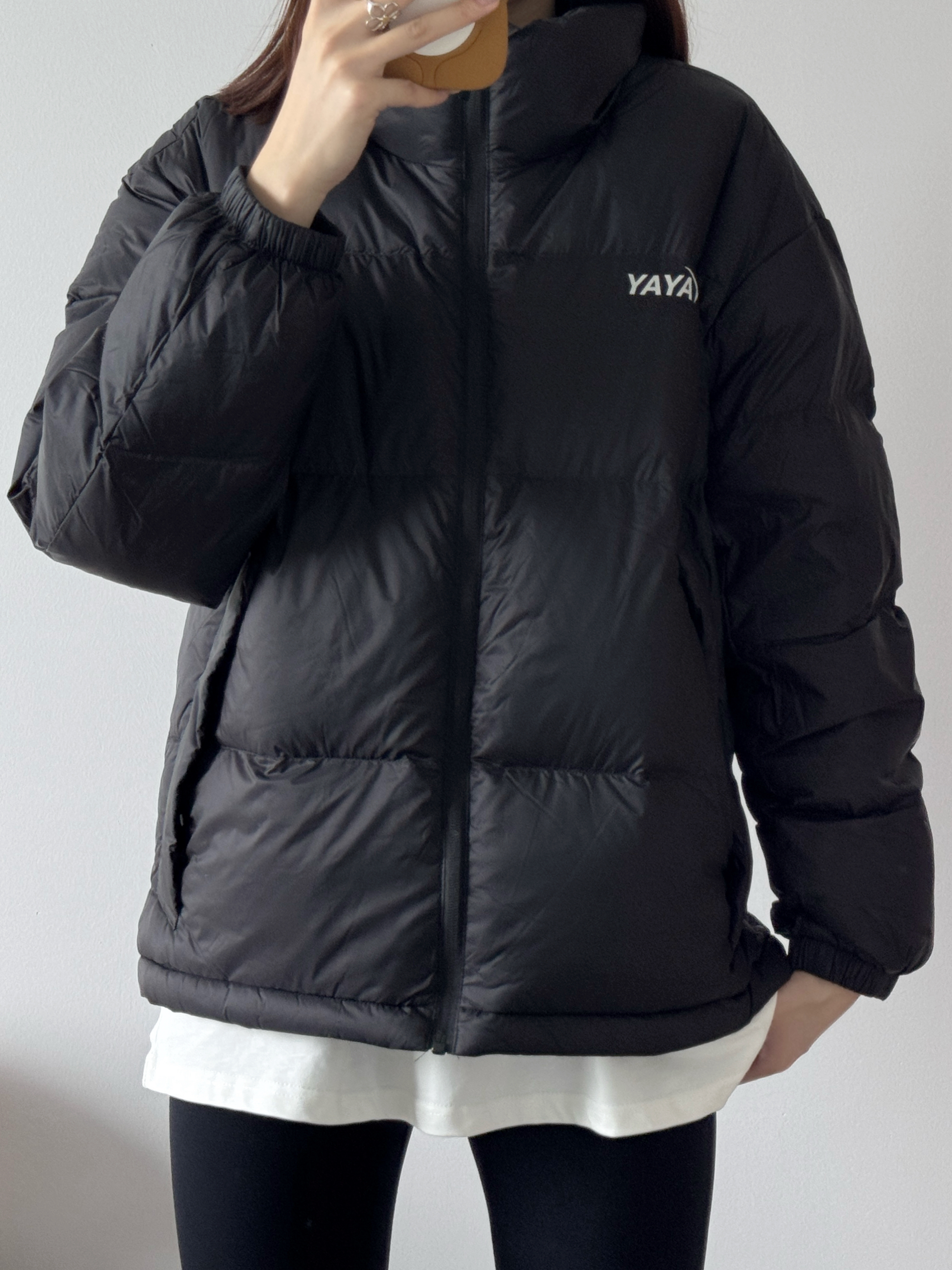 冬天真的离不开羽绒服呀✌️ 黑色尊滴很百搭而且还耐脏~ 鸭绒填充上身好轻好软好暖和! 版型很好长度也很适合 不会压个子哦 搭配围巾一套韩女氛围感拉满啦🥰