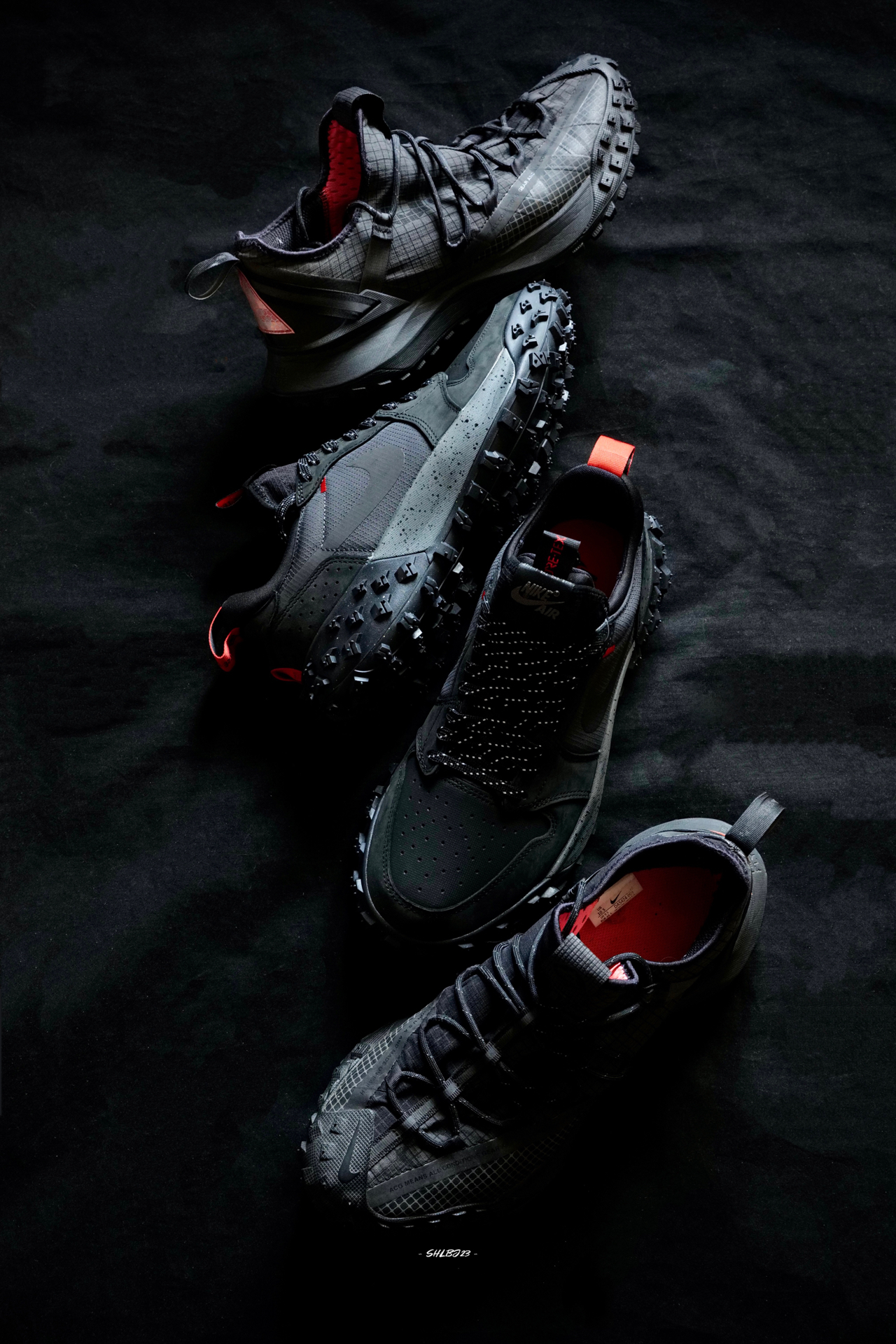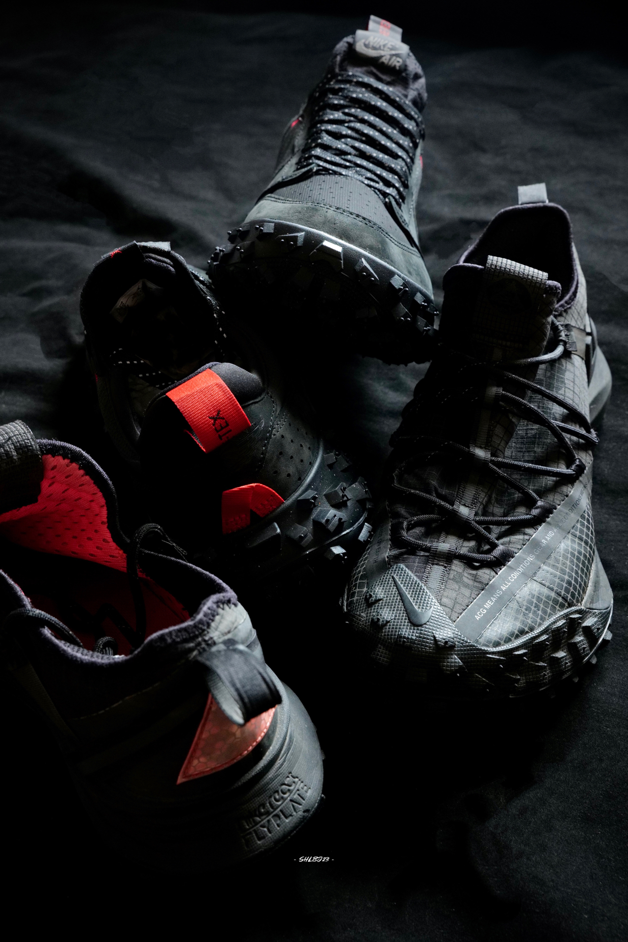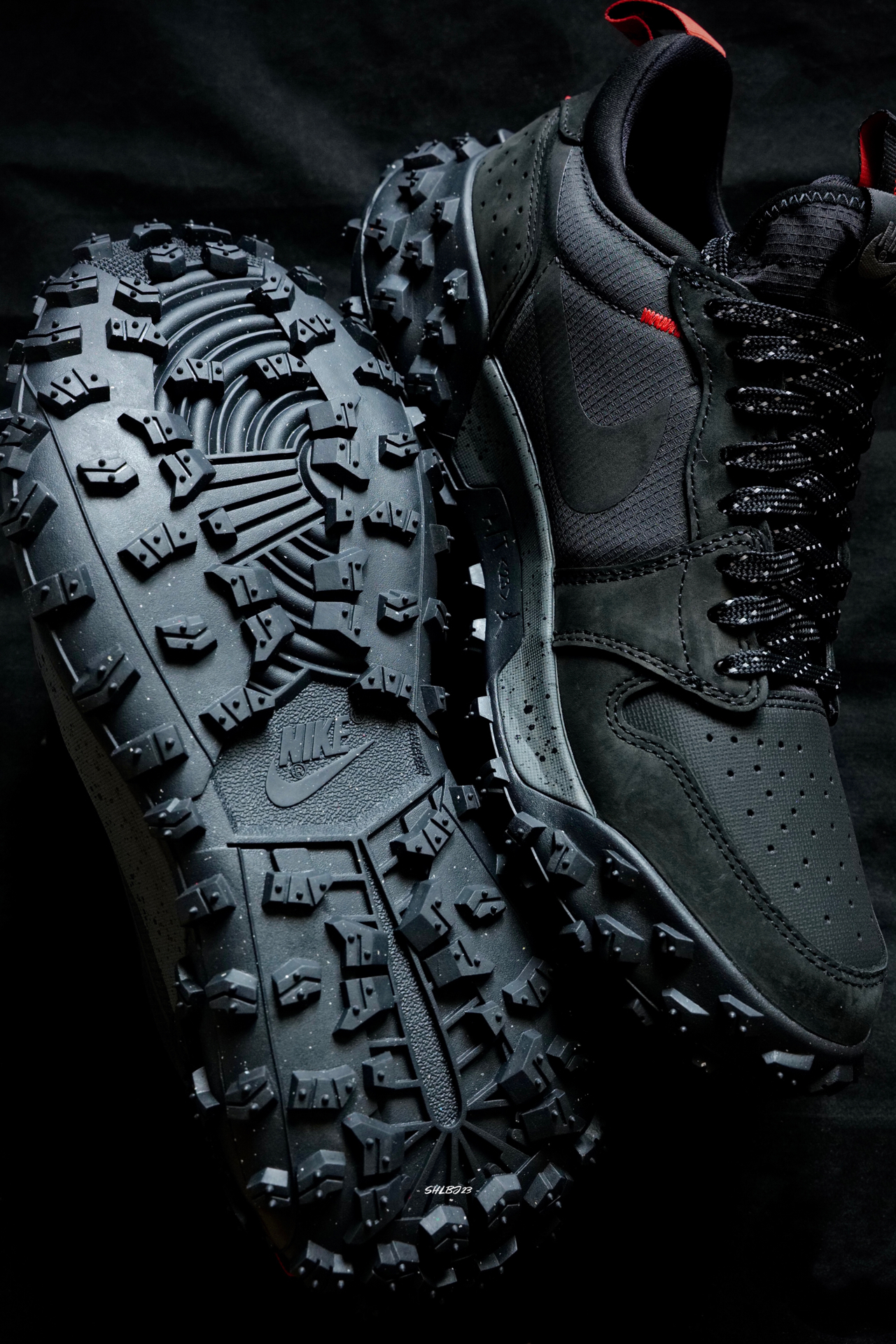 哈哈你敢信吗?这是一双户外版的AJ1哦。其实出这鞋的时候我是很开心的,毕竟我又可以有一双雨鞋啦。 之前一直穿的雨鞋是Mountain Fly,所以拿出来一对比后我个人认为这双element也是参考了Mountain Fly的配置,从弧度后跟和中底的视觉感都很类似。鞋子也是类似于袜套鞋套的一体式设计,目前就看看这个鞋面麂皮类的材质能不能扛下雨了。 这两双鞋唯一我自己会注意一些的是因为是户外鞋,鞋...