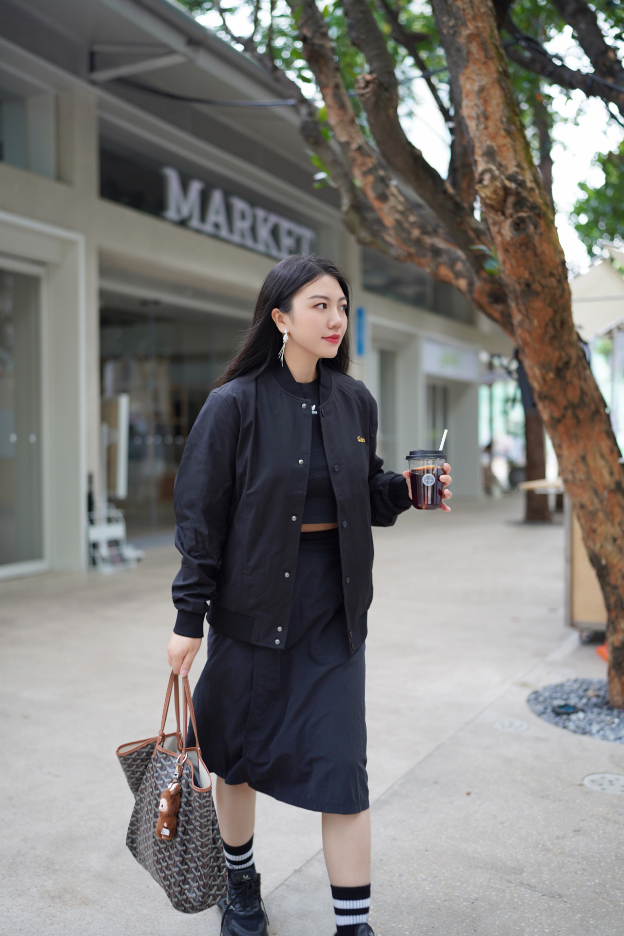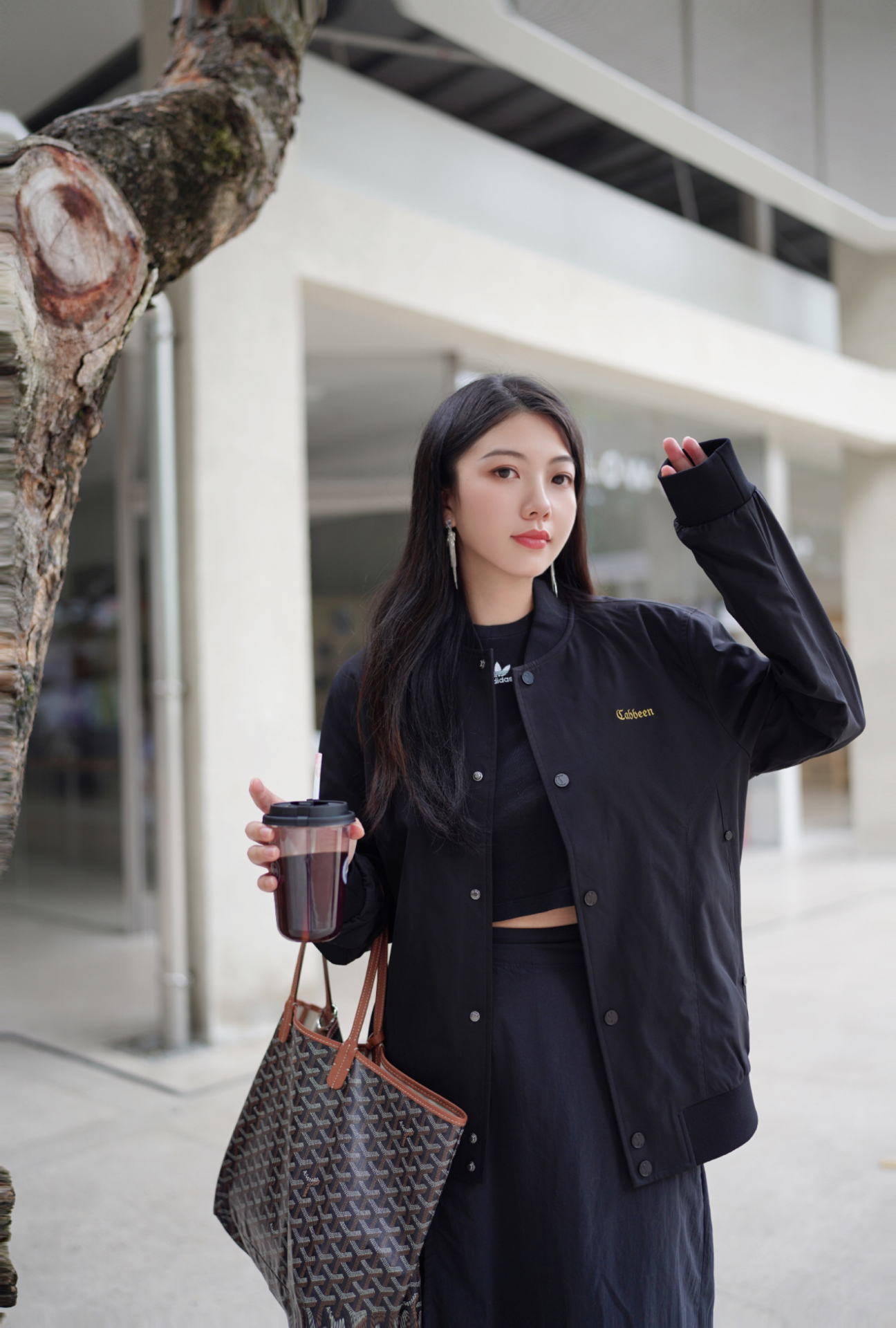 今天分享一套懒人出街套装 全员黑色但超有层次感! 基础款黑T打底 搭配机能风工装裙 再披上oversize棒球外套 三层叠穿绝绝子✨ 不同黑色面料碰撞太妙了 哑光棉质×硬挺帆布×立体刺绣 细节满分不单调 🦥依旧是i黑色系的一天∠( ᐛ #廓形力量风 #秋日穿搭配色法则 #元气秋冬暖出型 #今天穿Cabbeen卡宾 #卡宾穿搭实验室