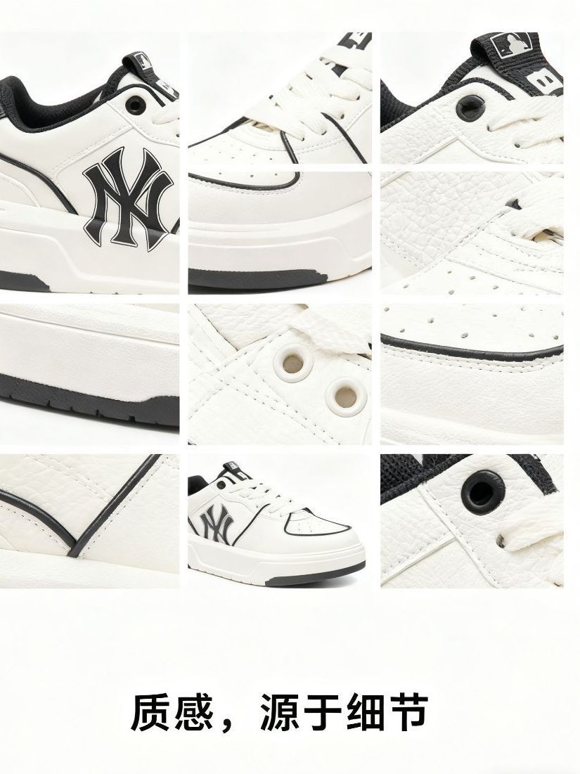 【说在前面】** 纯白鞋千千万,但顶流Icon都在穿的MLB洋基队标才是终极答案!经典NY徽章+韩系加厚底型,**(⚠️温馨提示:拍大半码更舒适)**,轻松复刻韩剧校园男神/女神的清爽OOTD! **🔥【核心视觉化卖点|深度剖析】** * **【细节展示|标志性美学的胜利】** * **「立体NY刺绣徽章」:** 特写镜头锁定!高密度刺绣工艺,Logo立体饱满,边缘工整零线头,这才...