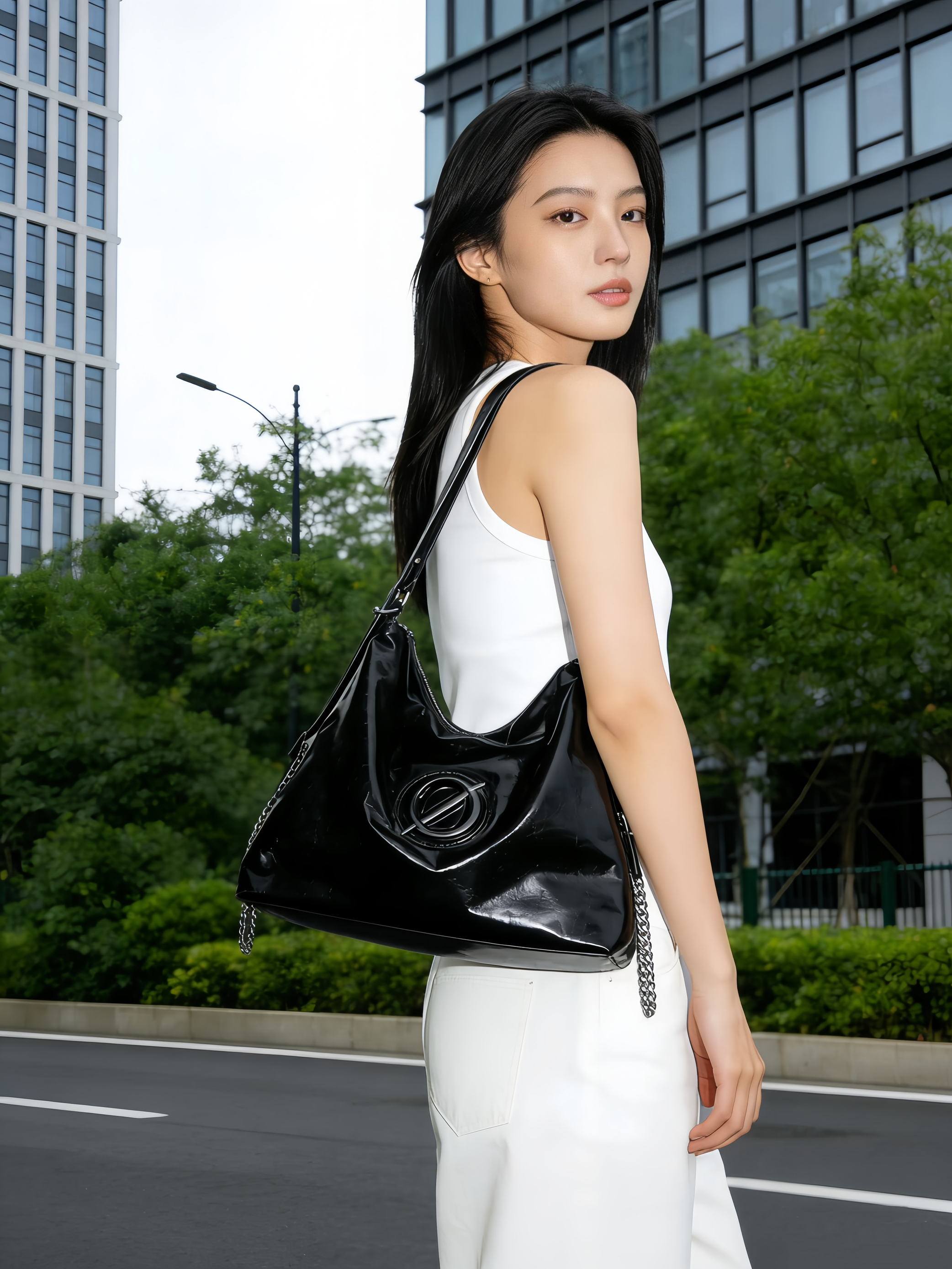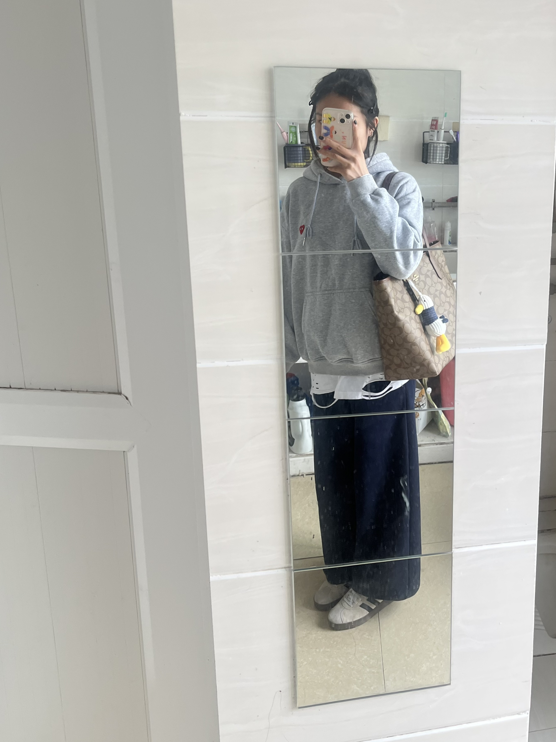 本人160身高刚开始还以为夏天背着会觉得大 现在看感觉是我多虑了 容量真的太能装了 日常通行真的是太OK了 书本电脑雨伞水杯放进来还绰绰有余 同时背着还很显气质 选的深棕色在秋冬季节更是主导色系 到时候冬天再给大家出一起冬天的包包搭配噢!