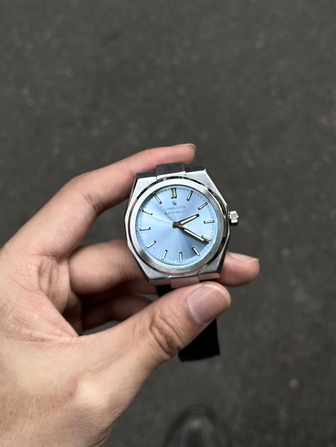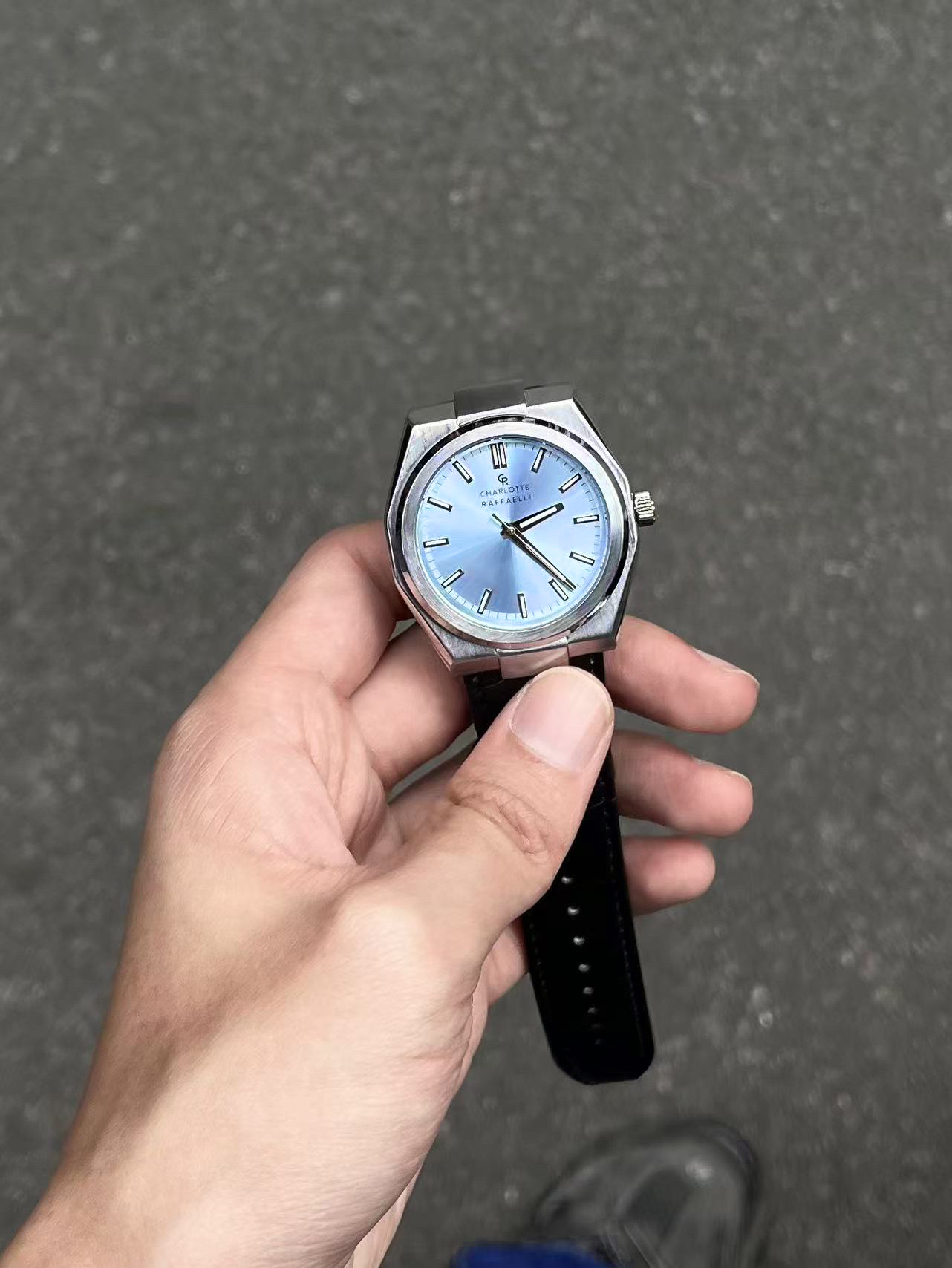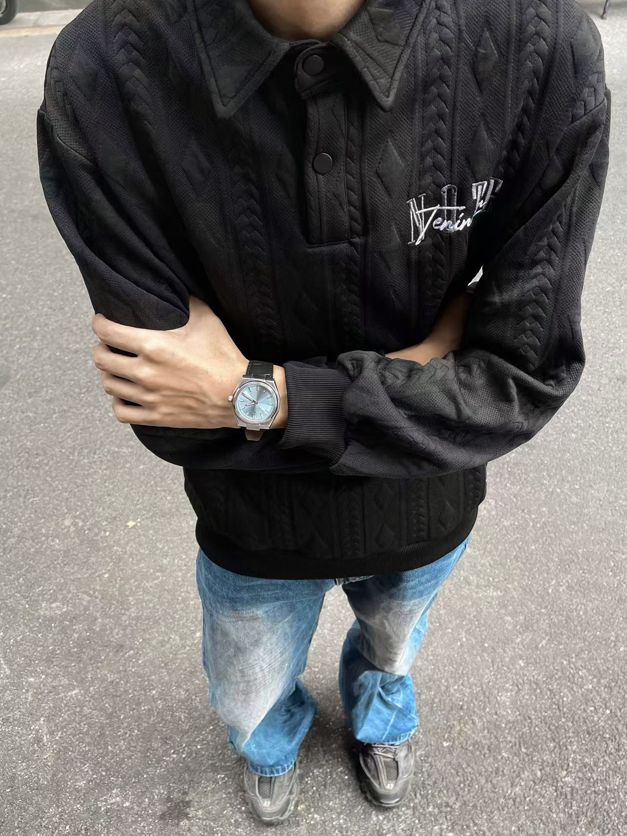 6G入秋一套简单cleanfit穿搭拿捏住😶🌫️ 黑色polo卫衣搭配一条水洗牛仔裤👁️ 点睛之笔的配饰来自 #CharlotteRaffaelli/夏洛特拉斐利 的蓝色之眼手表🔥 渐变的蓝色表盘搭配皮革表带颜值感拉满💎 上手效果没得说一字帅🗡️ 不管是做日常通勤或者是凹造型都是很棒的选择🐟