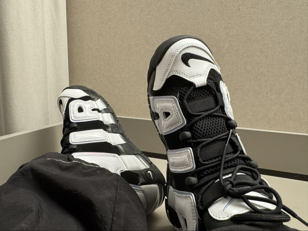 本篇笔记关联了Nike Air More Uptempo 皮蓬大Air 缓震 复古 防水 百搭 防滑耐磨 运动休闲鞋 GS/白字/黑色等商品,为用户提供真实的使用体验和购买参考。