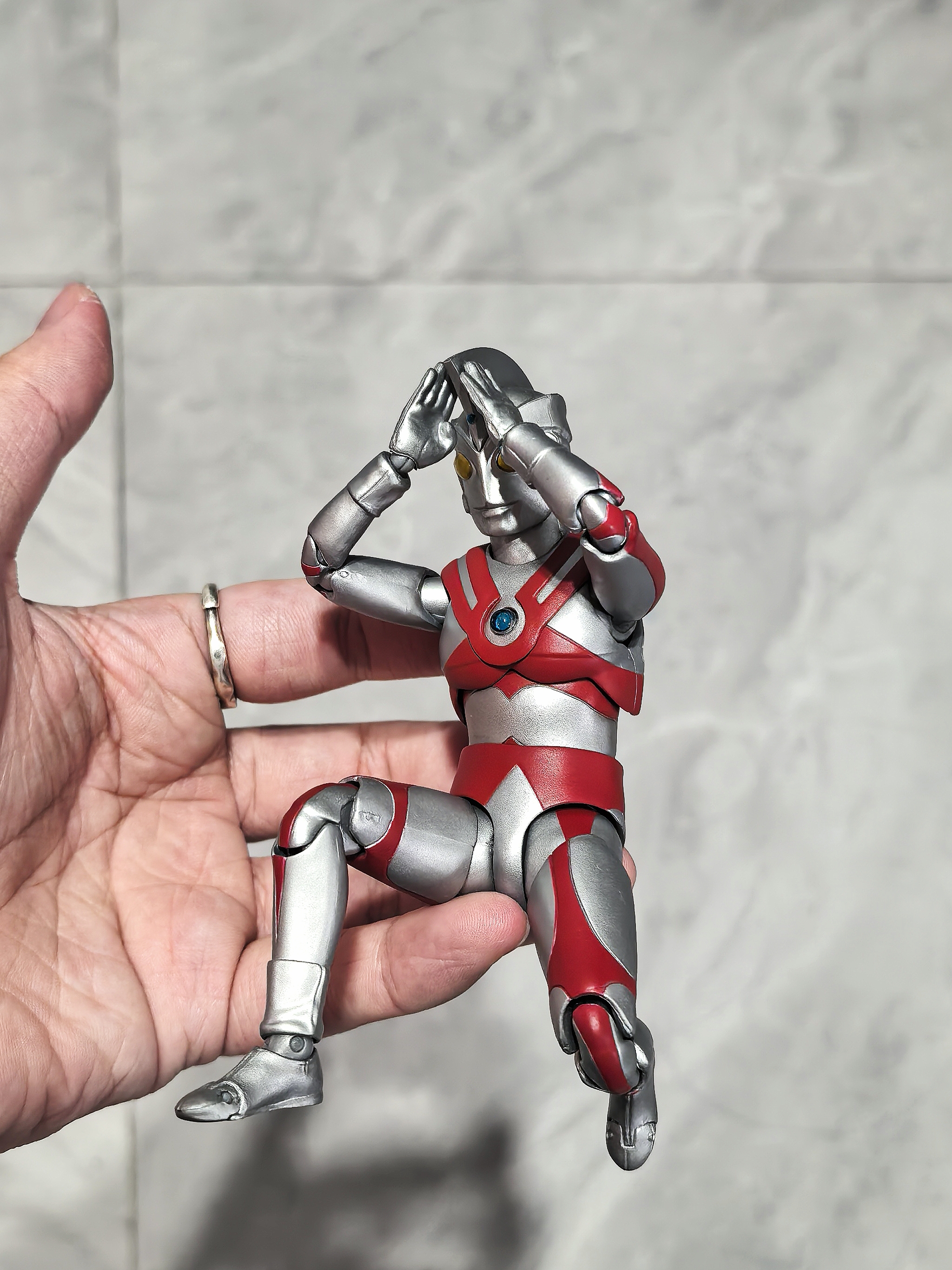 我入了款奥特曼模型,造型还原童年记忆里的泰罗~ 能摆出好多战斗姿势,把玩起来很有意思🥳 就是关节太脆,泡热水后也容易断,得小心些。 14岁以上的奥迷可以瞅瞅~