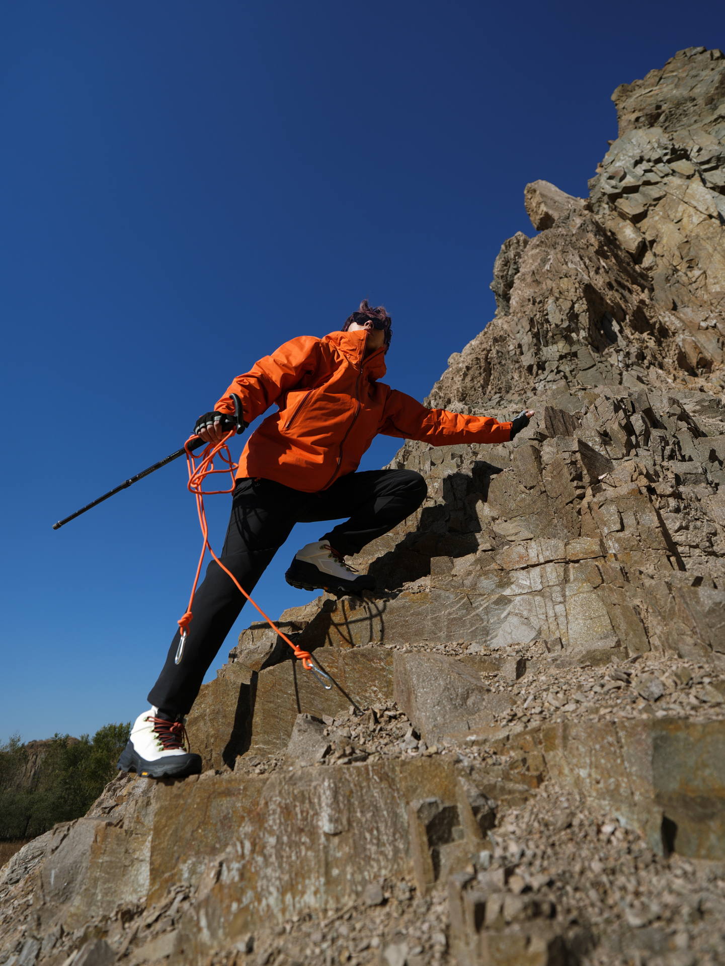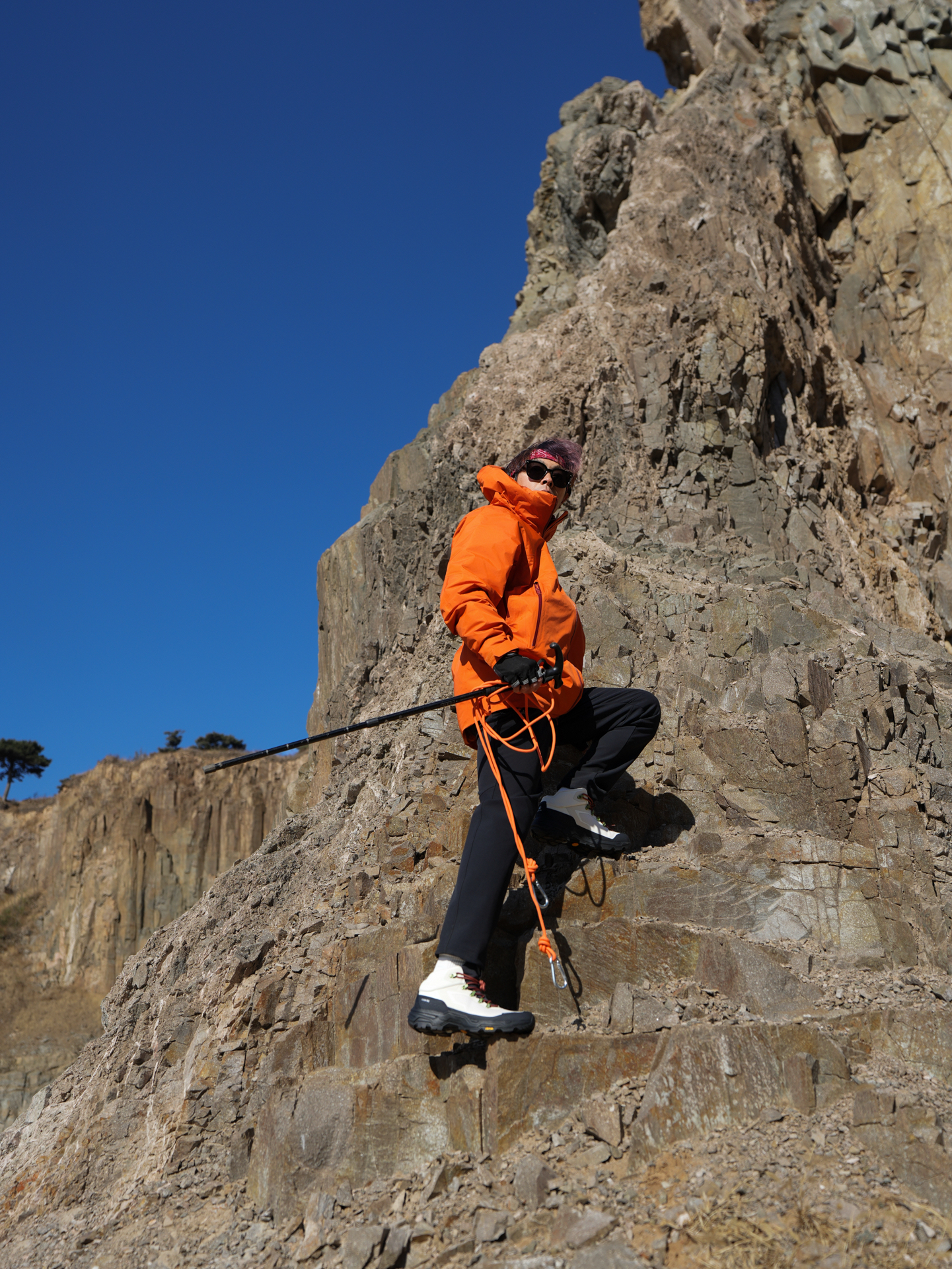 阳光☀️明媚秋天的风是真大 大风天气➕岩石🪨山是攀岩的一个挑战😎 装备必须也是专业的才能应对这种天气与地形 我搭配活力橙色➕黑色给人一种活力四射感觉😎 上衣 凯乐石KAILAS 博格达PLUS运动户外 防水防风保暖冲锋衣 版型宽松选的 L码 裤子 凯乐石KAILAS 徒步裤 版型宽松选的32 身高179 cm 体重 62kg #KAILAS凯乐石 #乘着秋风去攀岩 #野人30项 #凯乐石登山队...