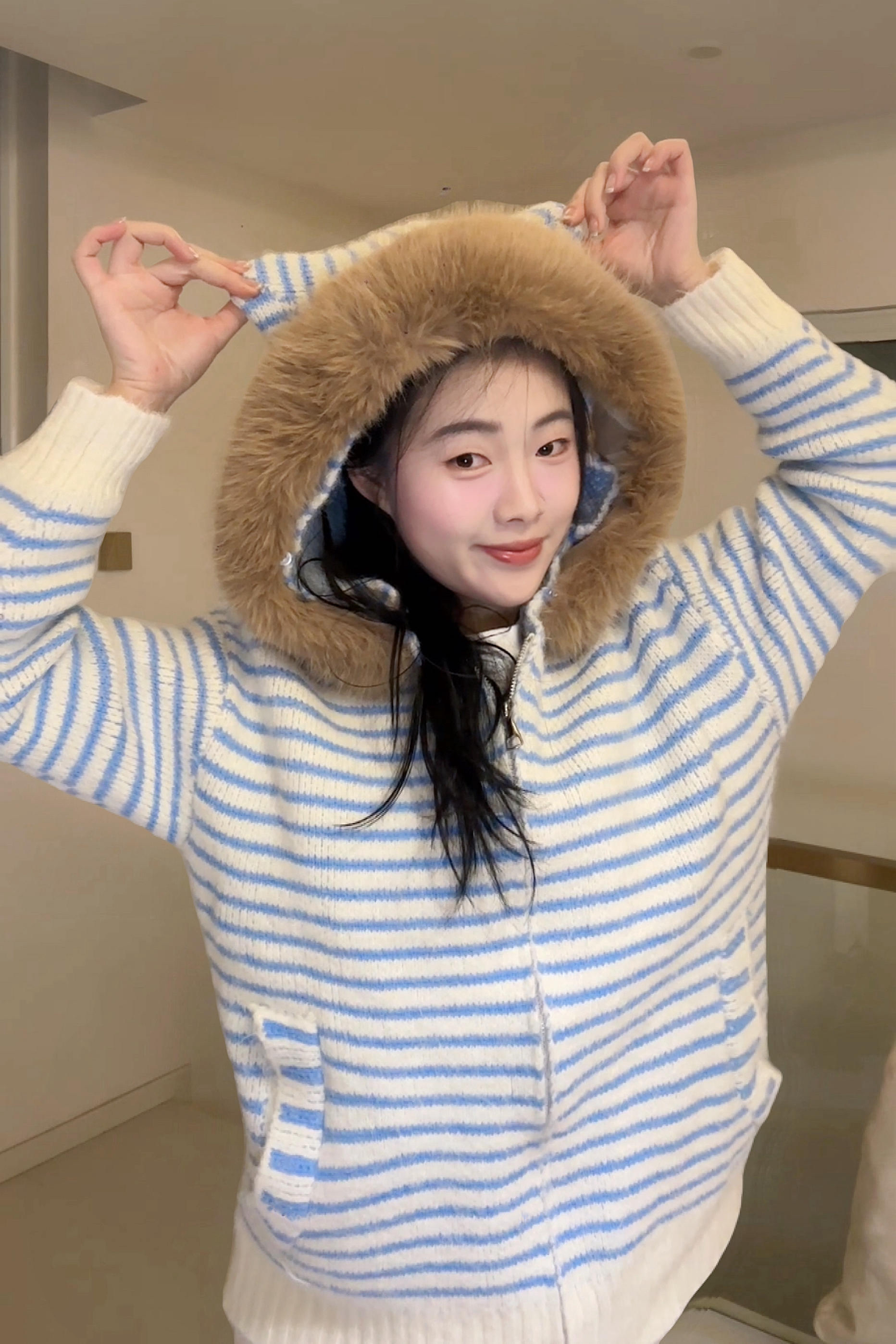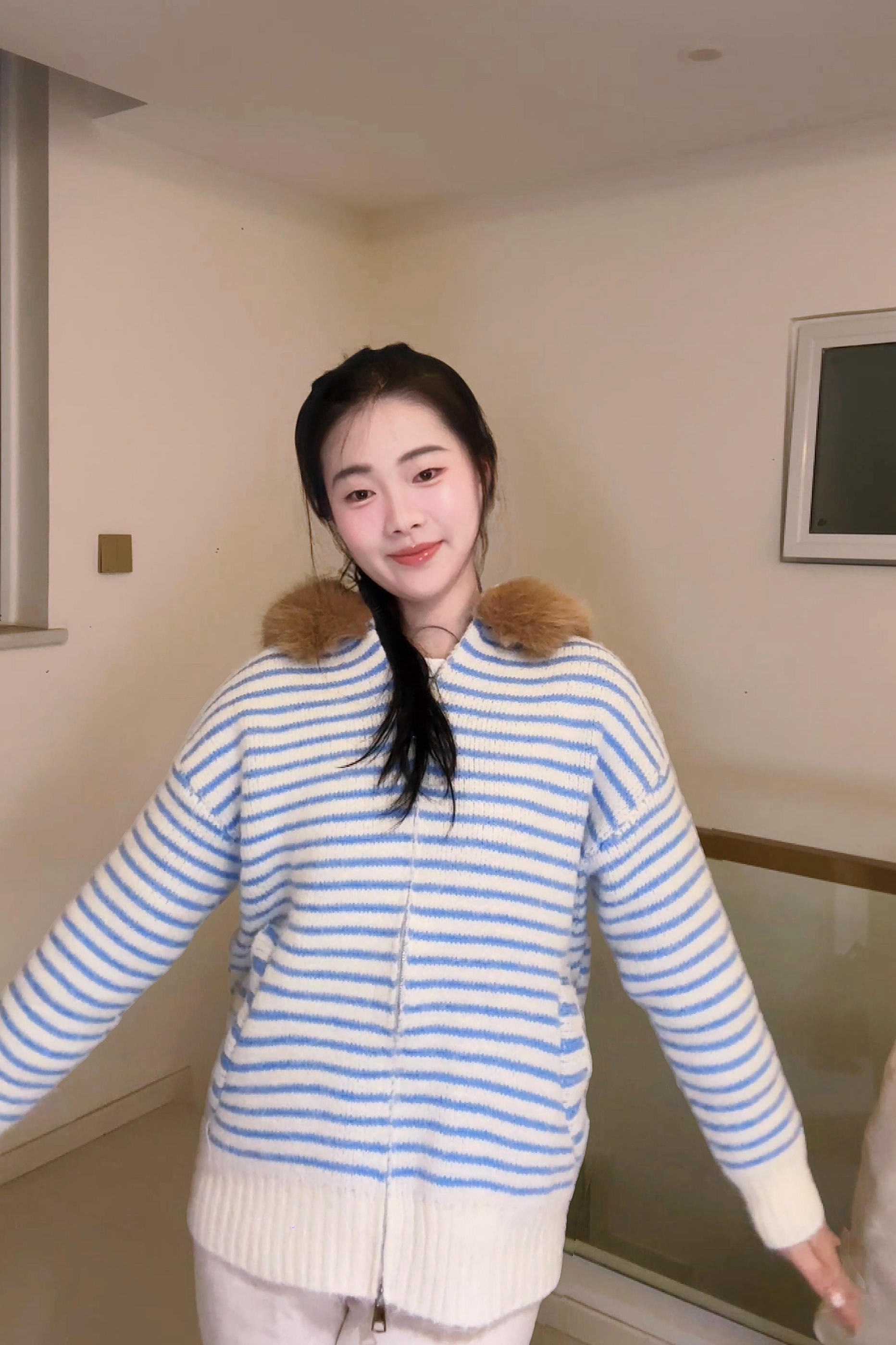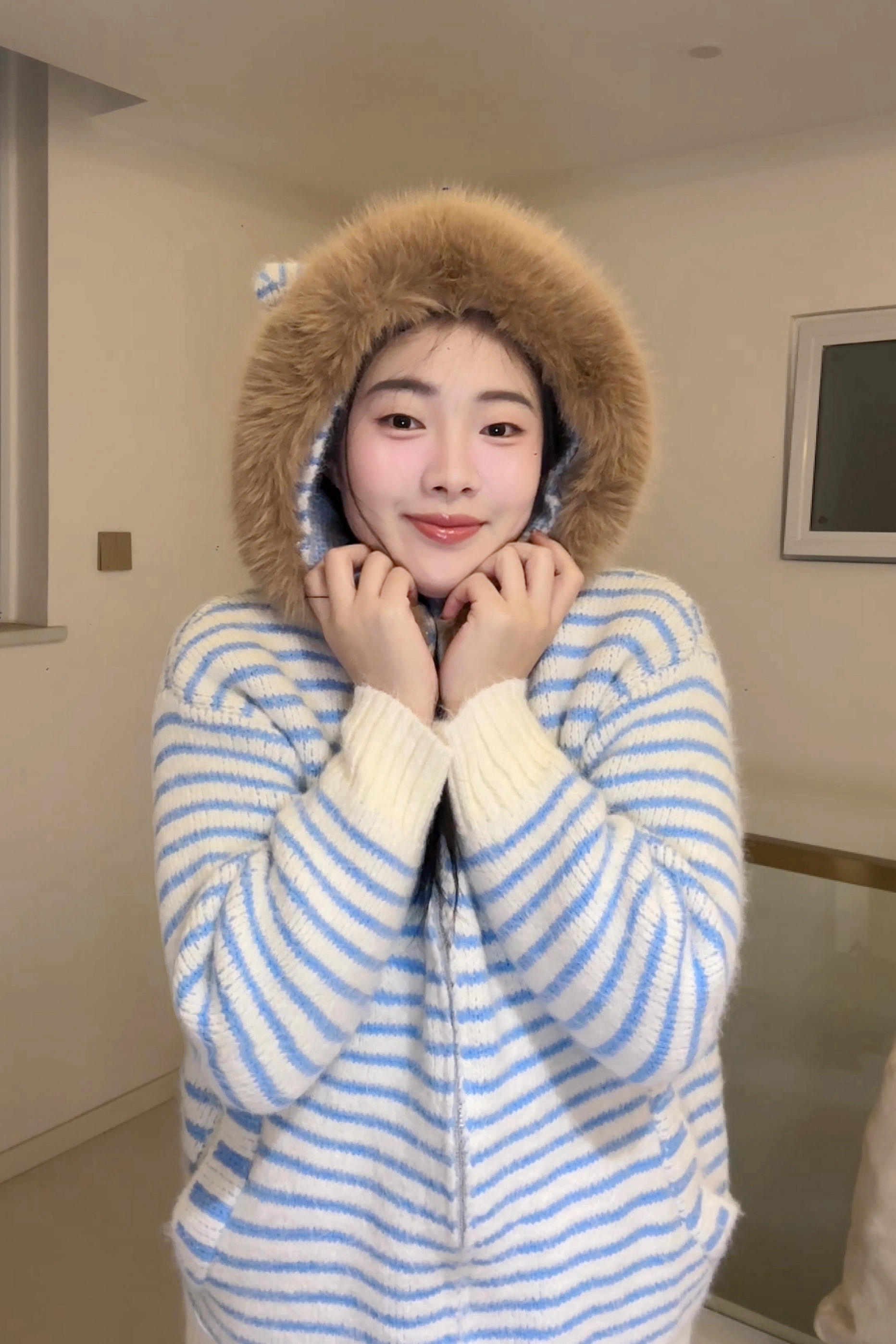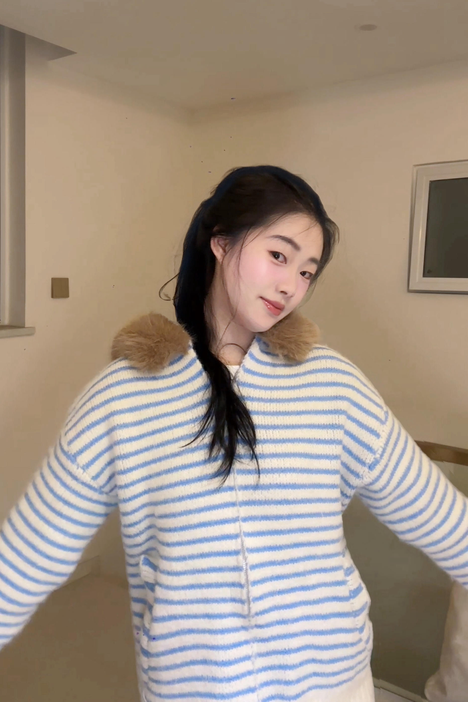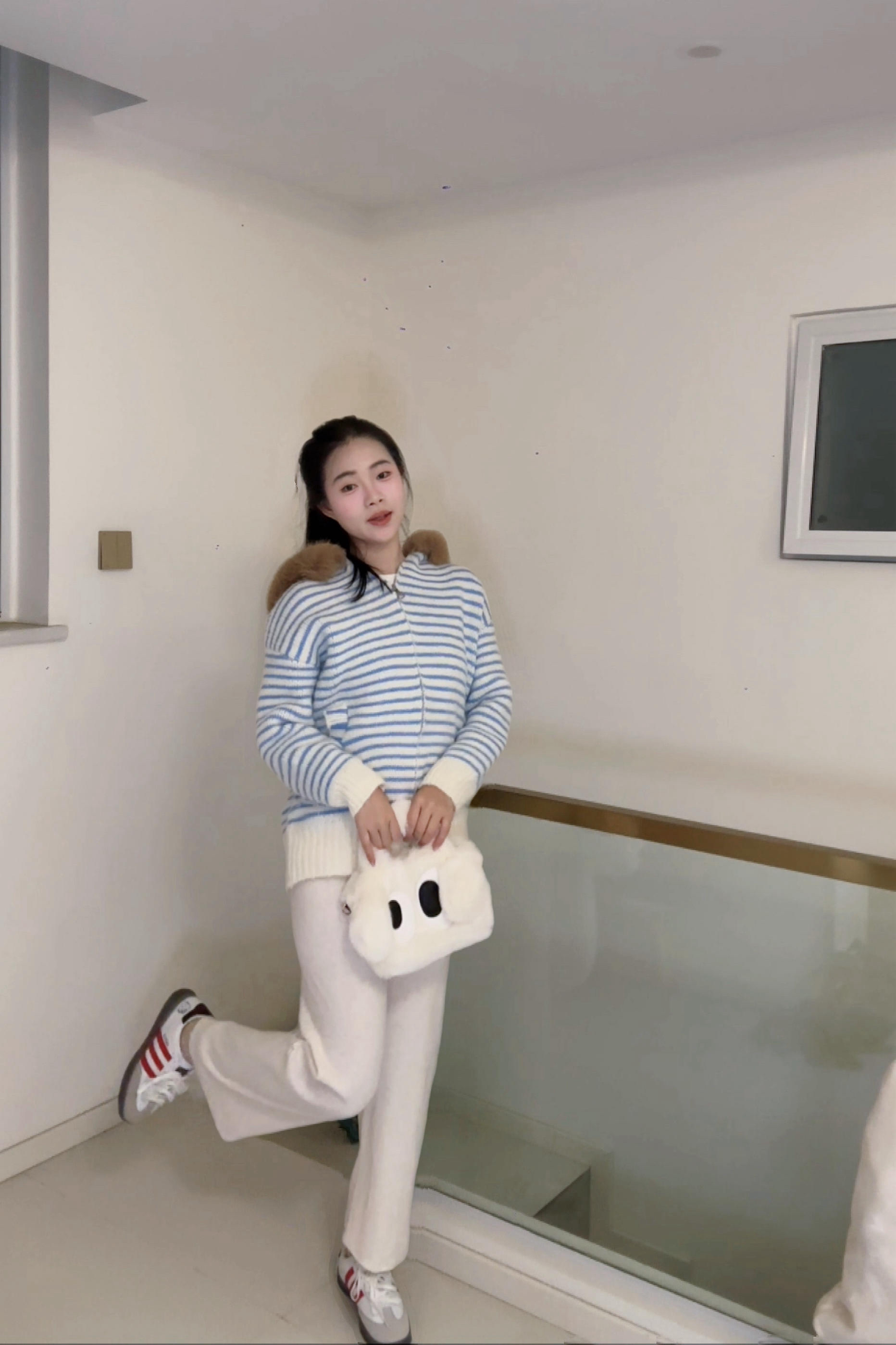 谁能拒绝粉色蝴蝶结发箍🎀啊!软fufu的少女感直接焊在头上~ 搭配浅蓝色间隔条纹毛衣🧶,清新不挑皮,自带慵懒松弛感,贴身穿舒服到不想脱☁️! 下装搭白色阔腿裤👖绝了!高腰设计显高又藏肉,走路都带风💨,整套浅色系干净治愈,春日氛围感拉满✨~ 约会、通勤、逛街全适配,拍照巨上镜,懒人直接抄作业,甜妹闭眼冲不踩雷呀💕!