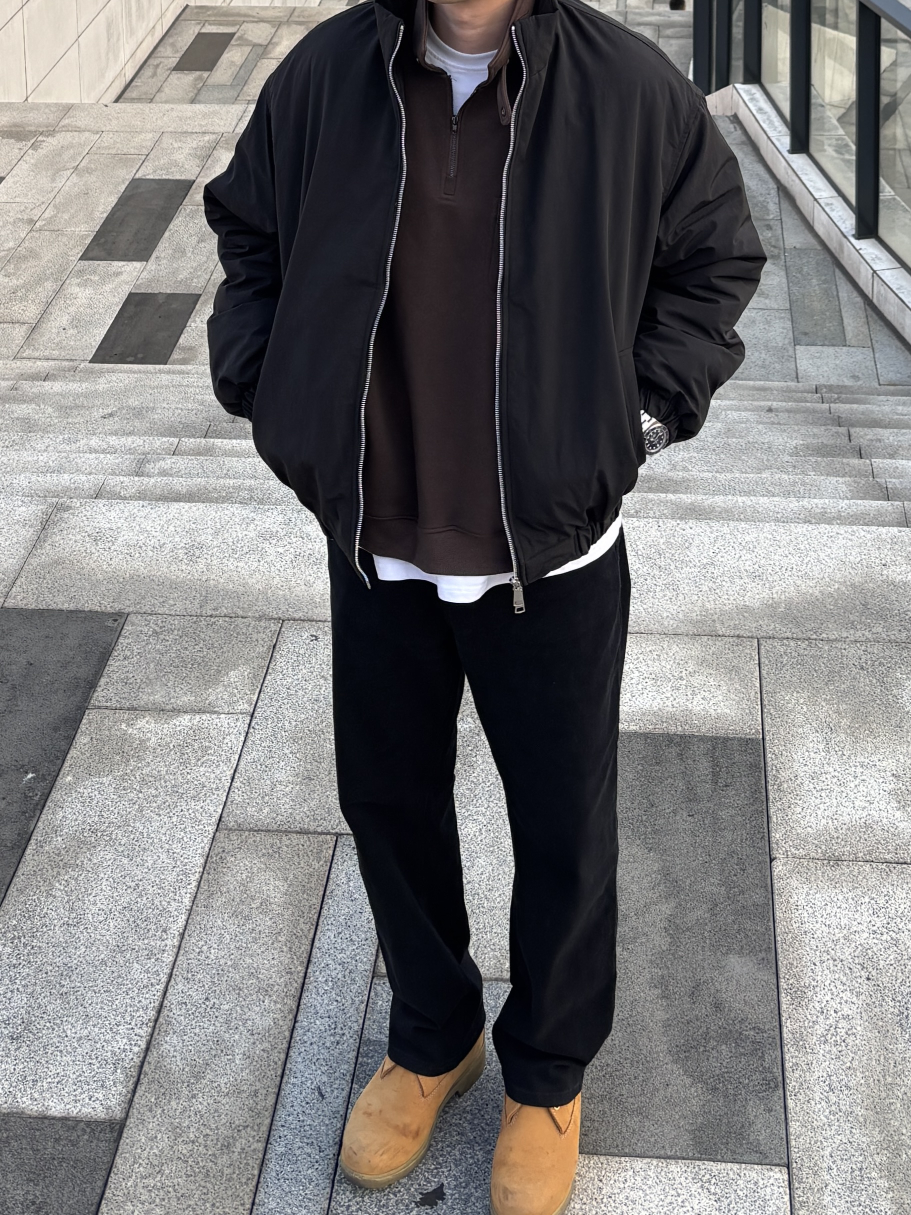 午后阳光刚好,想出去走走透透气,随手翻了几件衣服就套上了。黑色立领棉服裹着咖啡色半拉链卫衣,两层立领凑在一起,风也吹不到脖子里。配条穿惯了的黑色水洗牛仔裤,踩双复古工装靴就出门了,这种不费力的舒适搭配真的太爱了🙋♂️ - 今日穿搭 衣服裤子都来自:NICE LILI 鞋子:timberland