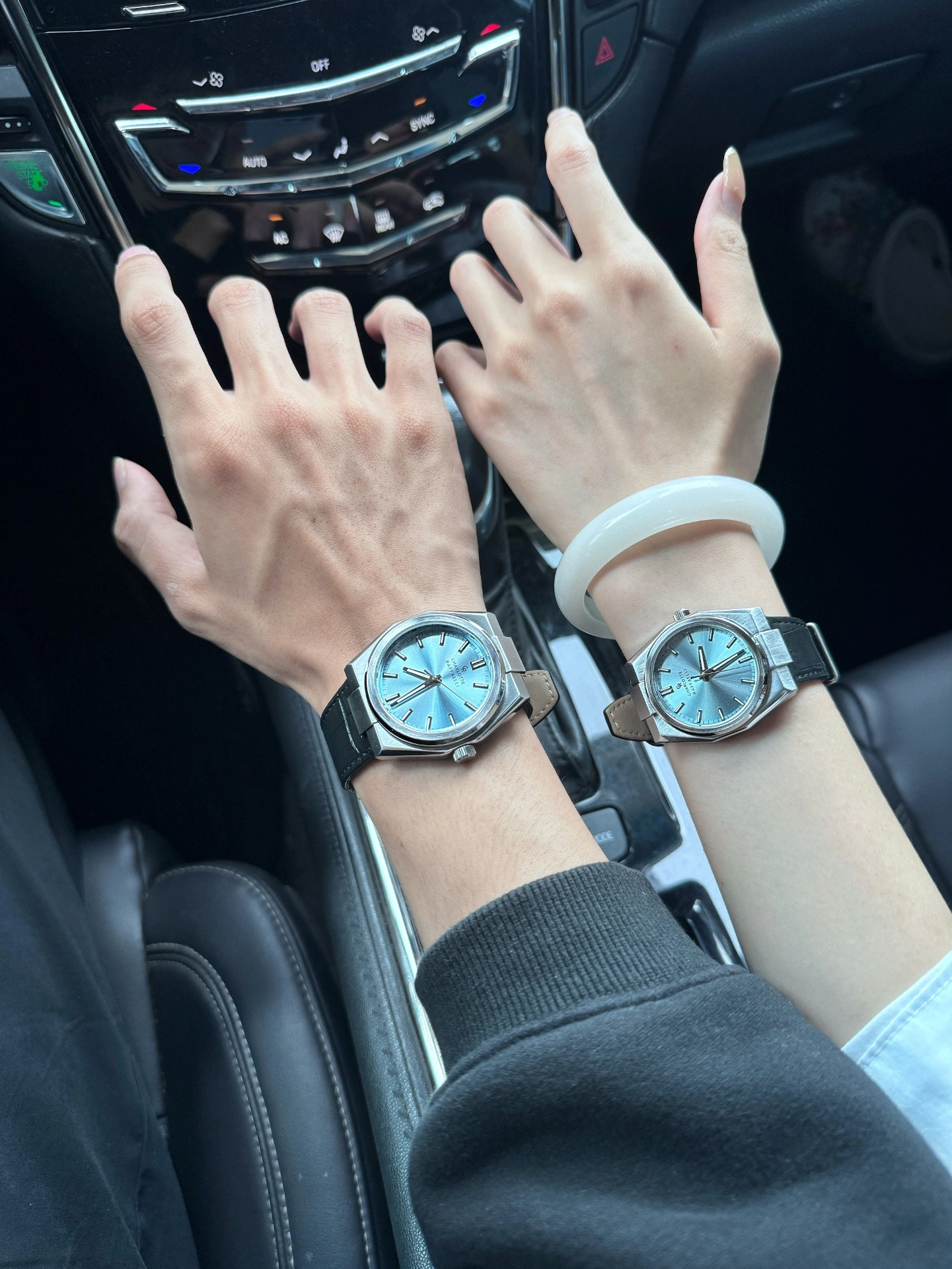 秋天真的好适合和对象出去逛呀~我和对象戴的这对CR家的表,被好多人问链接嘞😆!皮质表带摸起来质感很绝,戴久了也不会觉得勒手腕~表盘是那种蓝调,阳光打上去的时候,感觉像把大海装进去了,特高级!不过有一说一,它防水只有30米,洗手啥的还行,游泳就别戴啦~平时出街戴戴,情侣氛围感直接拉满,学生党或者年轻上班族想搞情侣配饰的可以看看呀🥰!#双11必买潮表 #爱意爆表时刻