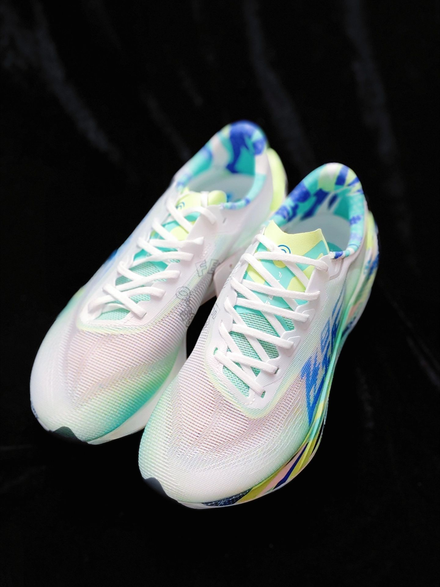 这双鞋像把夏日调色盘穿在脚上——清透网面裹着薄荷绿渐变,鞋身泼洒蓝黄撞色,内里的迷彩细节藏着小心机。轻透脚感适配通勤和轻运动,日常出街自带“降温滤镜”,清爽又吸睛。