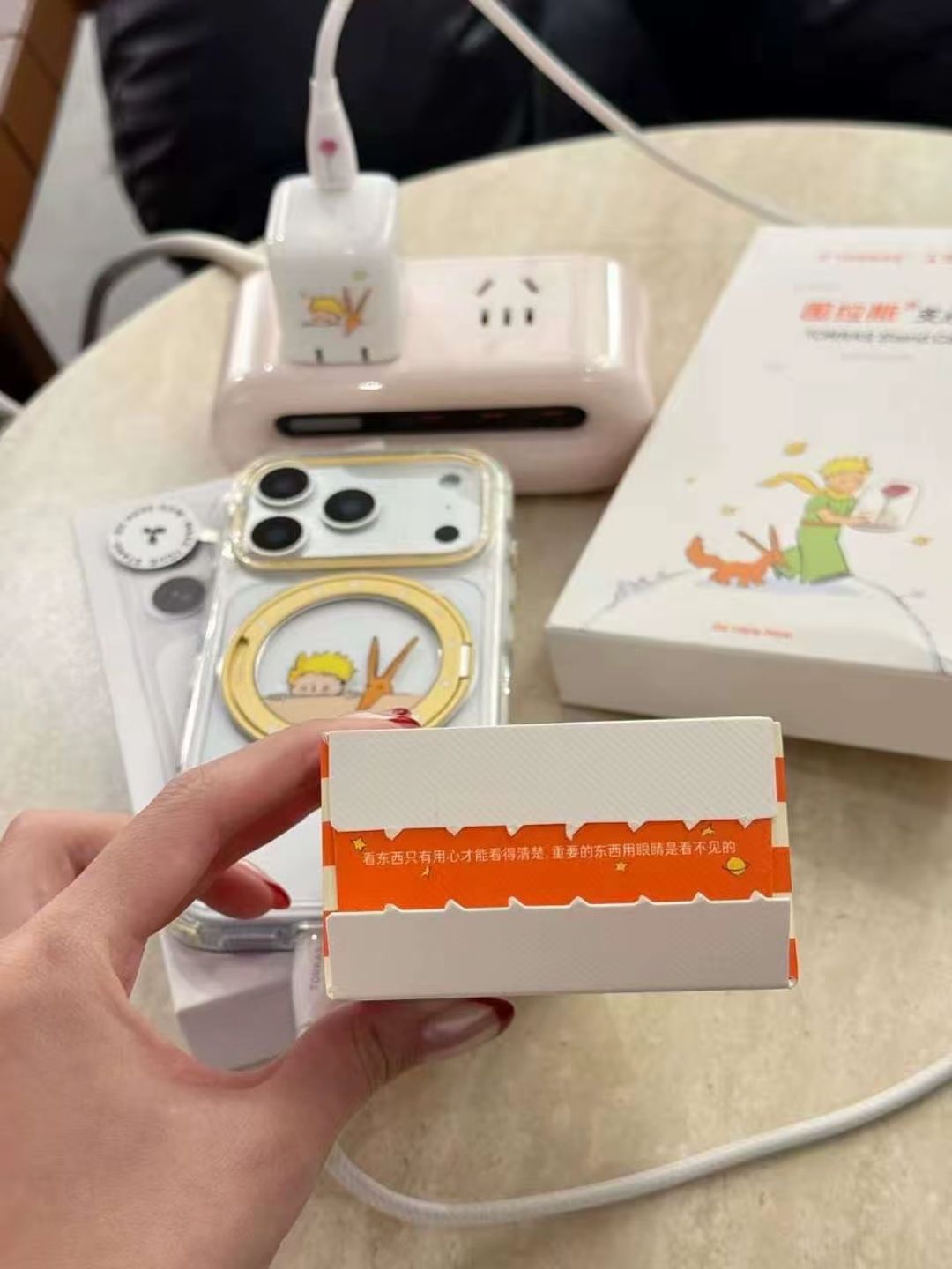 对于小王子的忠粉我来说 实在无法拒绝小王子的可可爱爱 手机充电器和手机壳可以是配套的 都用了小王子元素 很是可爱 还送了贴纸 可以自己diy