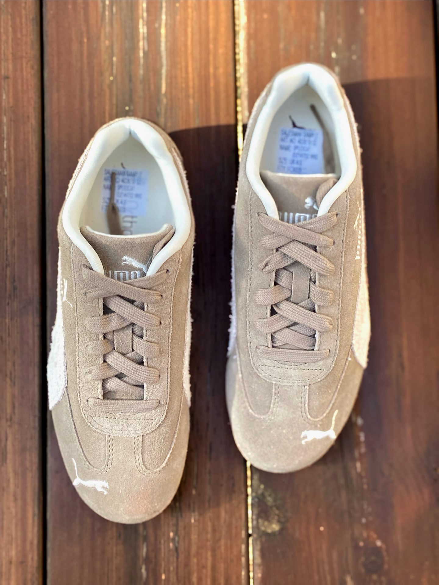 双 11 总觉得差双鞋?这双 PUMA 赛车鞋我先锁死了 !鞋面采用浅棕色麂皮材质,柔软贴合脚部,上脚瞬间就能感受到它的舒适性——鞋底设计轻盈耐磨,走一天都不累脚,特别适合日常通勤或休闲出行。 经典赛车鞋版型复古又有范儿,搭牛仔裤、阔腿裤都贼出片,随便一穿就有那种随性的复古感。而且这种经典款我觉得不管啥时候穿都不过时,无论是日常出街还是城市通勤,这双鞋都能提升整体造型的质感。对了,另外还有一副鞋...