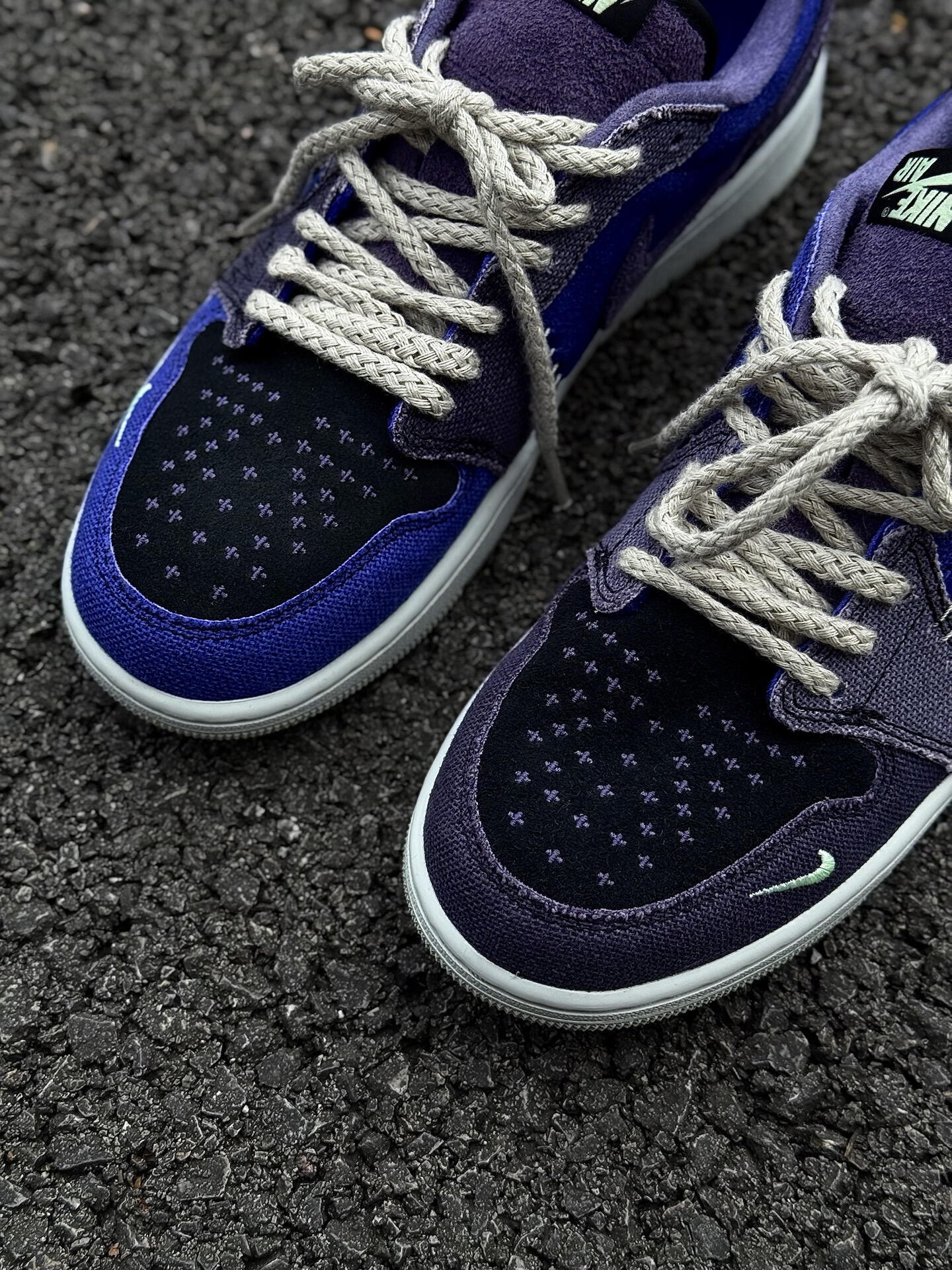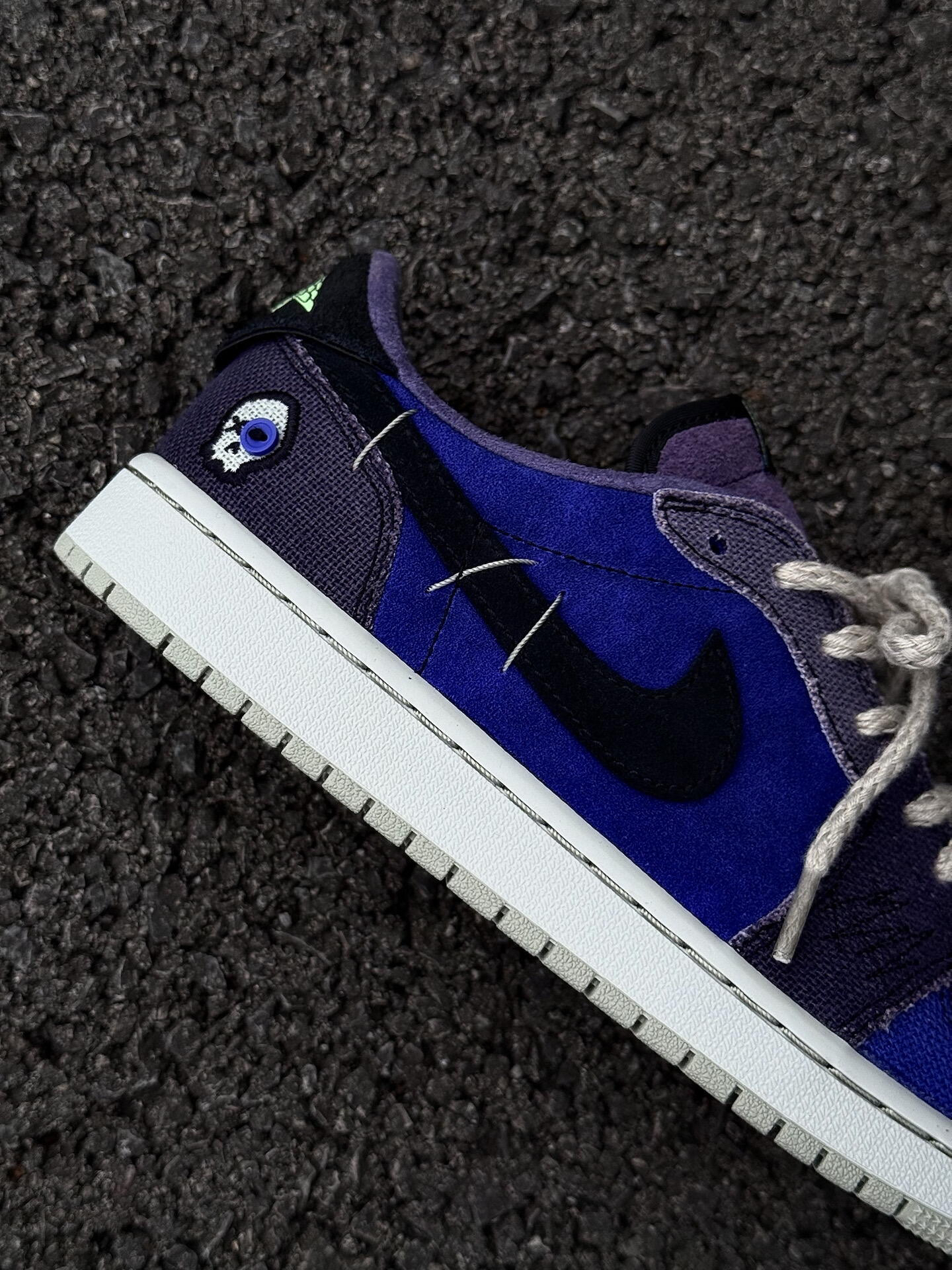 低头看见这双鞋的瞬间就被戳中——不是单调的深蓝,是像深夜路灯下的渐变蓝调,从深紫蓝过渡到亮钴蓝,混着墨黑勾边和淡绿小标,像把城市夜晚的松弛氛围揉进了鞋里,低调但每处细节都藏着“我的风格”。 👉 它直接治好了“个性鞋的通病” 总愁“深色鞋显闷、个性鞋难搭”?这双刚好卡在「酷感+适配」的点上: • 细节buff:麂皮+帆布的拼接质感,比纯皮款更有街头松弛感;渐变蓝调自带“层次感滤镜”,不会像全黑...