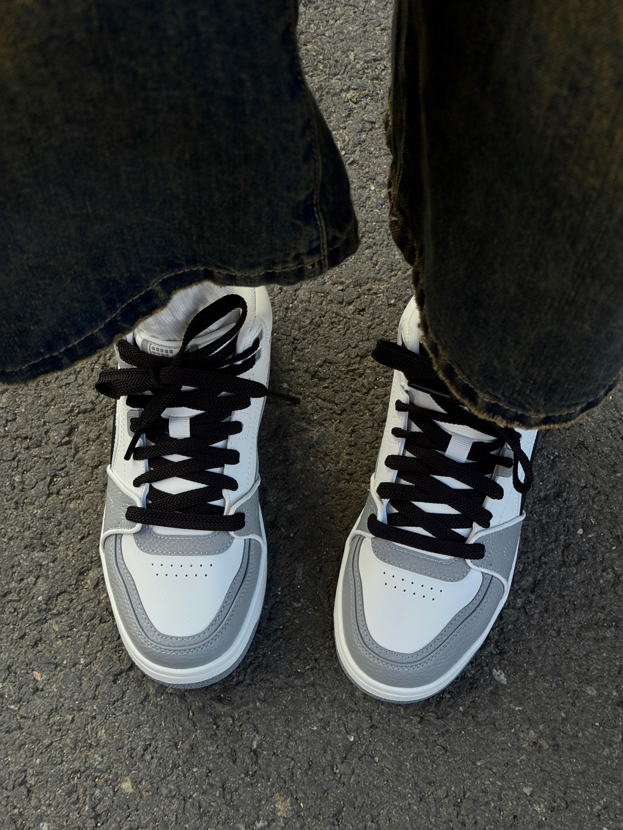 低头看见这双鞋的瞬间就被戳中——不是单调的白灰款,是像把阴天里的云(白)、浅雾(灰)和街灯的影(黑)揉在一起,软皮拼哑光灰的质感,配根跳脱的黑鞋带,像把“不用费脑的舒服”写在了鞋上。 👉 它直接治好了“日常鞋的通病” 总愁“小白鞋易脏、素色鞋没亮点”?这双刚好卡在「耐造+有细节」的点上: • 细节buff:哑光灰拼接比光面白耐脏,轻微蹭灰不会显邋遢;黑鞋带是“点睛的跳脱”,不用换鞋就能换风格...