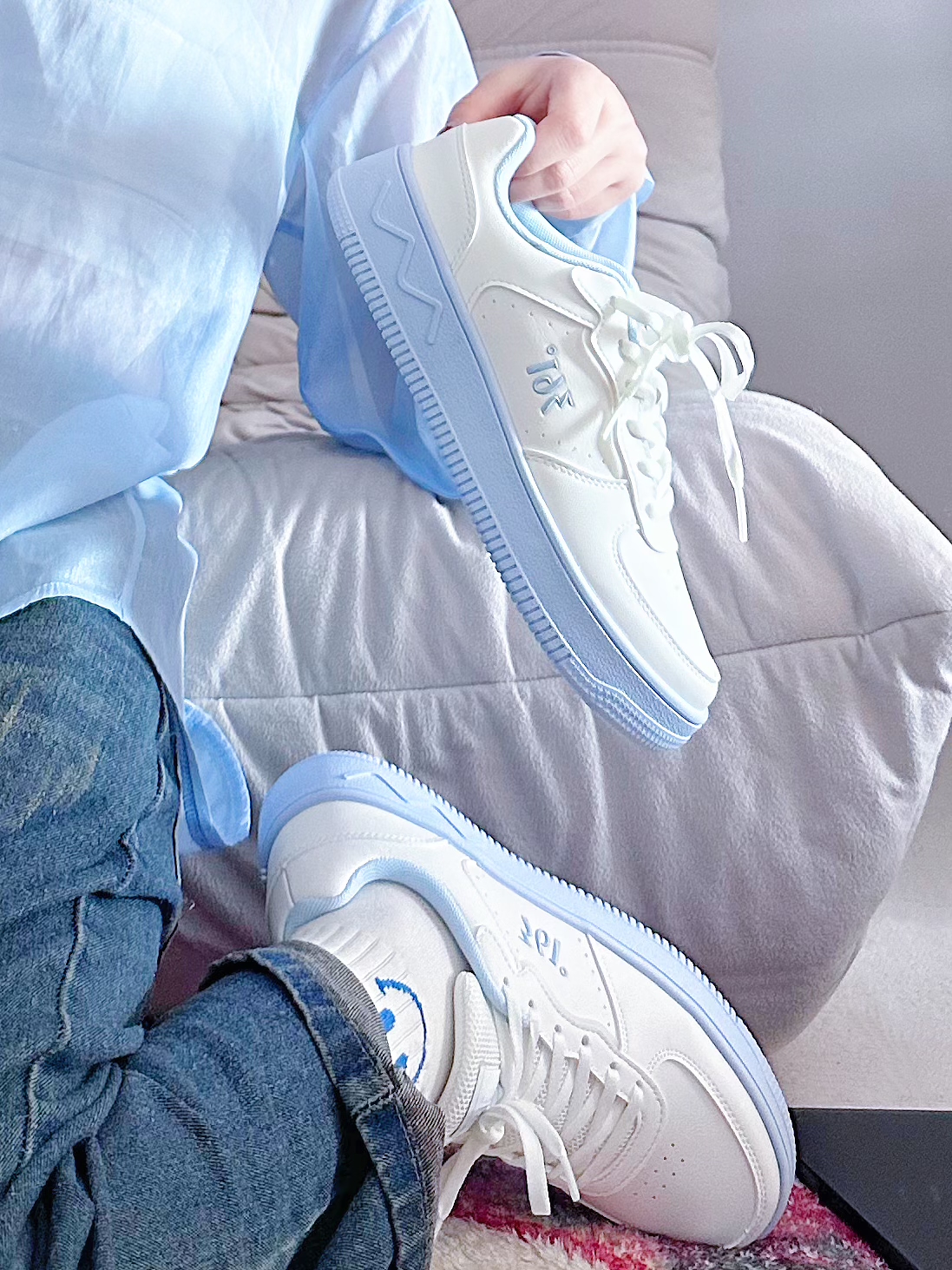 我终于选到梦中情鞋啦💕 白色鞋面搭配梦幻蓝的中底💯 这配色应该给设计师加个鸡腿 不仅有学院风还带着一丝仙气✨ 给人很清爽的感觉🌱 轻型鞋底,走路灰常轻盈✔️ 而且鞋底软弹,一点都不板脚 日常随意搭配,走在街上咱就是吸睛👀 #361度休闲鞋 #总觉得双十一差双鞋 #交出你的鞋靴链接 #秋冬穿回舒适区 #秋天氛围感球鞋