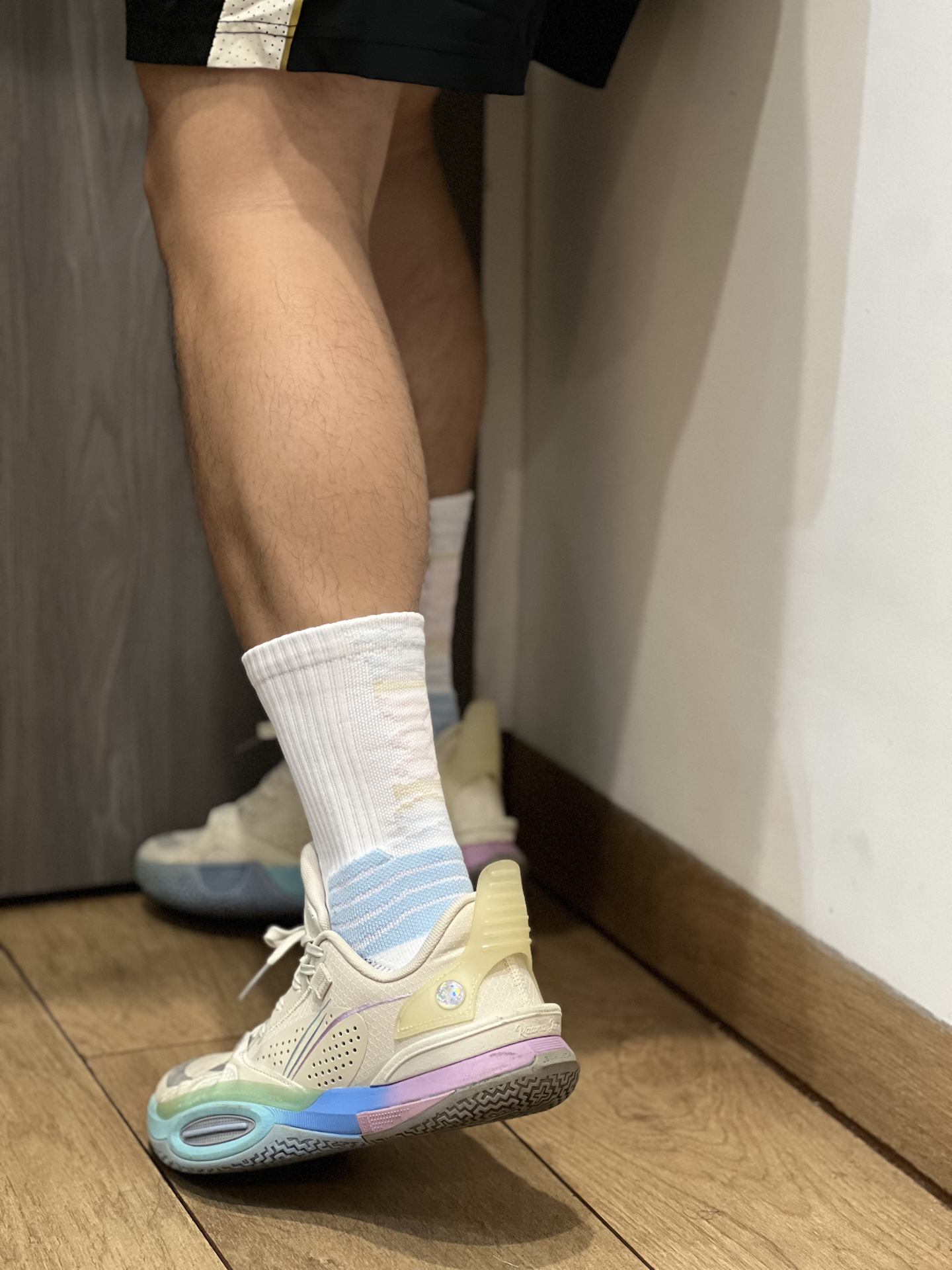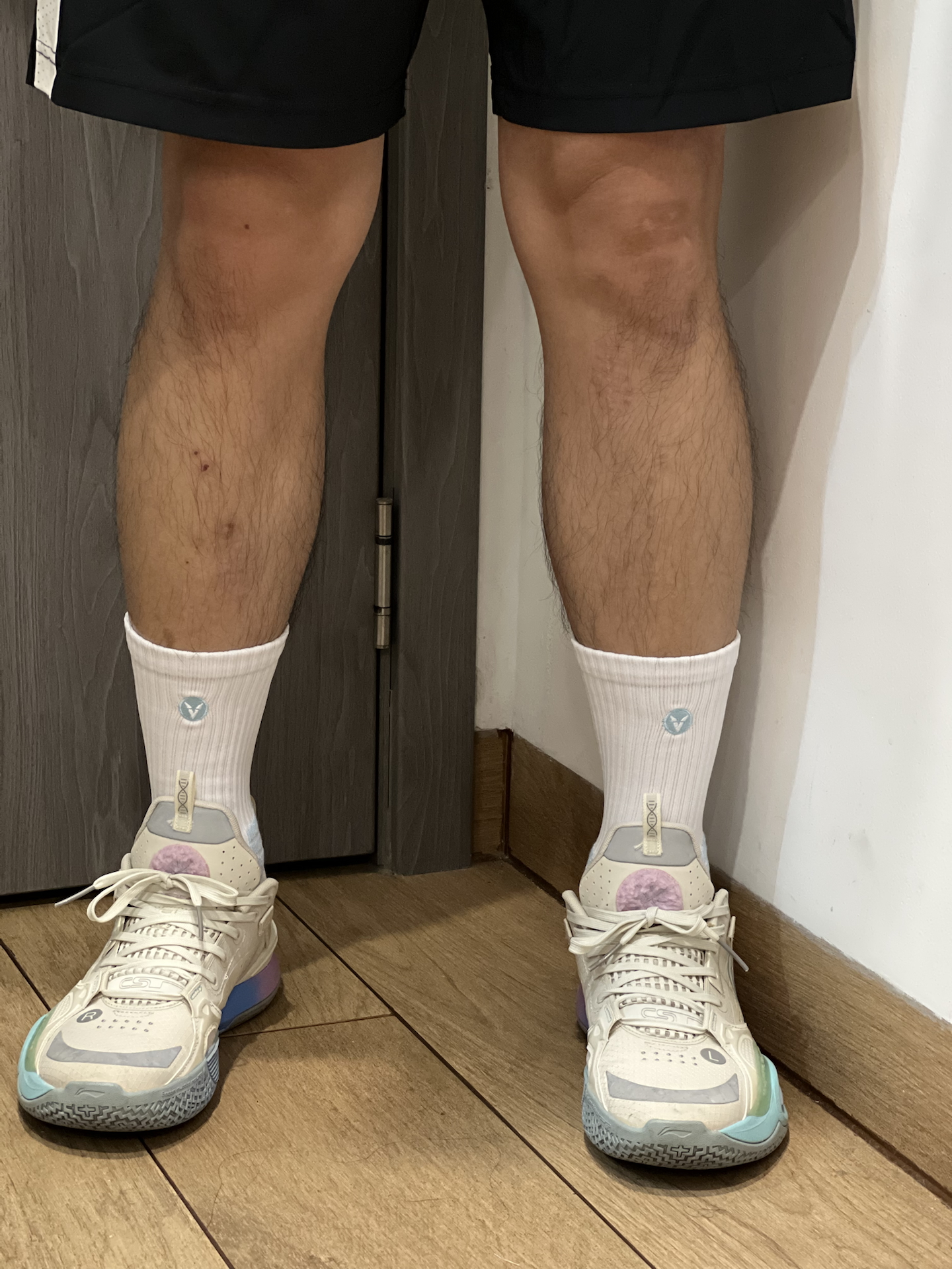 今日份Garram罗的实战球袜分享 上脚来自 #维动 VEIDOORN 星河系列球袜 球袜后跟处的图案设计我真的是爱了[吃瓜_blue] 舒适的面料给到我脚踝舒适的包裹[强_blue] 搭配一双全城10 棉花糖配色 真的很搭有没有[得意_blue] 你们这双球袜搭什么鞋子呢[捂脸_blue] #维动星河篮球袜 #高颜值实战篮球袜 #维动篮球袜 #篮球运动袜子分享体育生白袜 #体育生篮球袜推荐