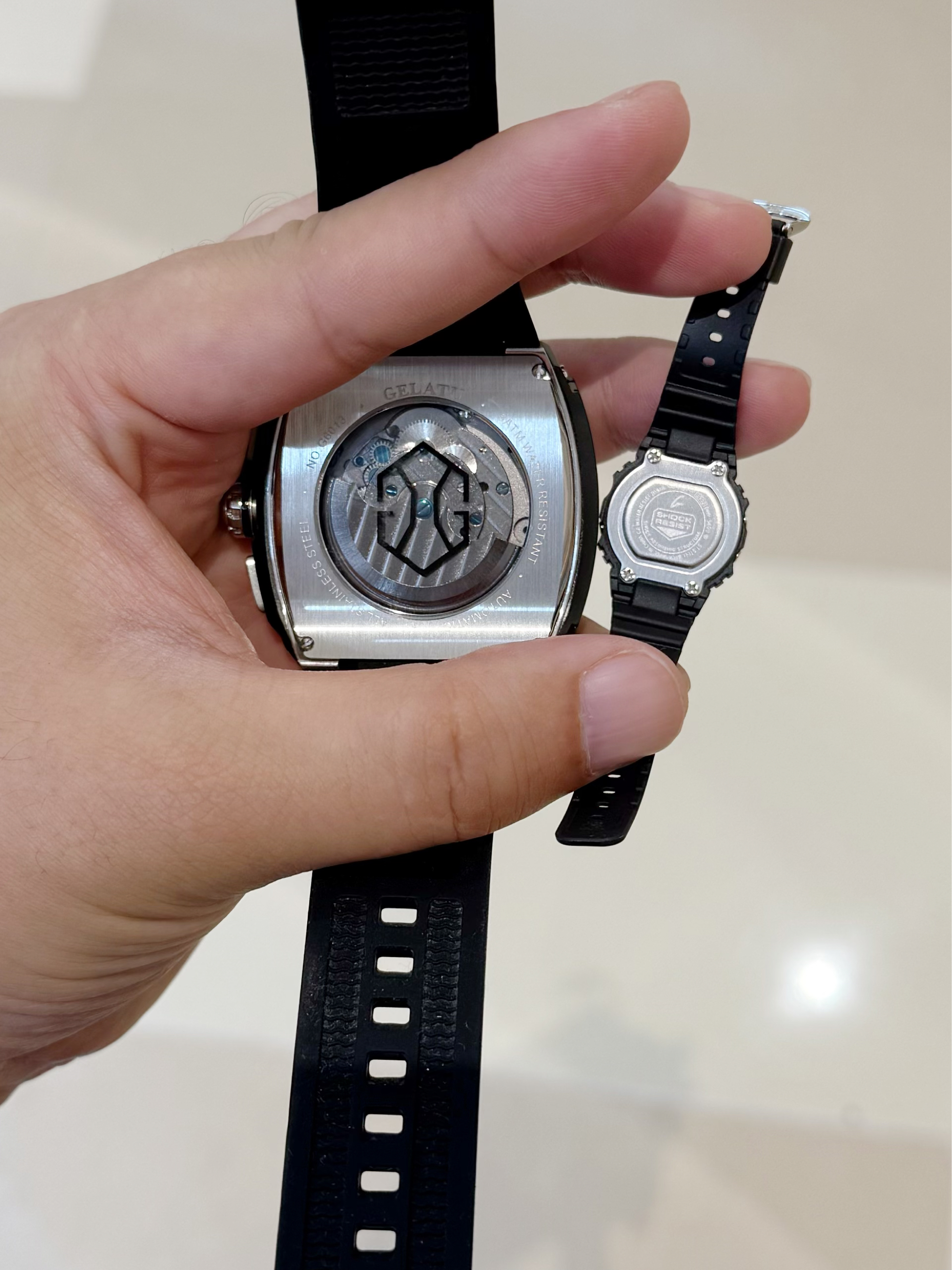 本篇笔记关联了GELATU/格拉图 时尚防水夜光全自动机械男士手表 黑胶银黑、Casio/卡西欧 5600系列 树脂表带200米防水时尚石英男女同款手表 黑灰色 DWN-5600-1等商品,为用户提供真实的使用体验和购买参考。