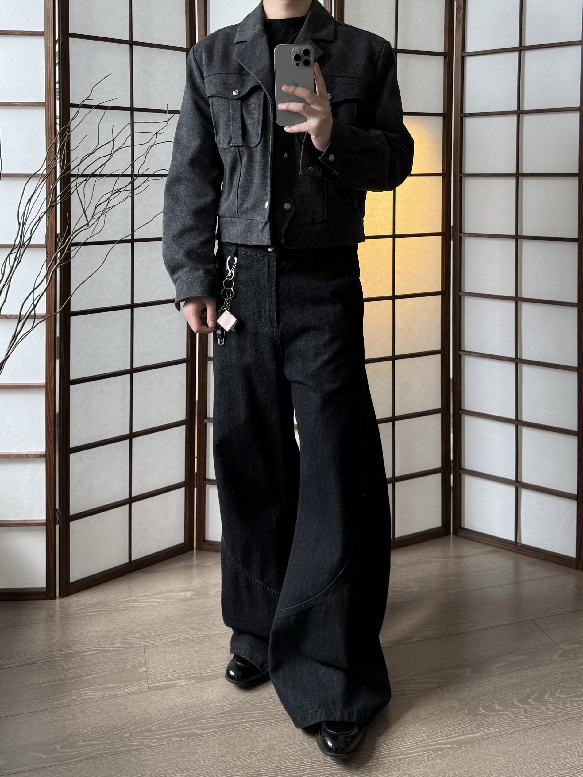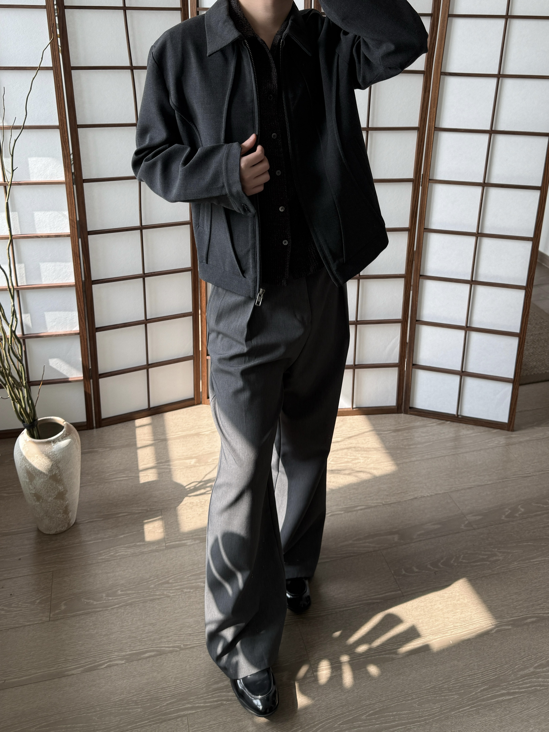 身高|体重:175/135 🧍♂️ 穿搭风格:简单 👔 上衣:hob 夹克 👖 下装:tornareinauge A字西裤 👟 鞋子:漆皮鞋