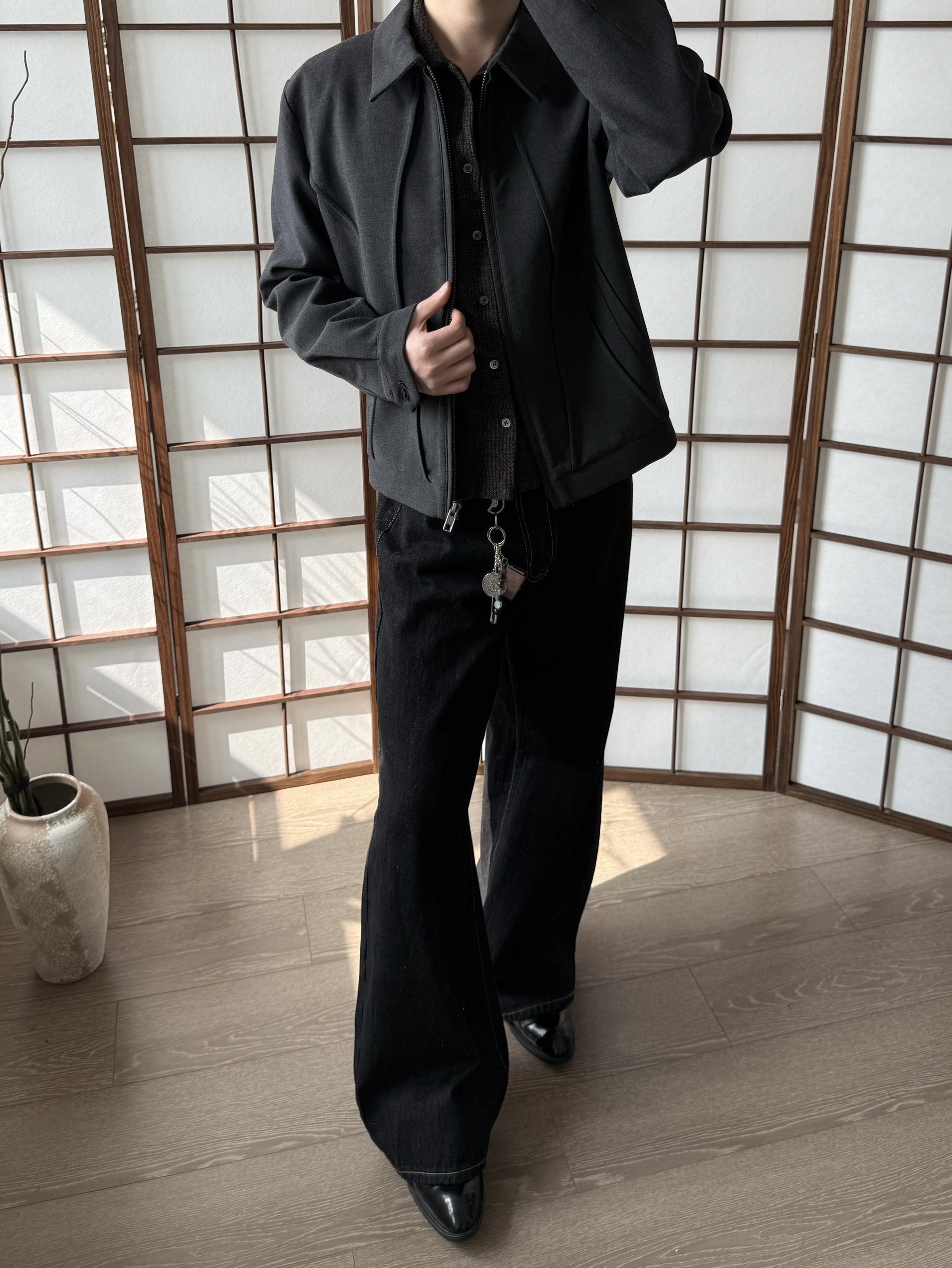 身高|体重:175/135 🧍♂️ 穿搭风格:简单 👔 上衣:解构夹克 👖 下装:tornareinauge a 字原牛 👟 鞋子:漆皮鞋
