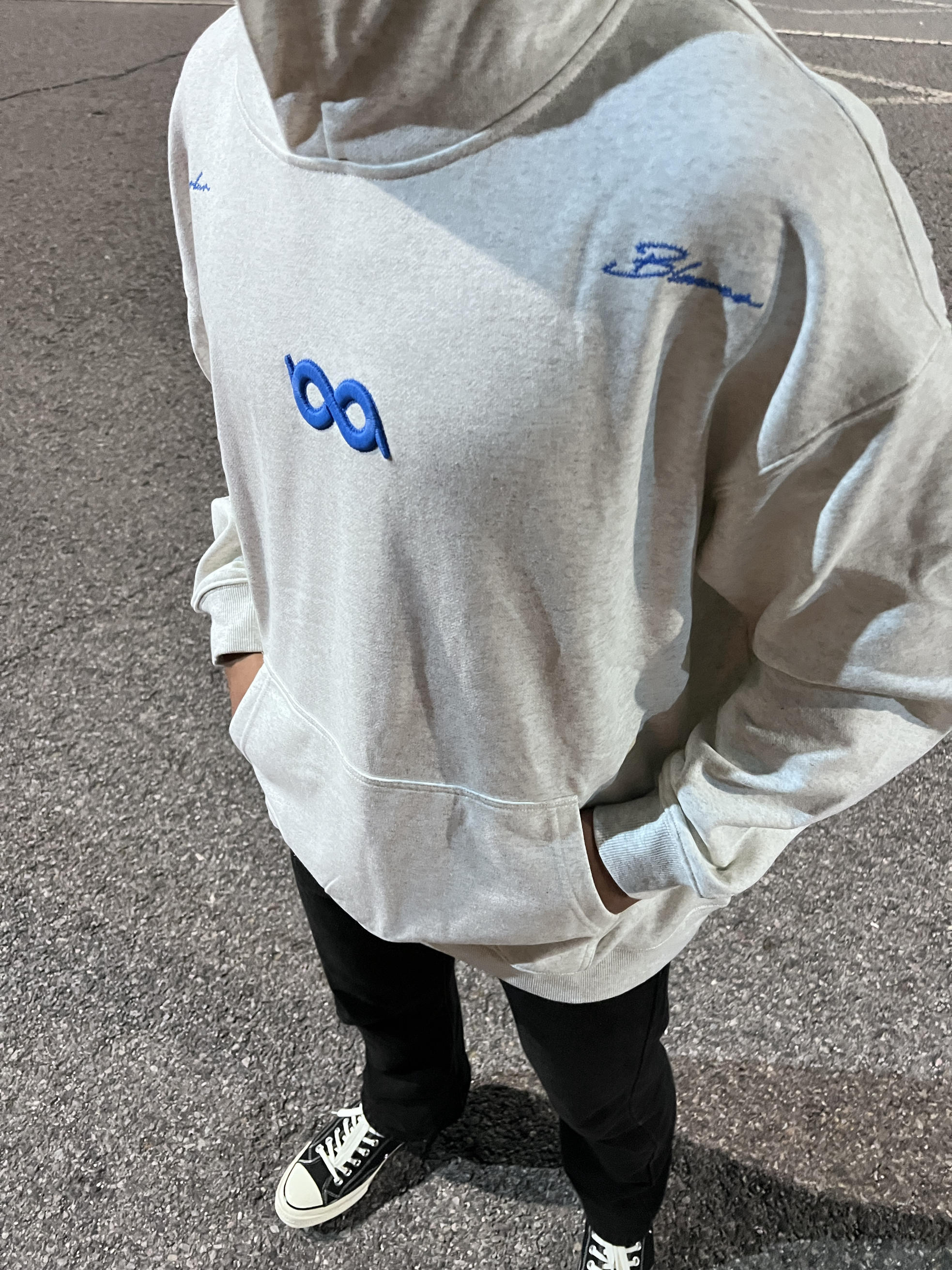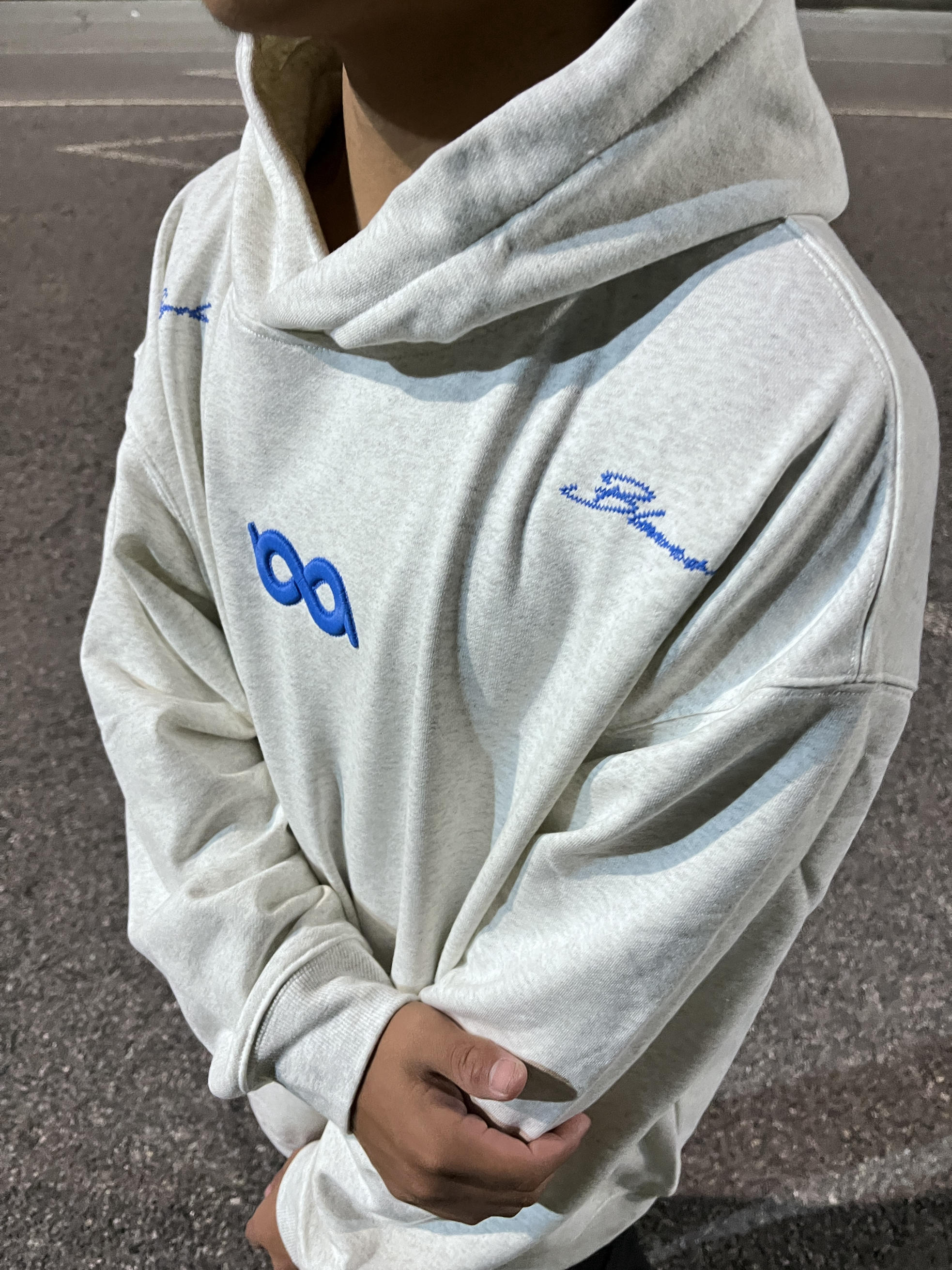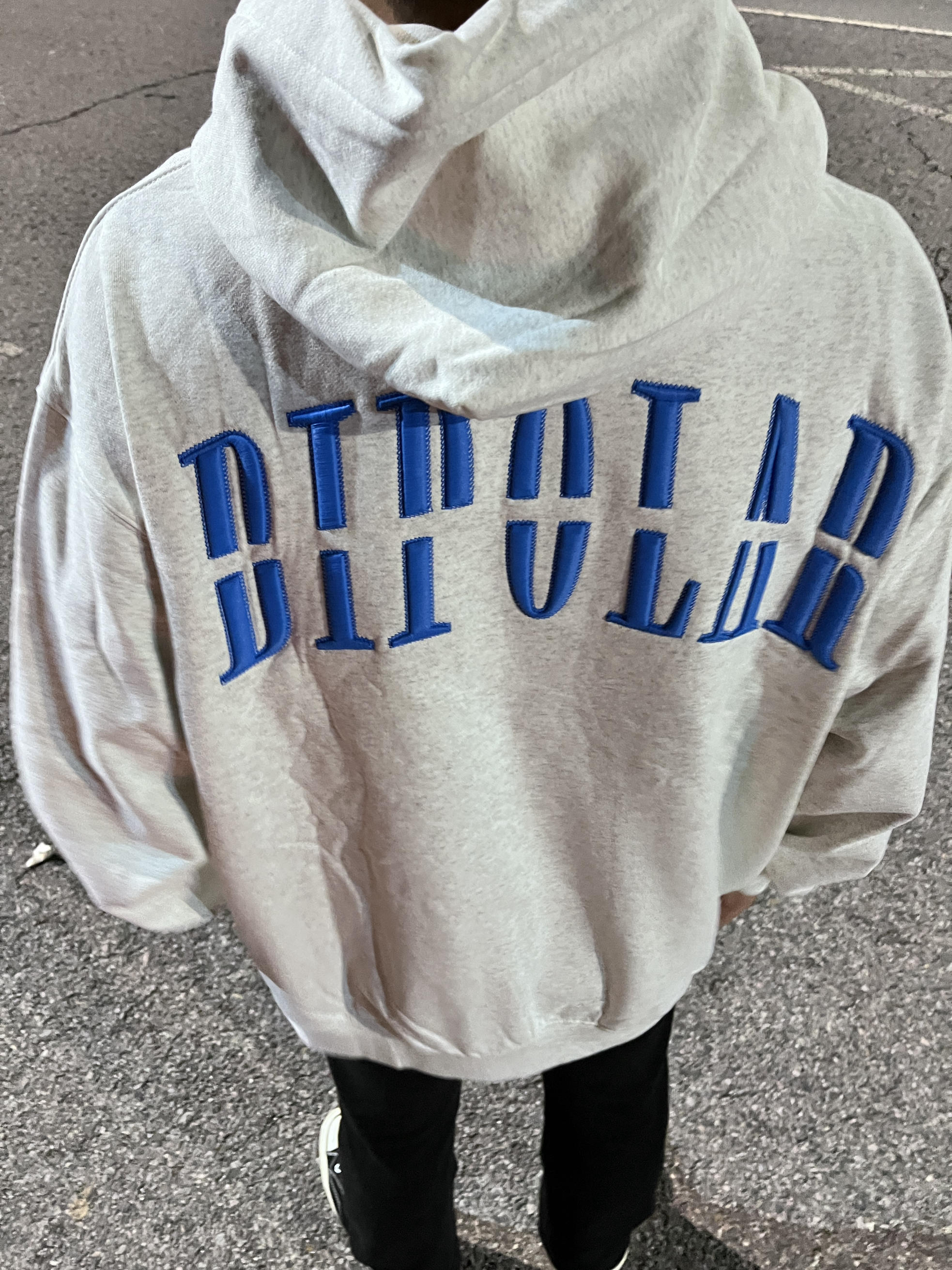 这款 BIPOLAR 断开字🪡logo无限循环卫衣 灰色搭配蓝色的刺绣走在路上不会太撞衫 显白效果简直无敌,穿上它,瞬间提升肤色 后背的乱针断开字绣花设计超吸睛走在街上回头率200%还纯棉面料超级舒服宽松版是宽松显瘦 男女都可穿,可做情侣装闺蜜装 @识货穿搭君