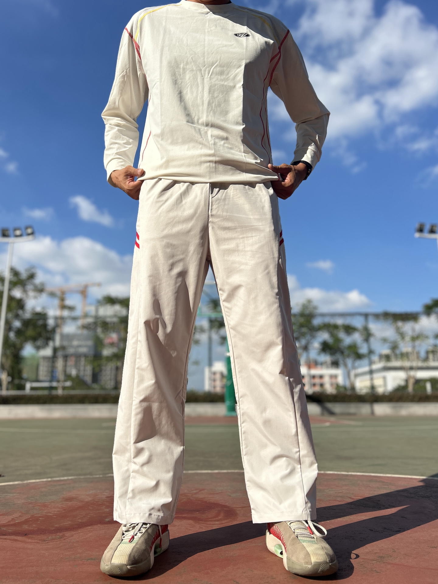 hi~是18啊! 秋日的午后室外球场依然暴晒, #维动 VEIDOORN 这条梭织裤居然不闷。 面料薄薄的,跑跳突破时没有卡顿感, 直筒阔腿版型做动作很舒展。 打一下午汗透了也不粘腿,风一吹很快就干。 复古条纹简约不花哨, 打完球直接换件T恤去吃夜宵, 百搭又舒服,实战穿着是真省心。 我186/82,选择XL码~ @维动穿搭助手 #维动VEIDOORN #篮球热力追踪 #新赛季听我说 #元...