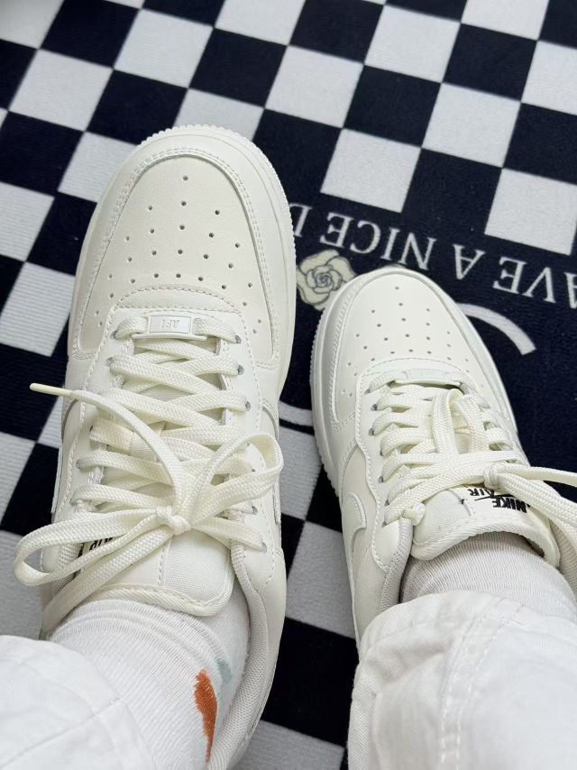 穿这双奶白空军满两周,算摸清它的“脾气”了:脚感是真给面儿,软乎乎裹着脚,通勤挤地铁站一天,踩下去也不硌得慌,光这点就让我愿意天天蹬它出门👟 但它是真“矫情”——上周喝奶茶撒了半口在鞋头,纸巾擦完留了圈浅印子,后来拿清洗剂搓了半天才淡下去,现在那小块总有点发灰😅 还有鞋边那层皮,上周蹭到楼梯角,直接添了道细划痕,越看越显眼。 可架不住它好搭啊,白T牛仔往身上一套,随便踩上就挺清爽。就是现在...
