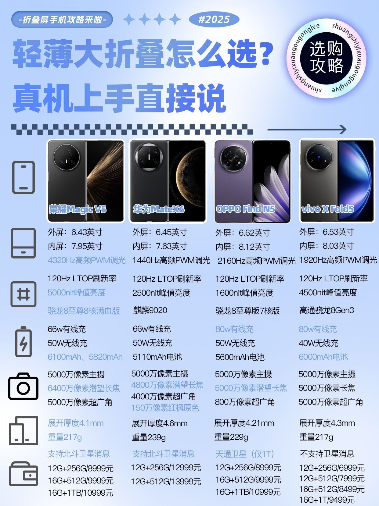华为Mate70 Air上手体验轻薄,重208克、厚6.6毫米,配备7英寸曲面悬浮屏,视觉效果出色,搭载鸿蒙系统运行流畅,提供9020A和9020B两款处理器选择,前者性能更强,后者日常使用足够,后置5000万+1200万+800万三摄,支持3倍无损变焦和30倍数码变焦,内置6500毫安电池,支持66瓦快充,具备北斗卫星短信功能,性价比超高。