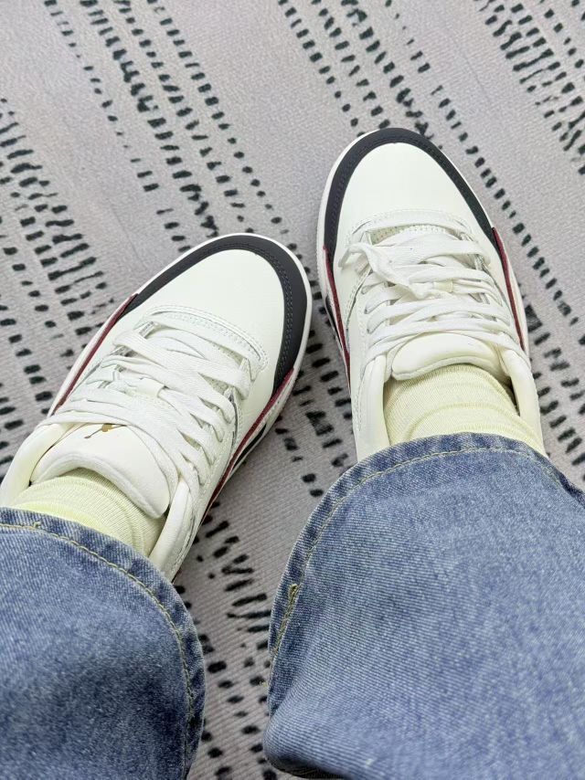 这双鞋上脚一周,先讲实穿感:鞋型偏窄,脚宽的朋友刚穿前两次会有点挤脚面👀,得穿薄袜或者多踩几天才会松快些。 但脚感是真的舒服,鞋底软度刚好,日常走个万把步不会累,不像有的板鞋底硬得硌脚。米白配色搭牛仔、运动裤都不违和,鞋身的暗红线条不会太跳,低调里带点细节。 皮质摸着手感软,就是容易沾灰,穿一天鞋边会蹭点小脏印,得勤擦。鞋舌不压脚背,鞋带不用系太紧也跟脚,这点对我这种不爱系鞋带的还挺友好~...