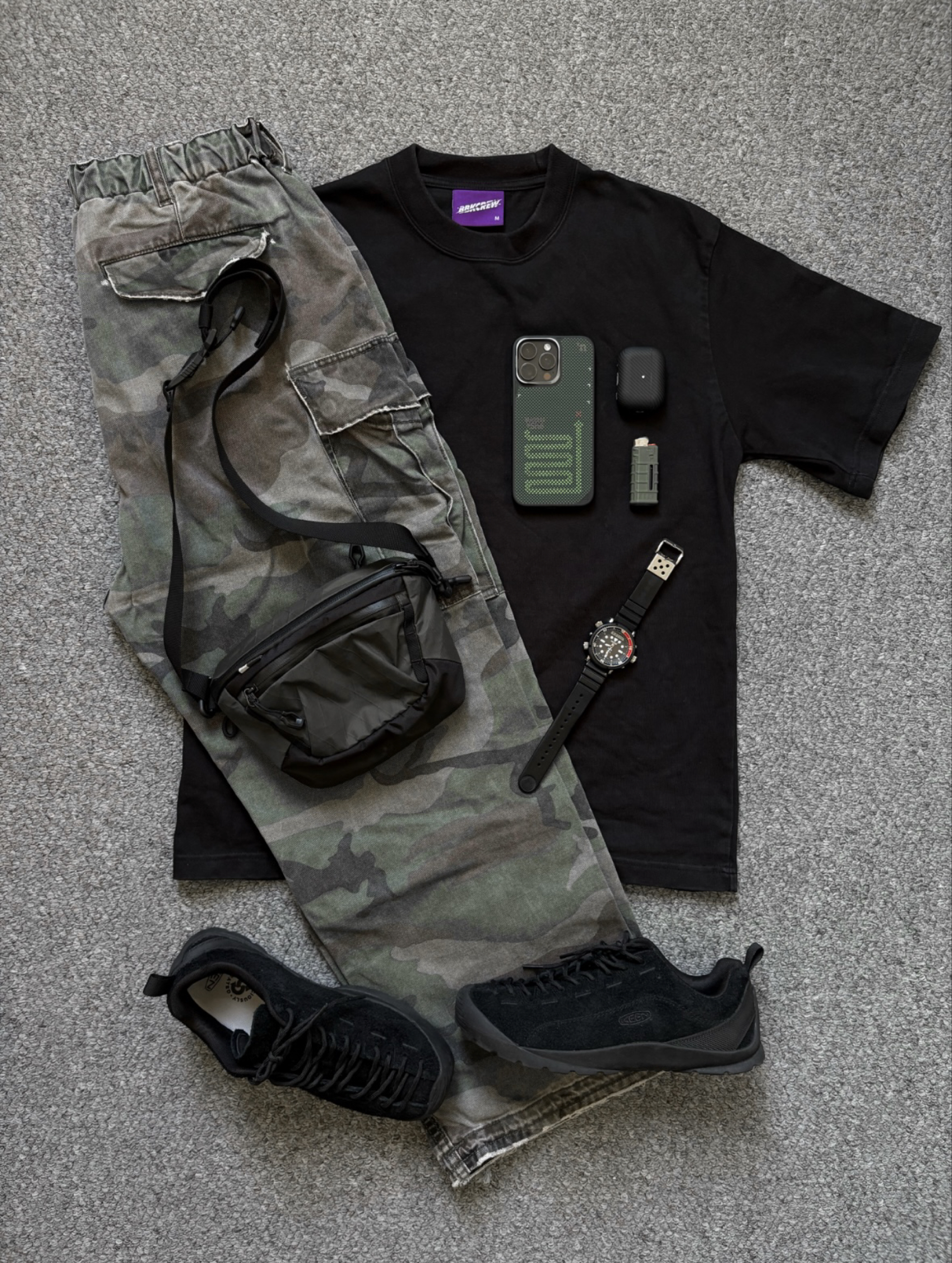 Every Day Carry, What's in my bag? 记录工作日出门的随身EDC状态 - - 1️⃣穿搭日常记录」 💼 Fe工装斜挎包 👖 日系迷彩工装裤 👕 BBK纯色T恤 👟 KEEN劳保鞋 ⌚seiko/罐头手表 💍sidereal/裂缝戒指 - 我的包里有什么👇 2️⃣「EDC数码日常」 ◼iPhone15PM+赤碧壳 ◼iPhone12+ 瓦楞壳 ◼AirPods P...