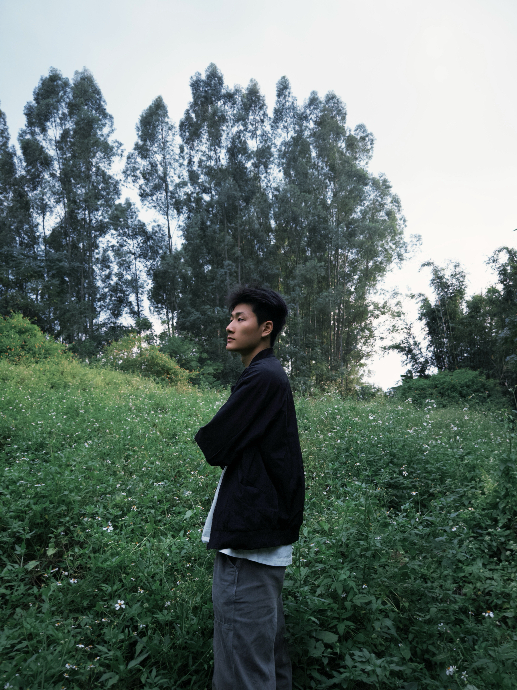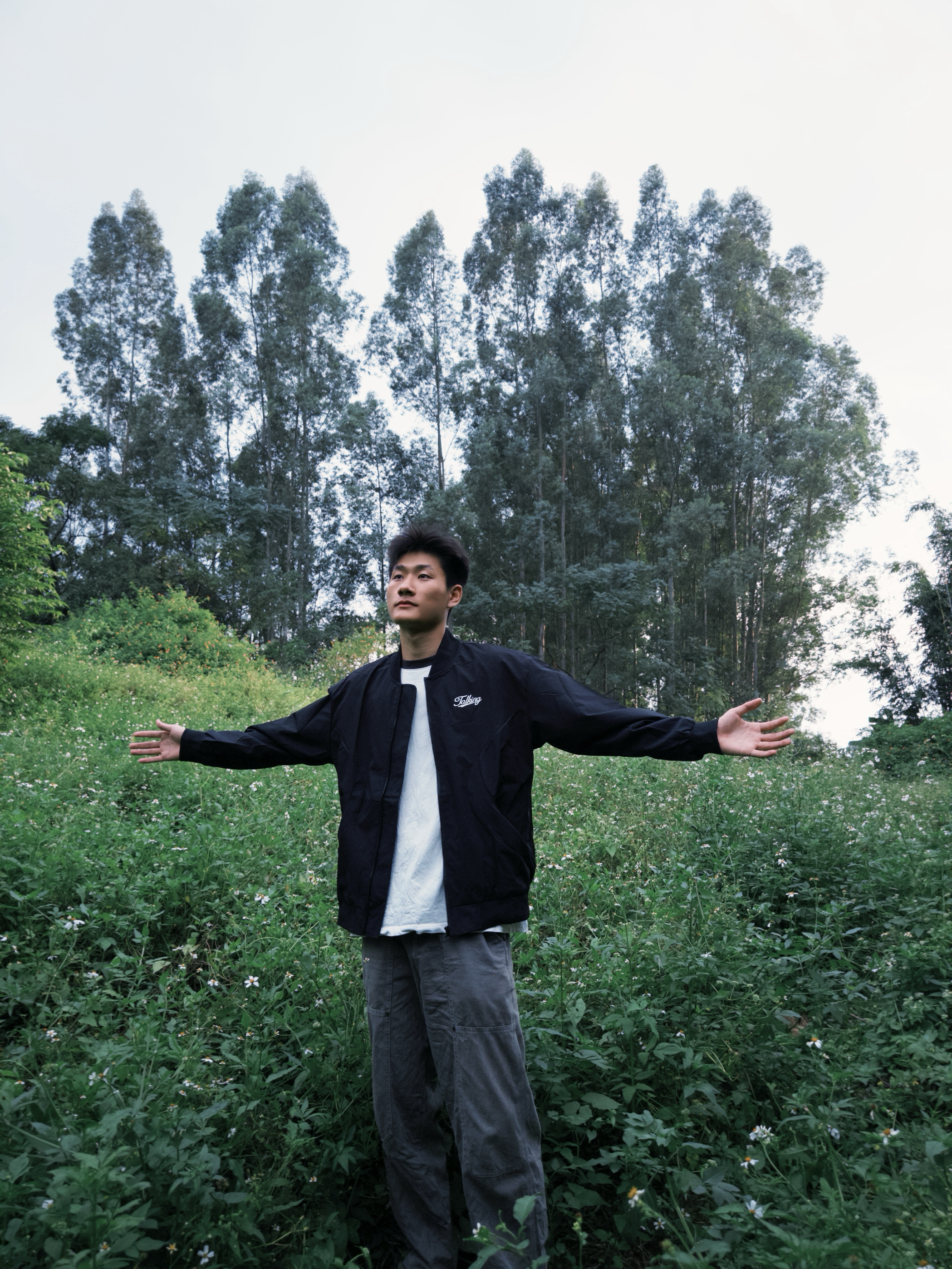 今天随便晃到野草地,套了这黑夹克是真顺手——面料软乎乎的,蹭到草枝也没勾丝,松快版型蹲下来拔草都不卡裆。 小标刺绣不扎眼,内搭白T配灰裤,往草地里一站还挺出片。逛了快一小时,后背没闷汗,袖口也不勒胳膊,下楼取快递、上班通勤都能穿